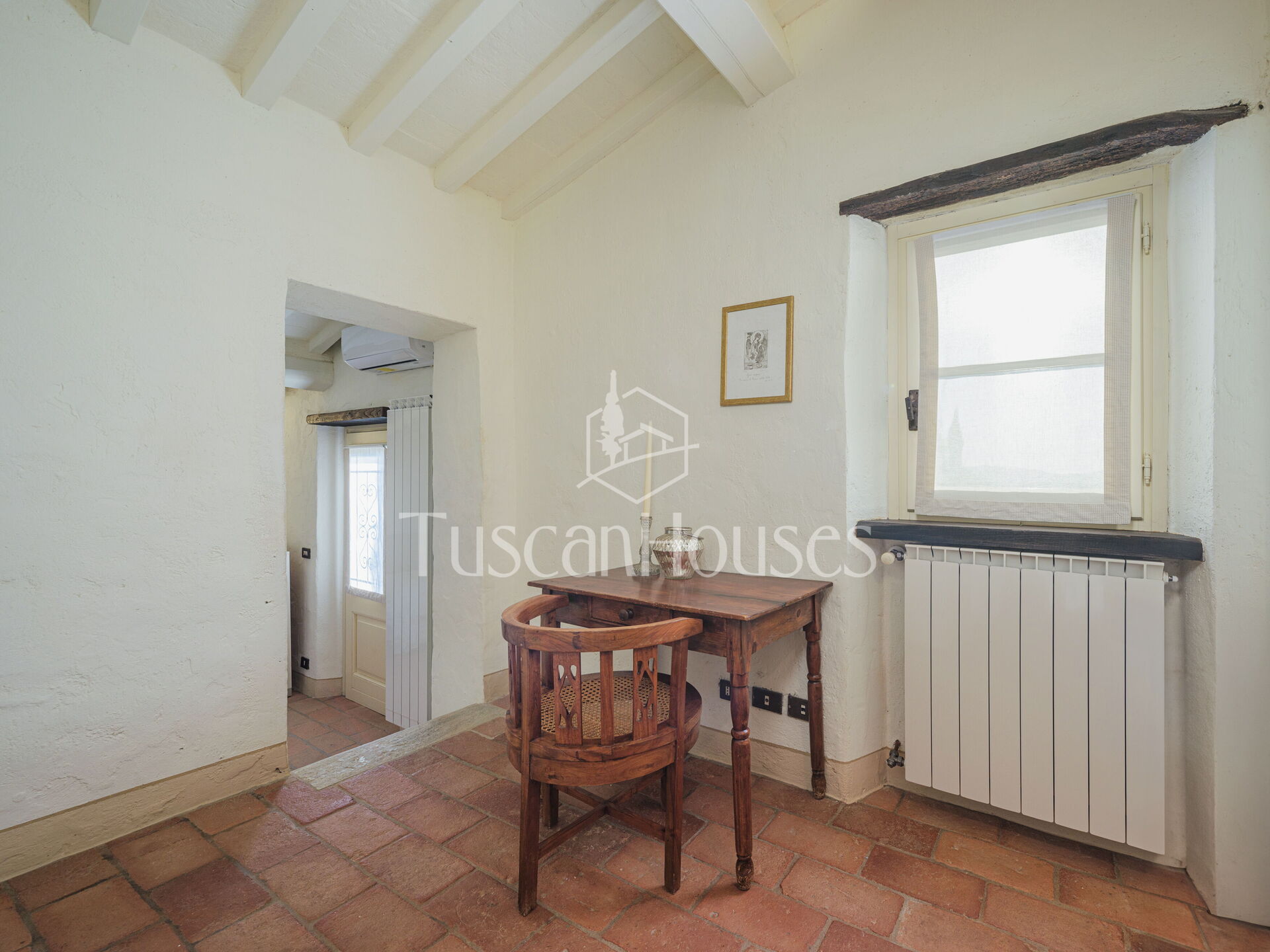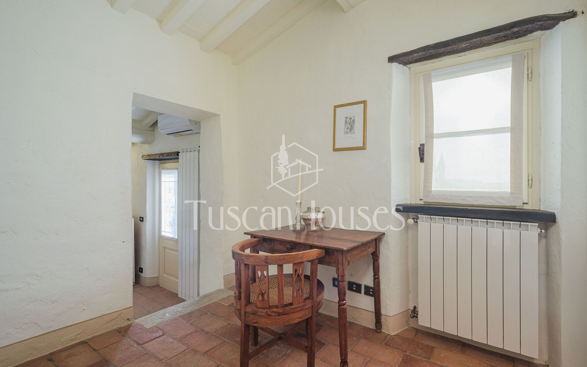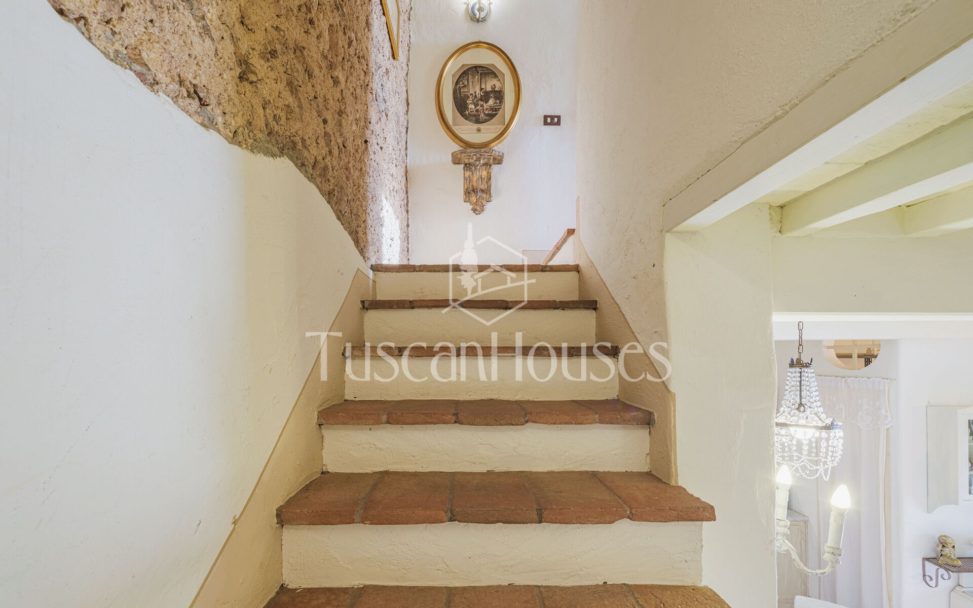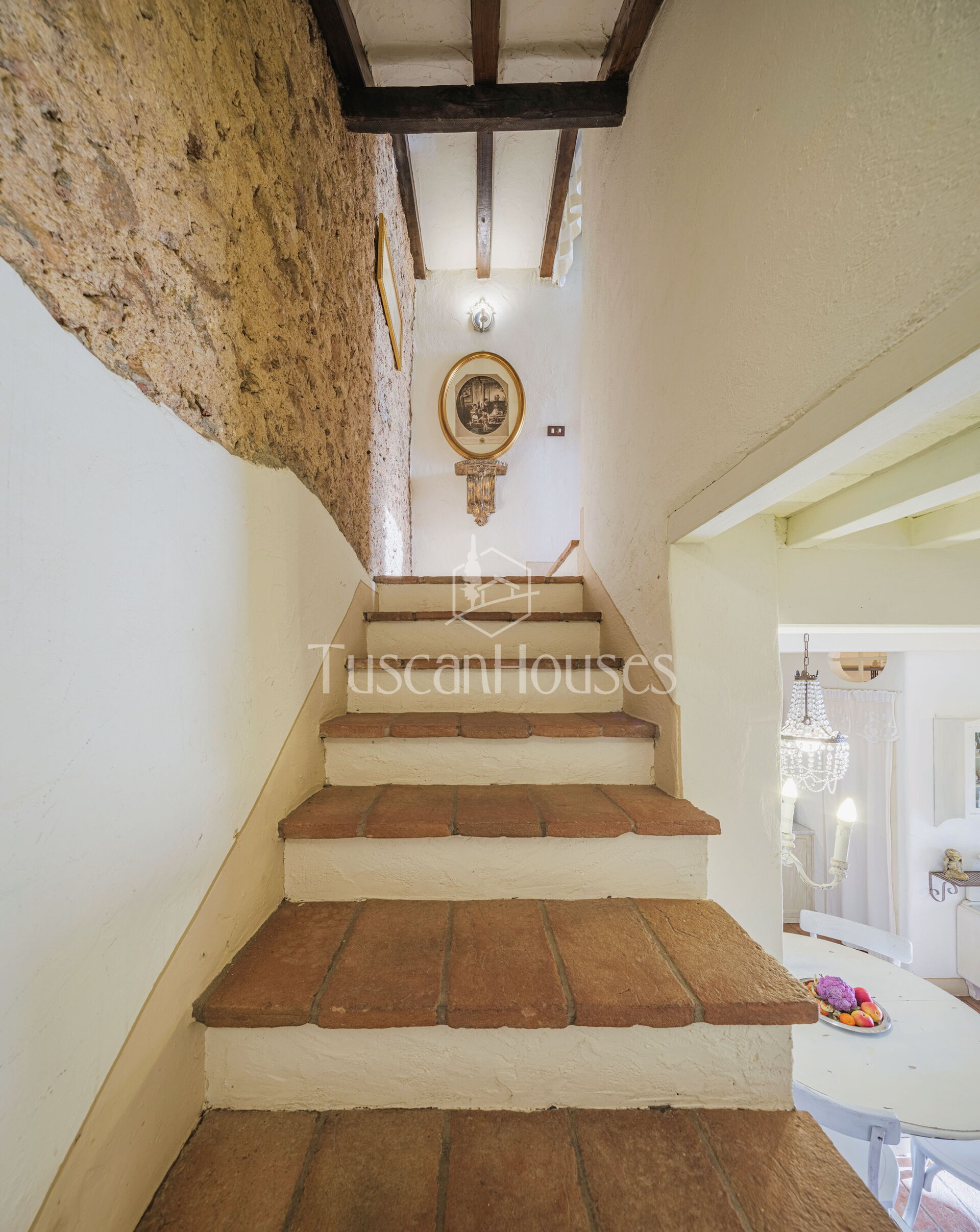Salendo 13 gradini, il casale si apre sul piano principale, dove l’atmosfera calda e tradizionale incontra i comfort moderni.