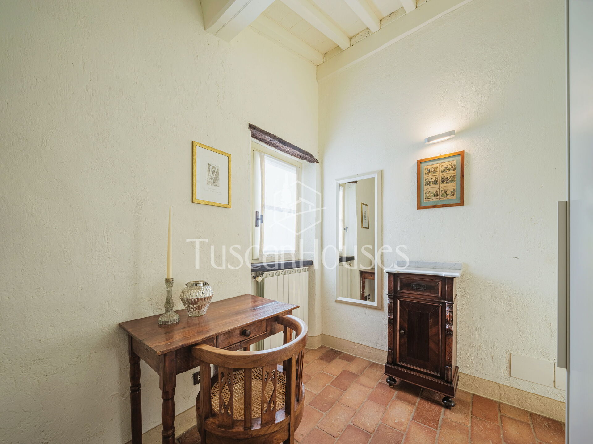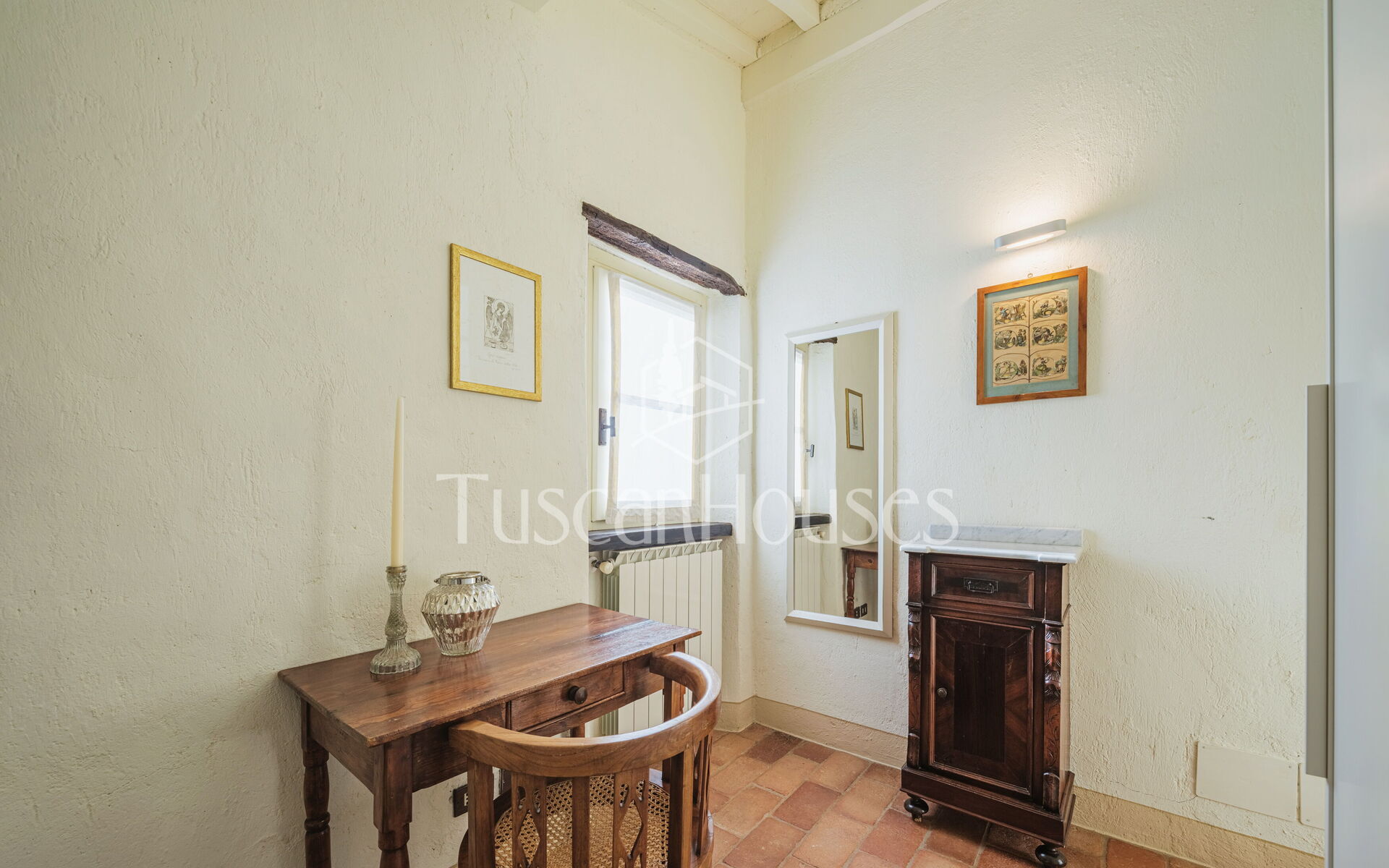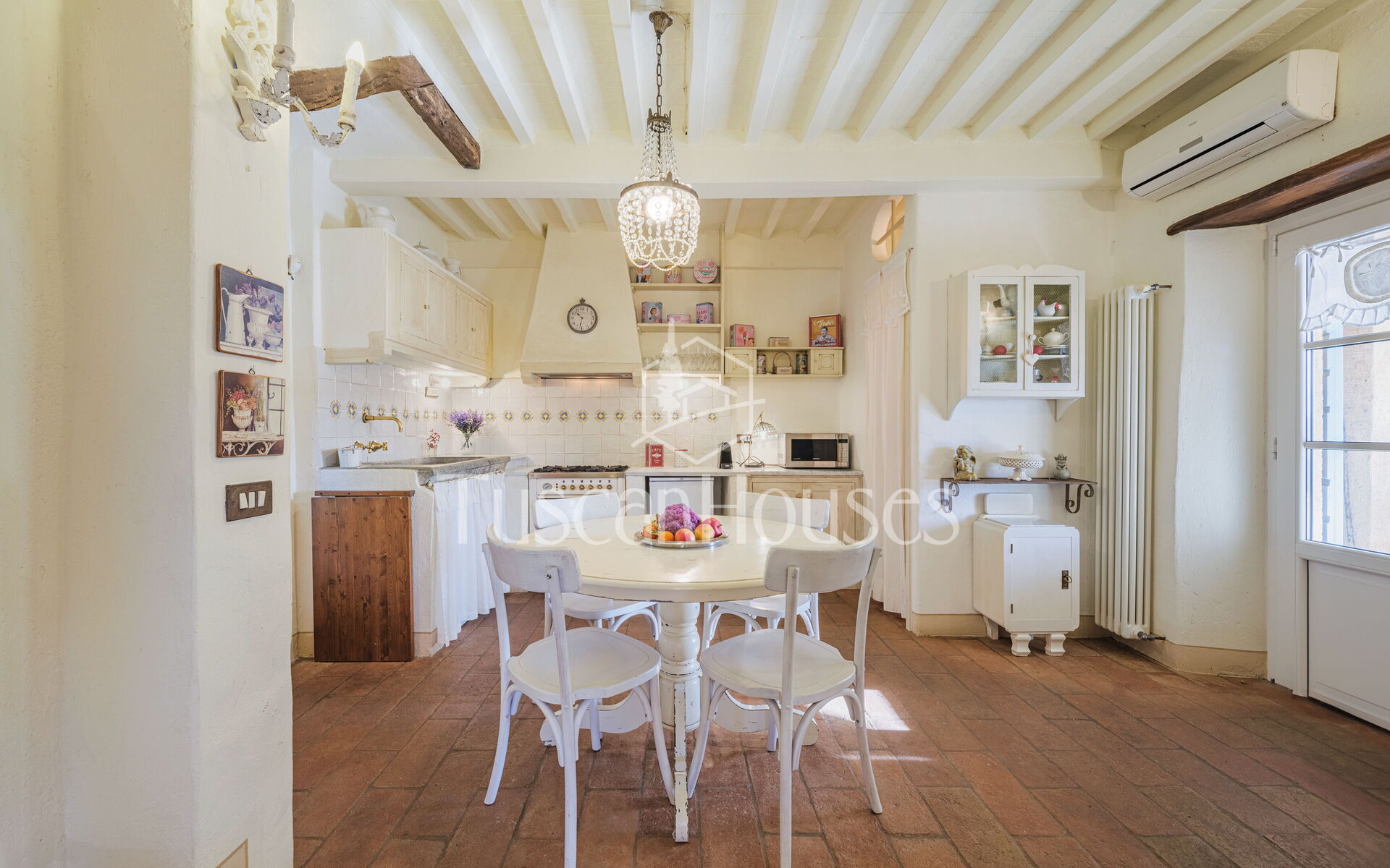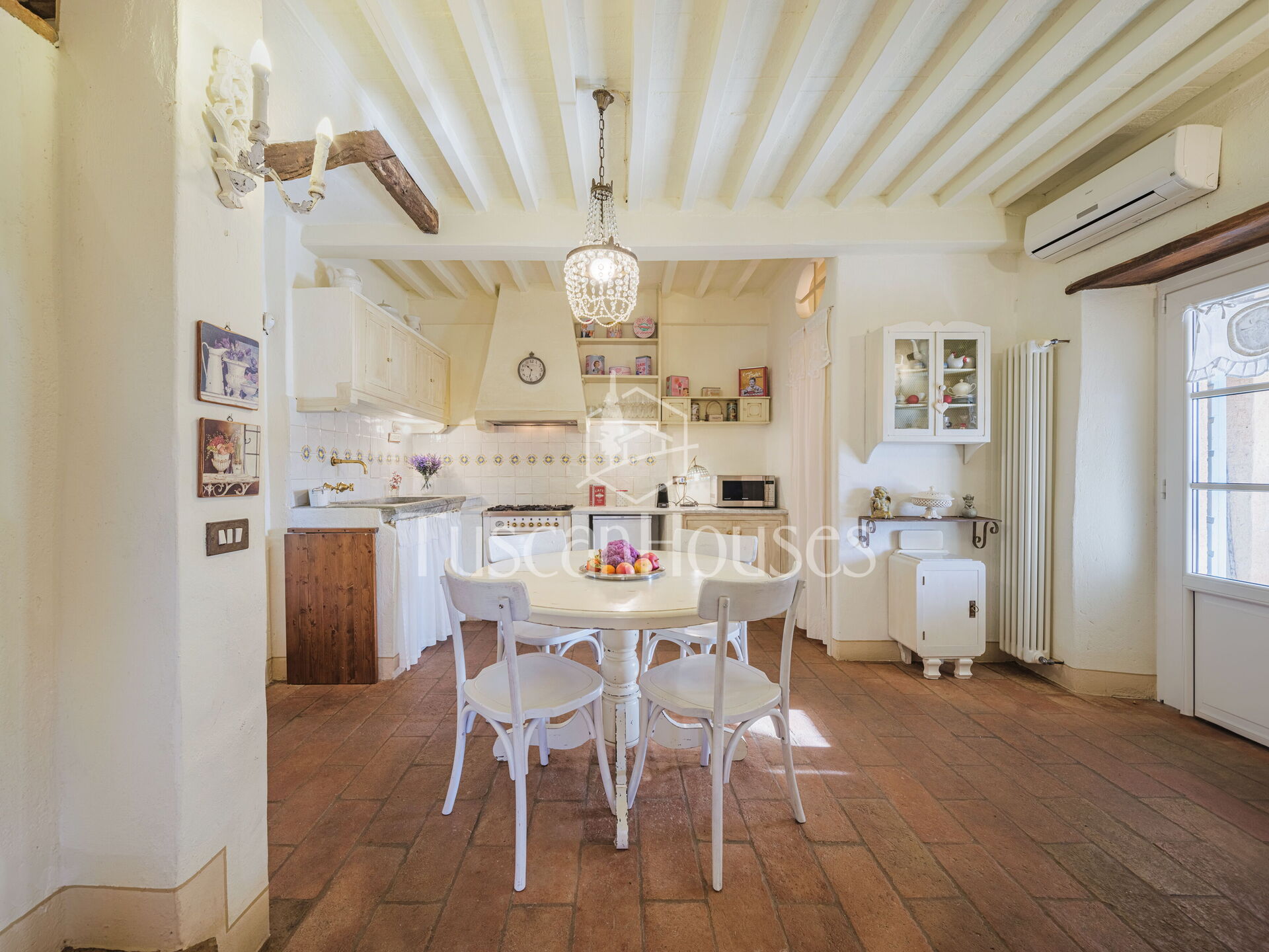 Salendo 13 gradini, il casale si apre sul piano principale, dove l’atmosfera calda e tradizionale incontra i comfort moderni.