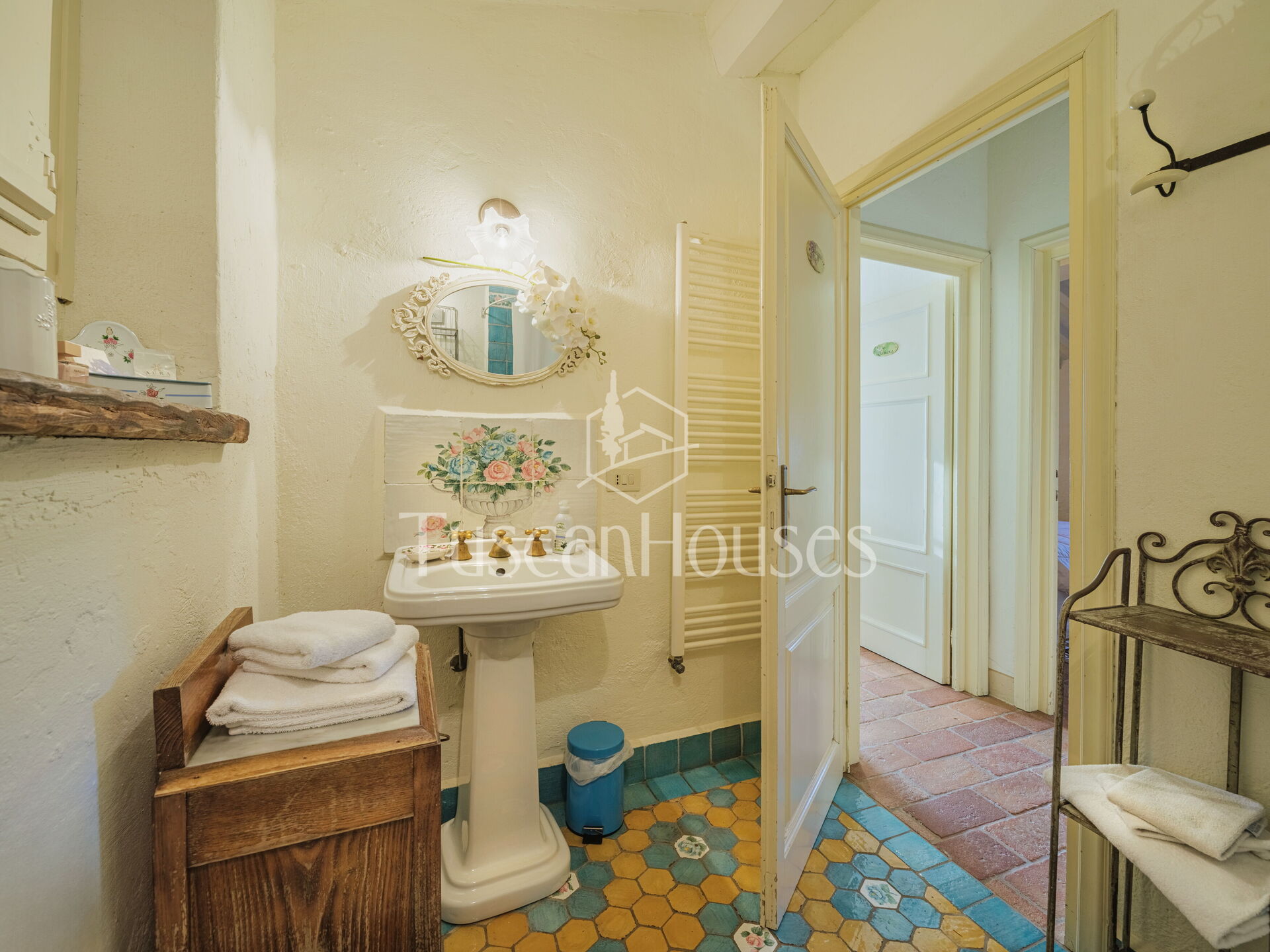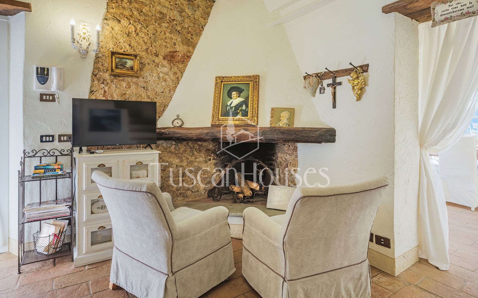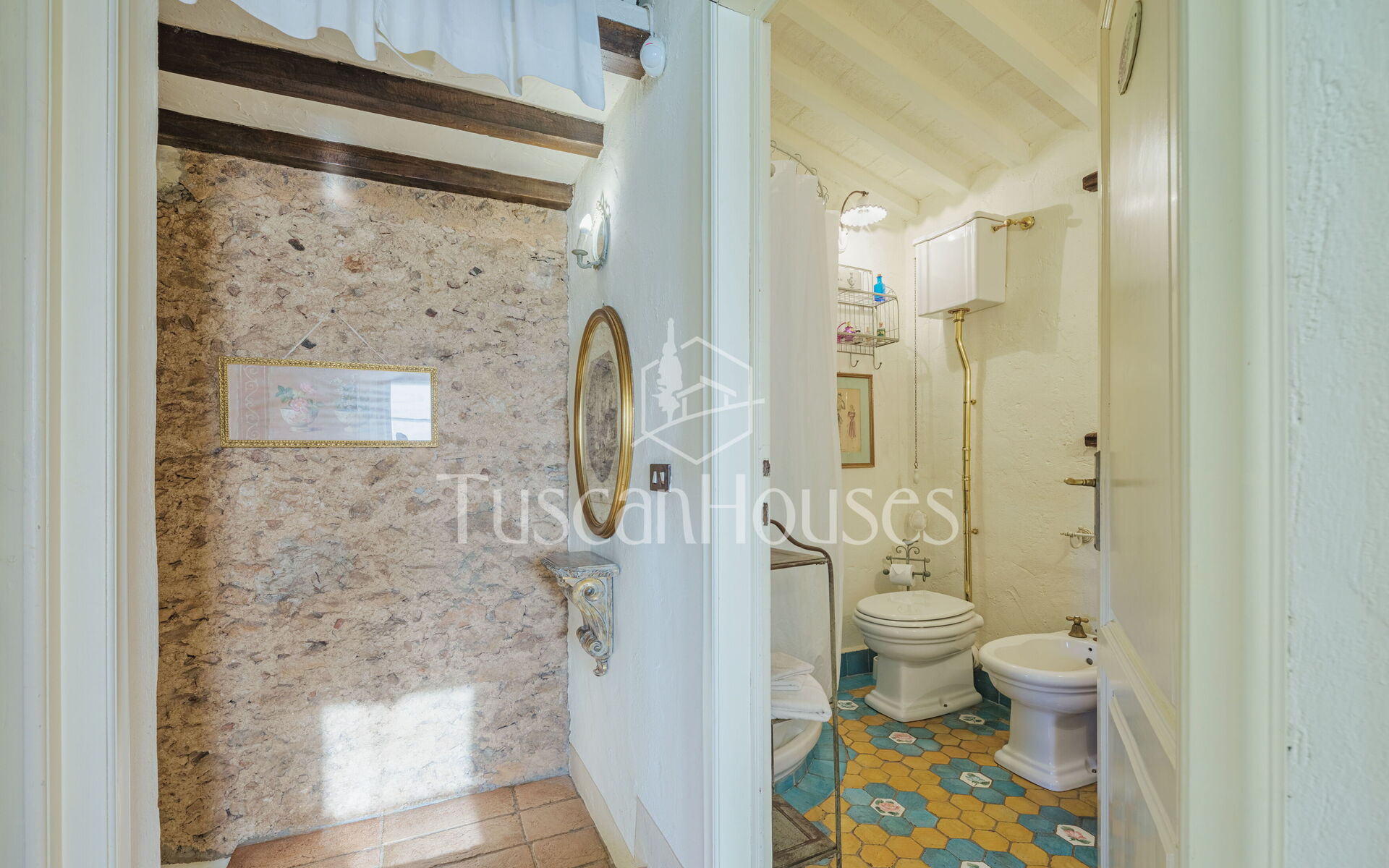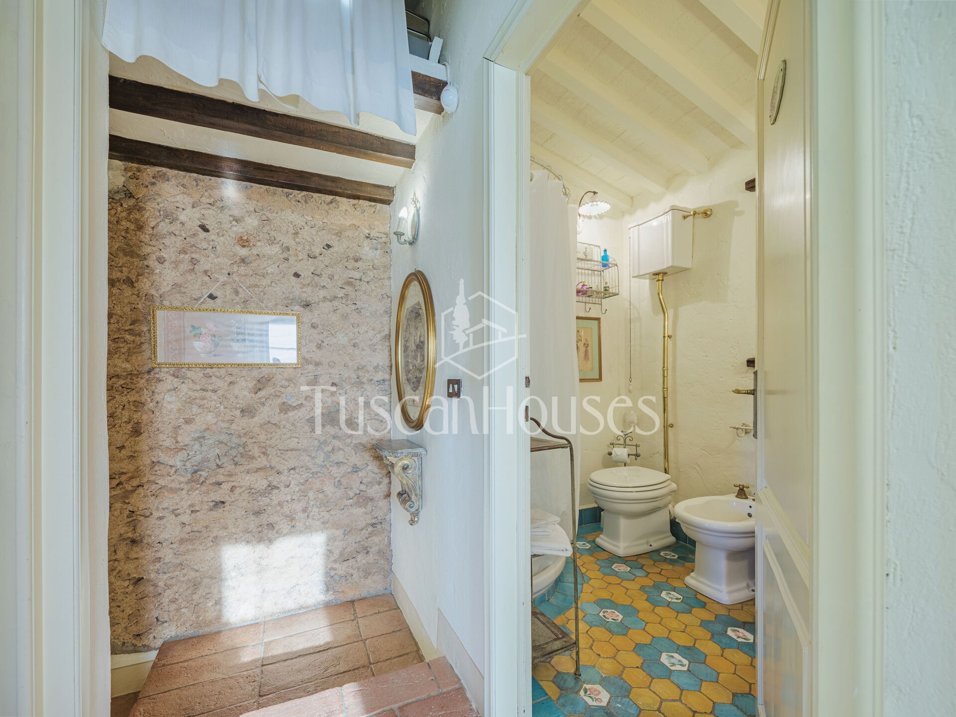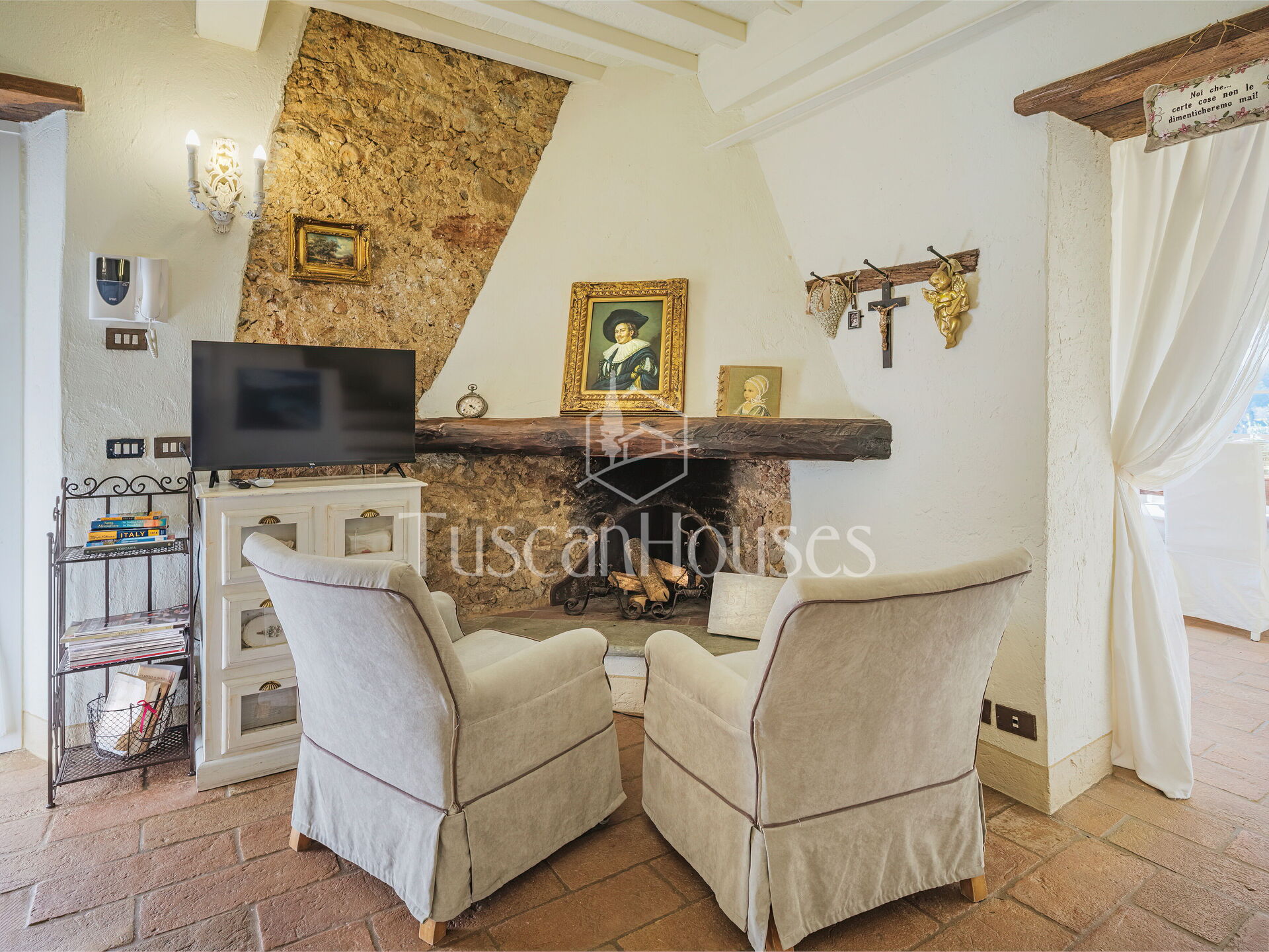 Salendo 13 gradini, il casale si apre sul piano principale, dove l’atmosfera calda e tradizionale incontra i comfort moderni.