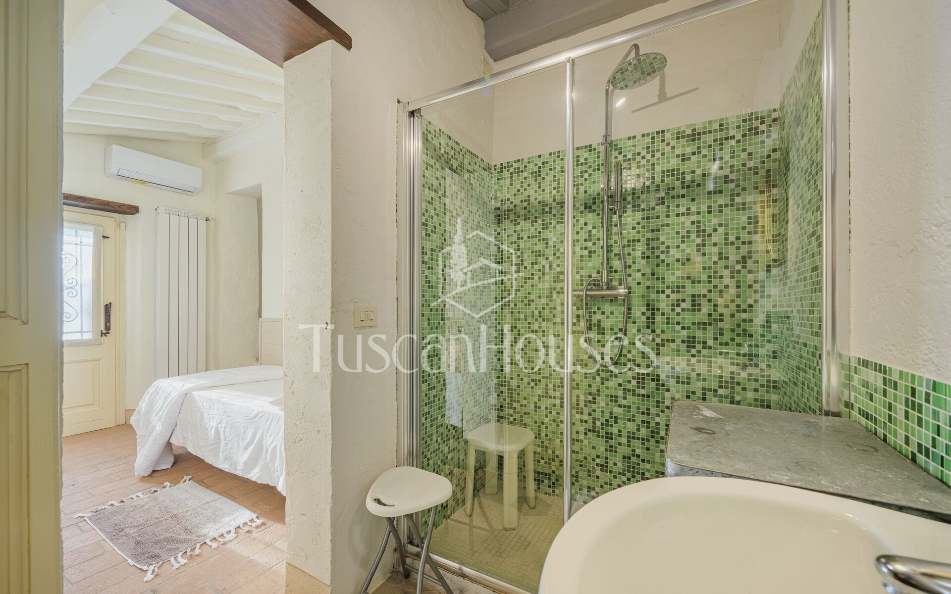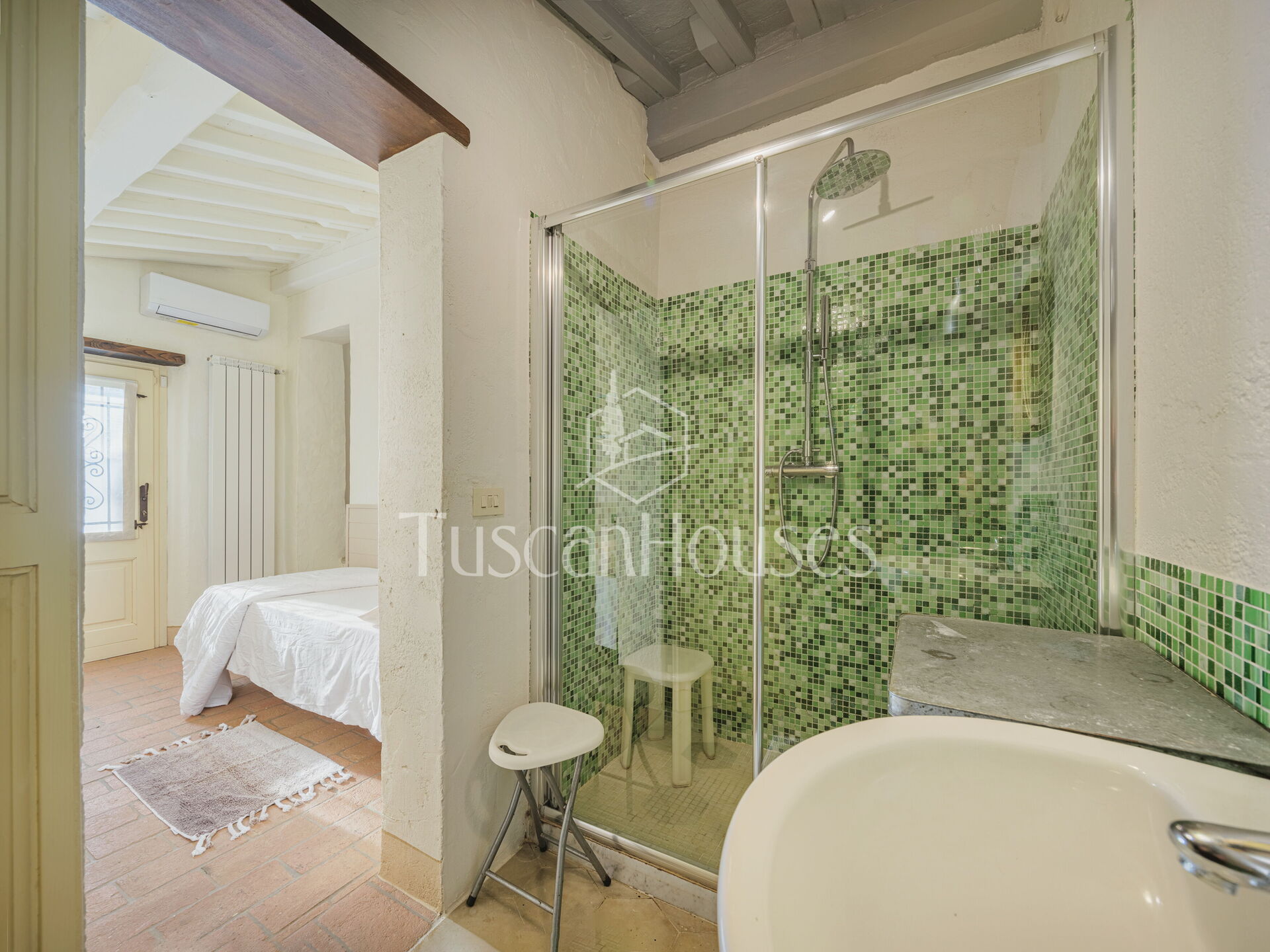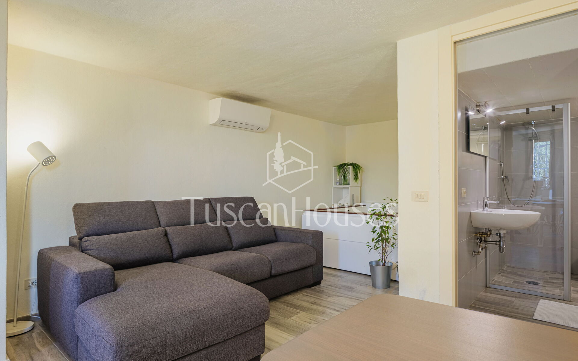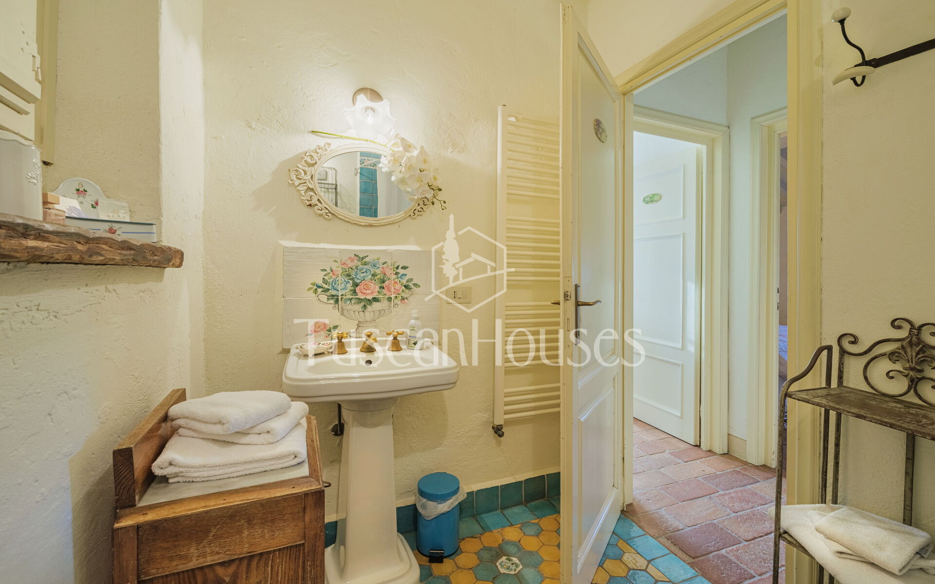 Salendo 13 gradini, il casale si apre sul piano principale, dove l’atmosfera calda e tradizionale incontra i comfort moderni.