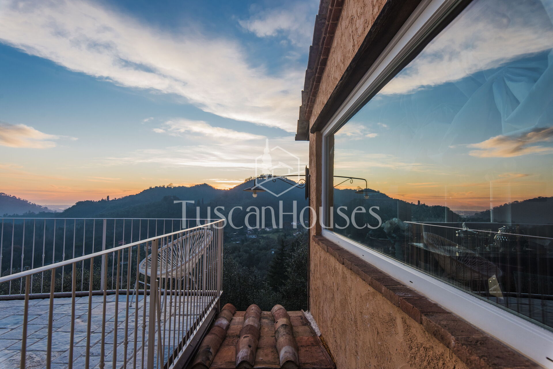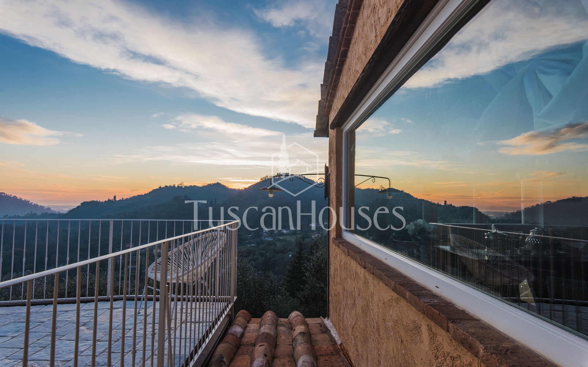 La proprietà, che si estende per circa 1000 metri quadrati, è caratterizzata da un terreno scosceso e terrazzato. La veranda esterna, arredata con un grande tavolo da pranzo, offre il luogo ideale per pasti all’aperto con vista panoramica.