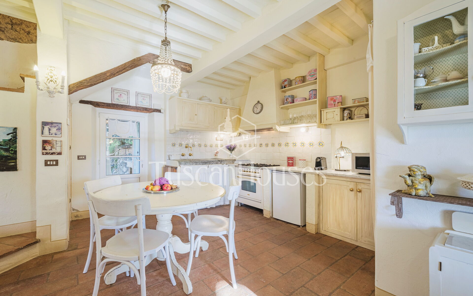 All’interno, quattro camere arredate con cura uniscono charme e comfort senza tempo. La cucina, completa di elettrodomestici moderni, è pensata per chi ama cucinare e vivere la casa.