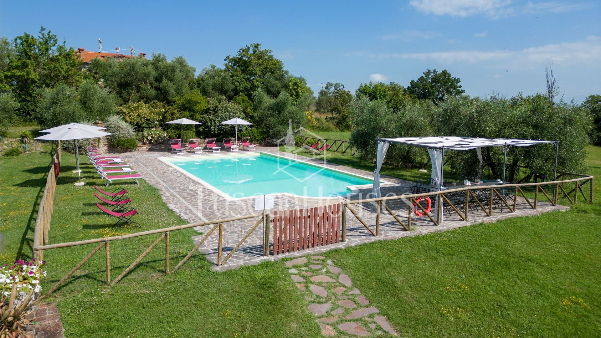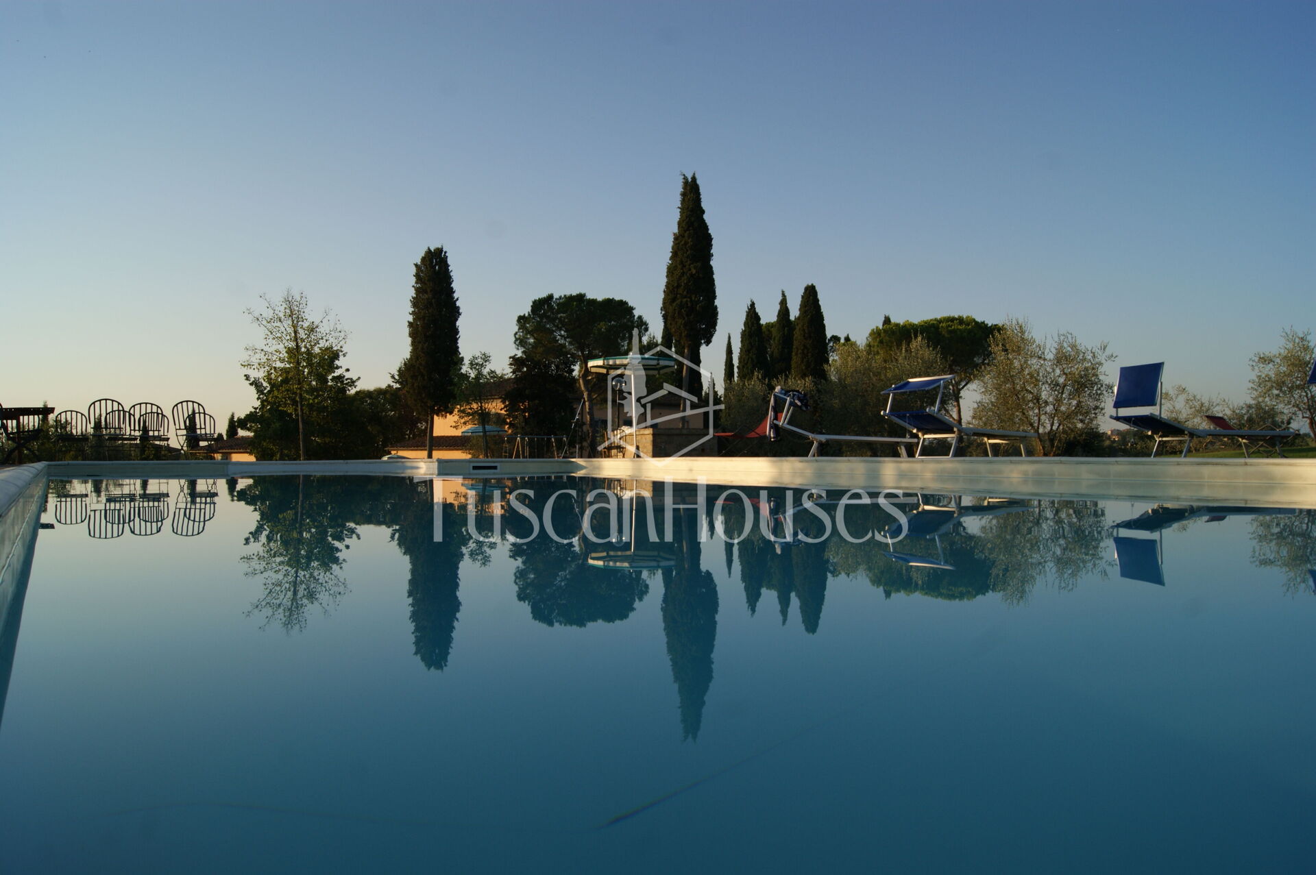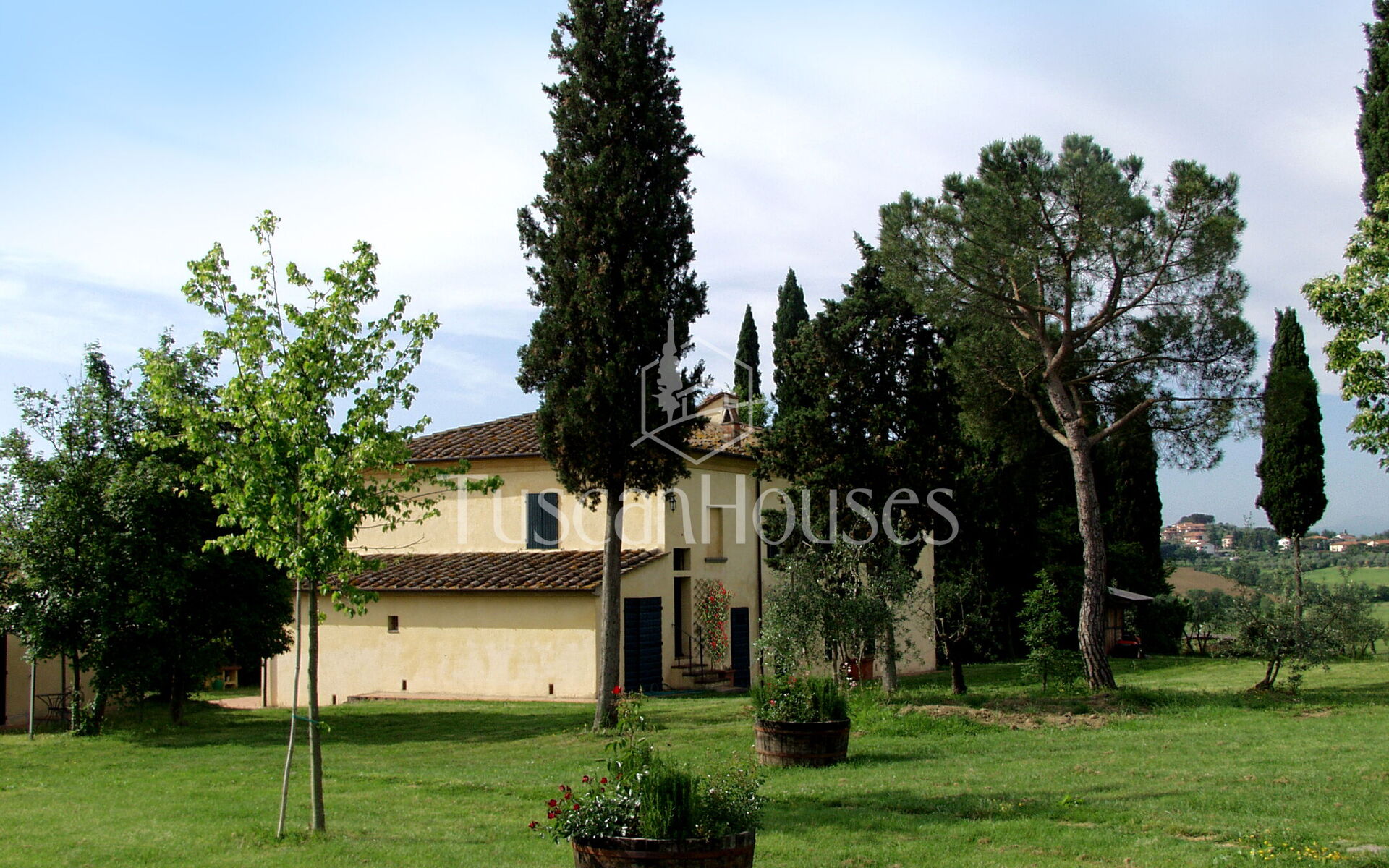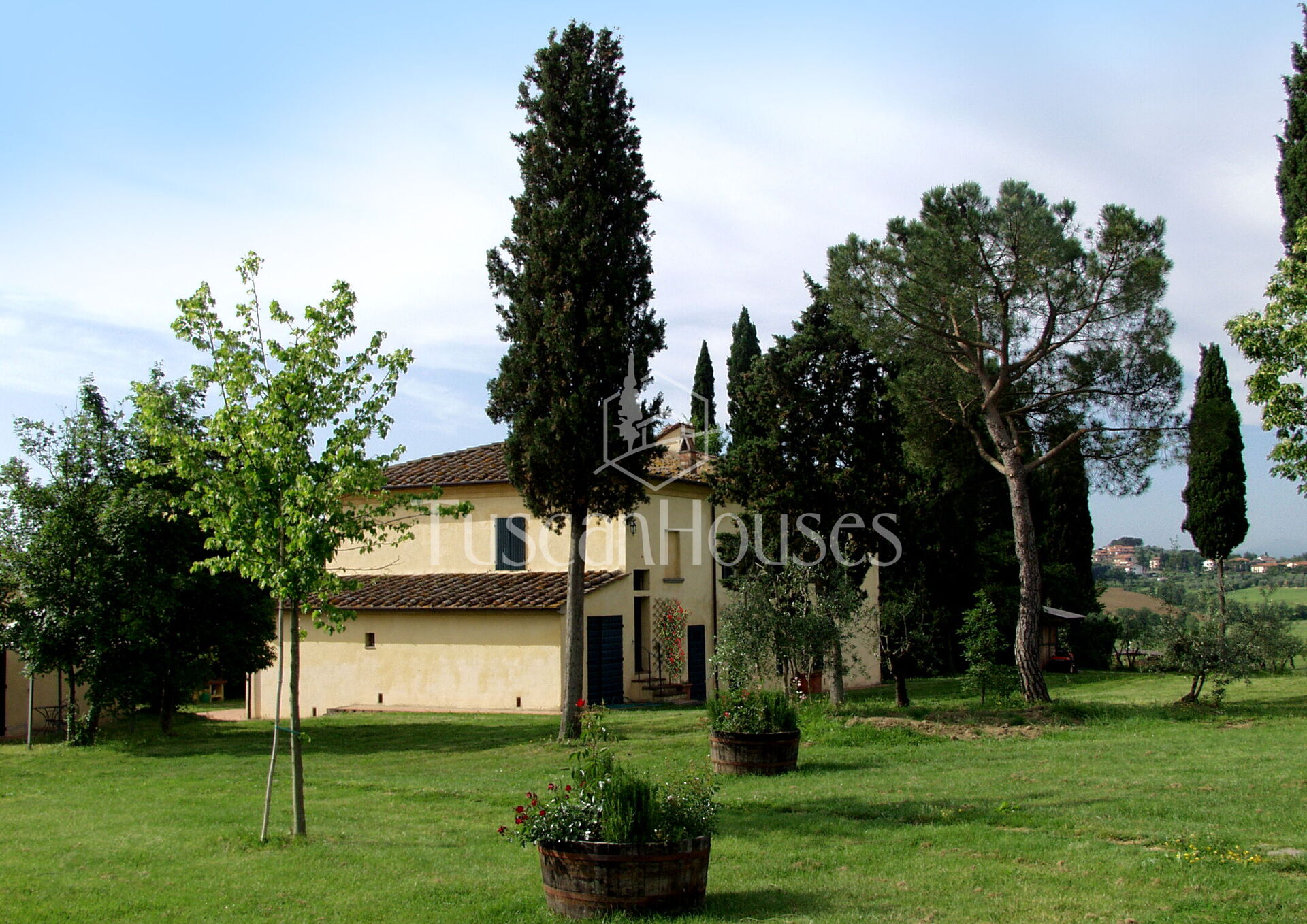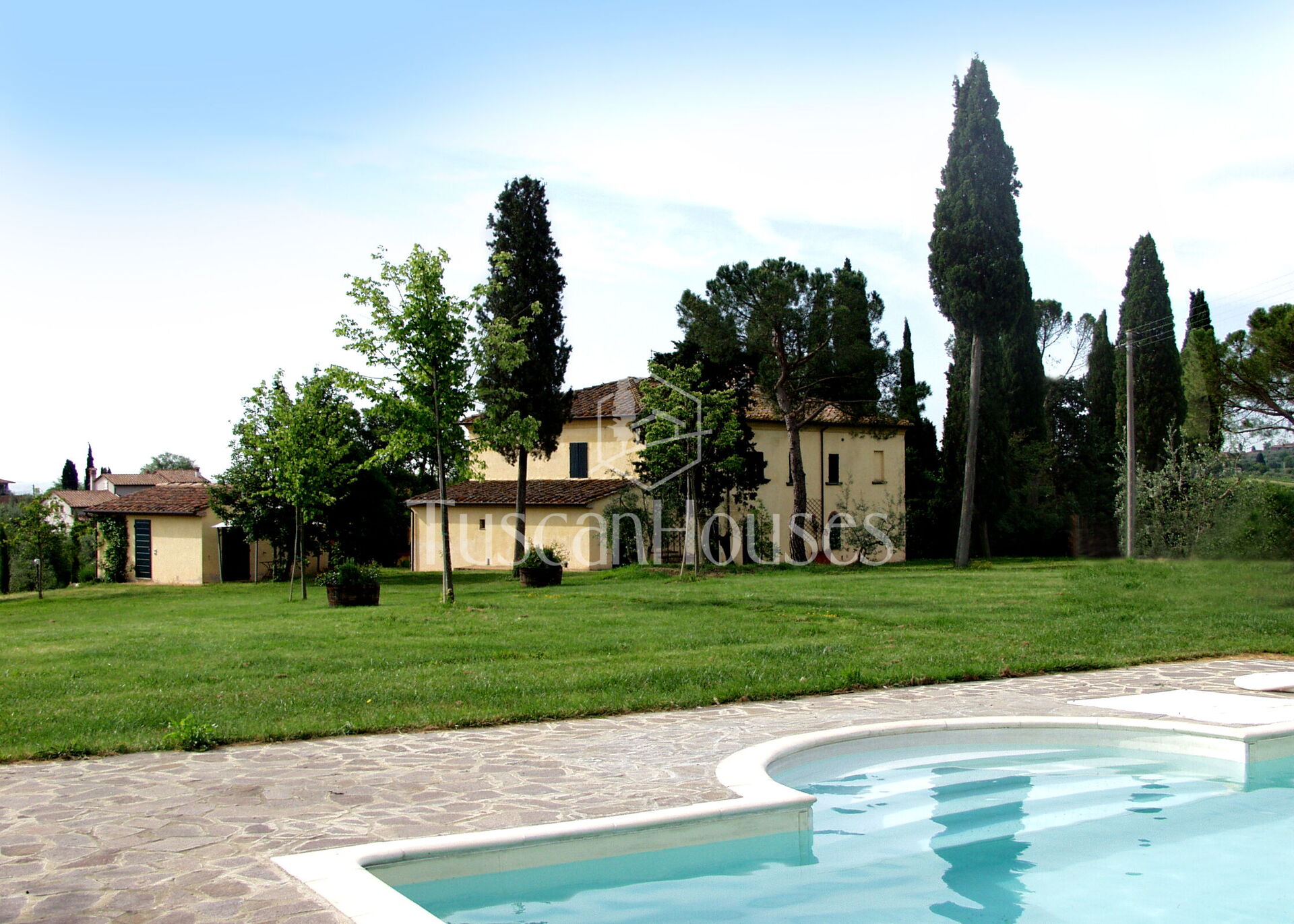 The villa is surrounded by a two-hectare garden with meadows, olive trees and a natural wood of ash, oaks and old cypresses. A large swimming pool completely fenced, completes this scenic part of the Chiana Valley.