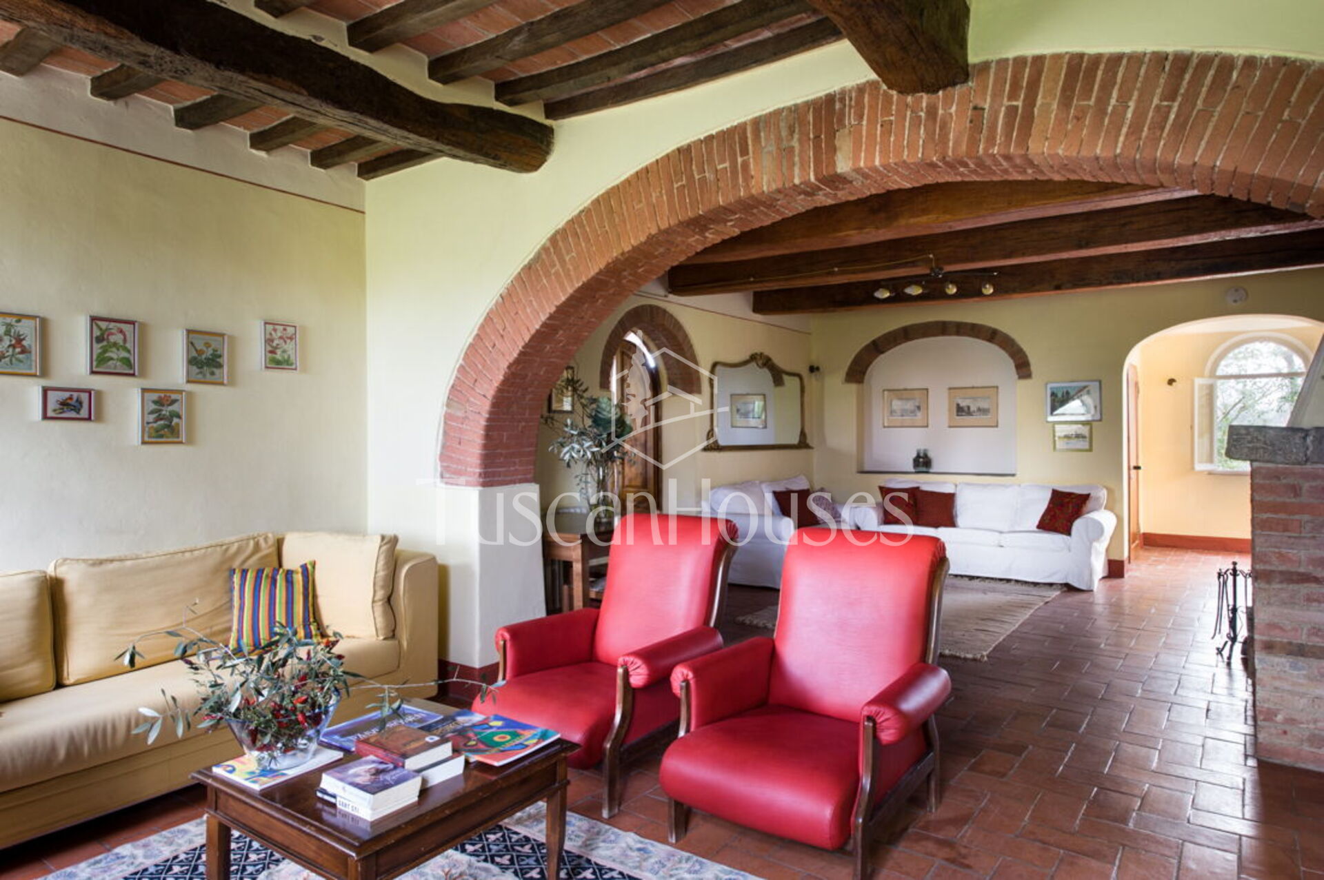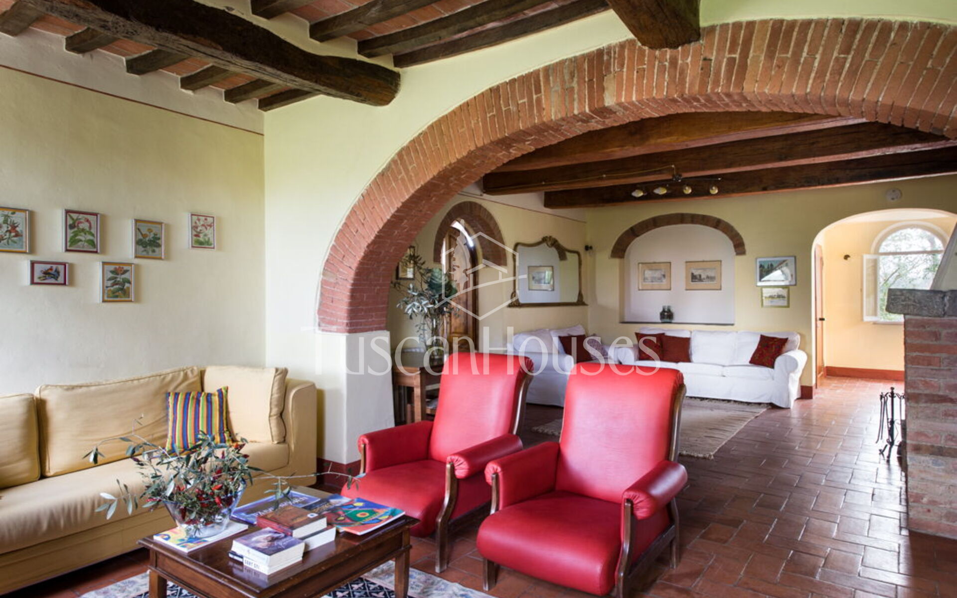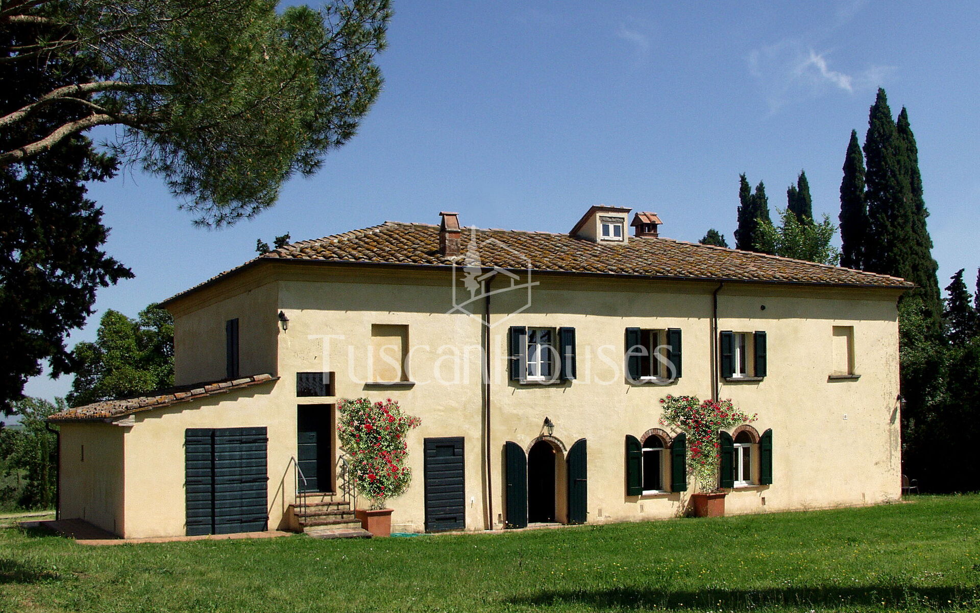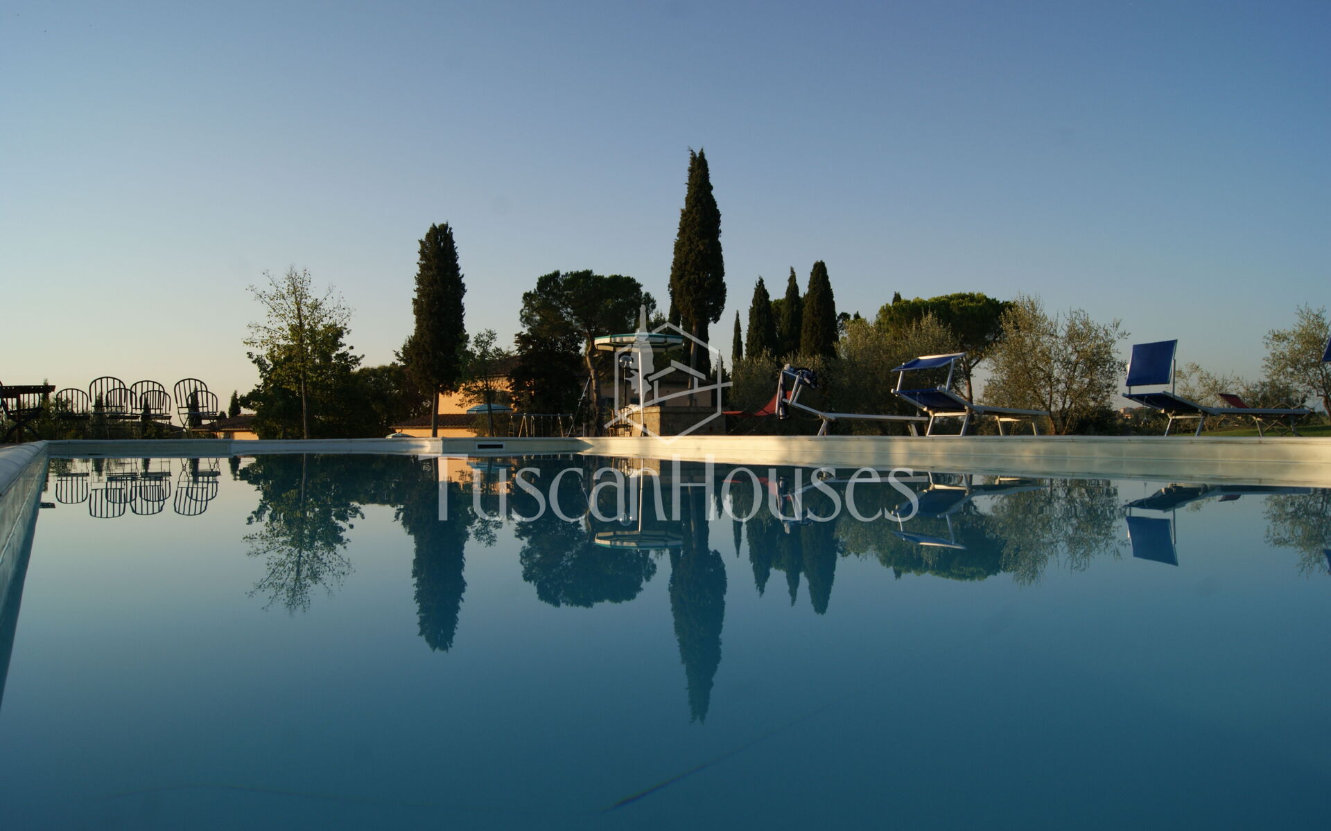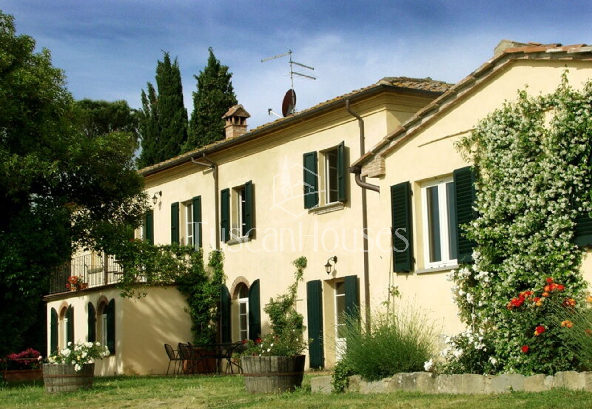 The villa is surrounded by a two-hectare garden with meadows, olive trees and a natural wood of ash, oaks and old cypresses. A large swimming pool completely fenced, completes this scenic part of the Chiana Valley.
