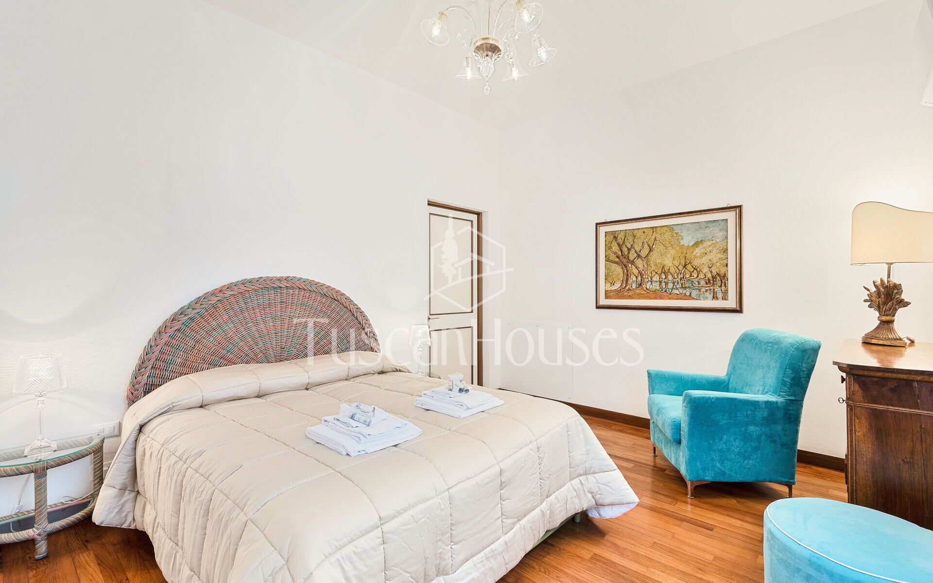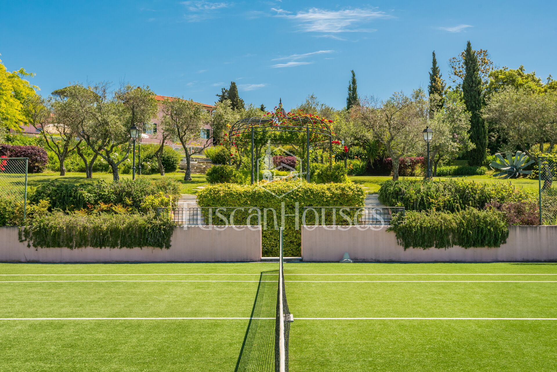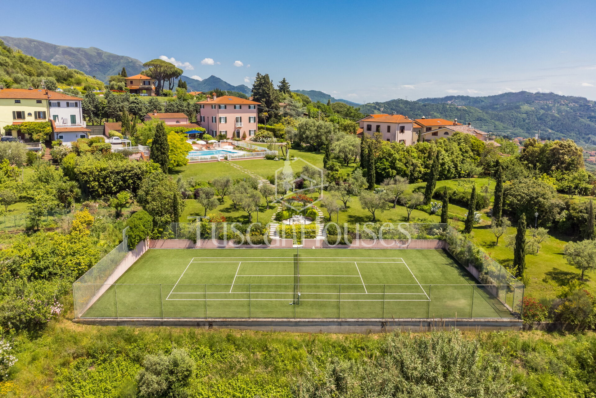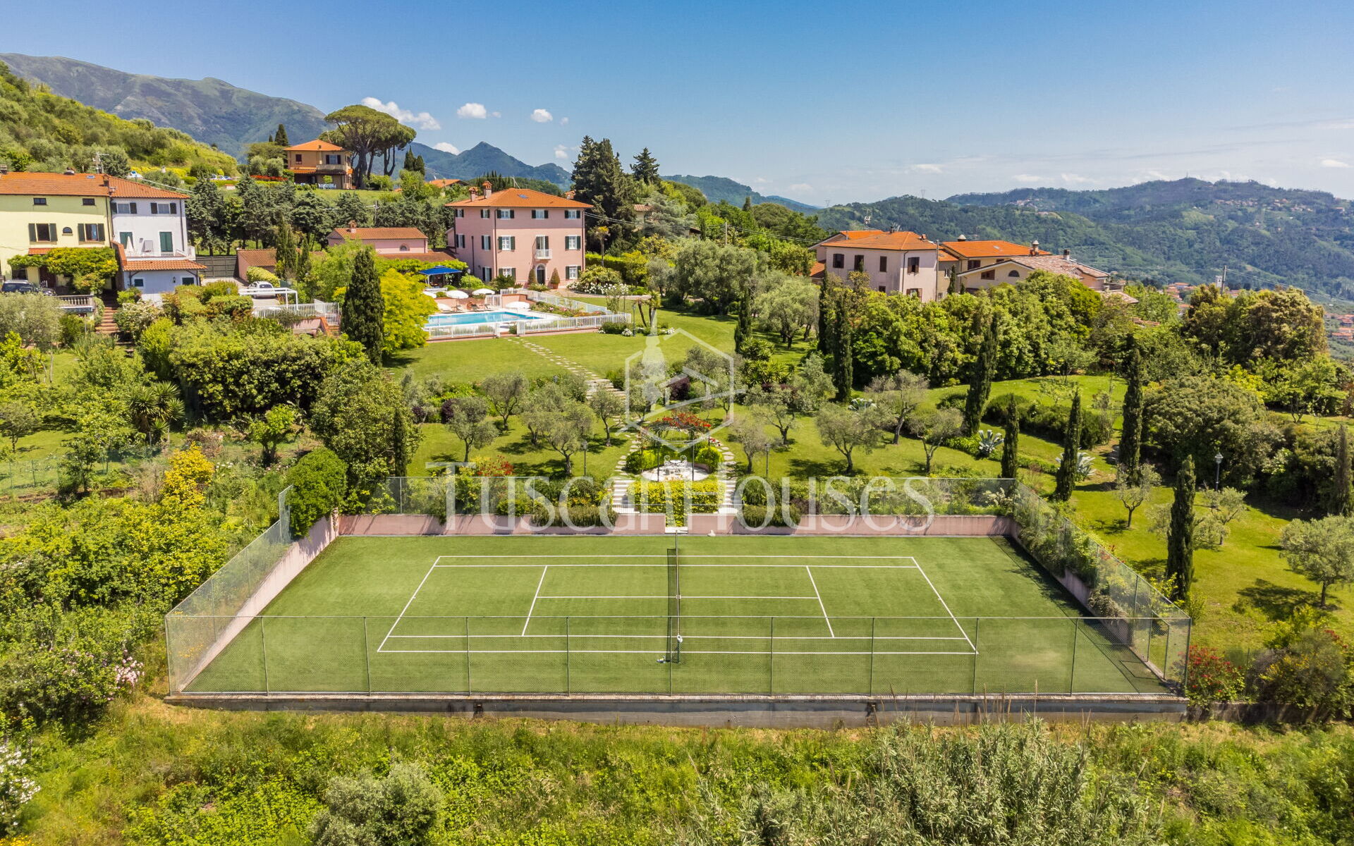 Villa Maestrale is a magnificent completely restored villa set in an amazing position, on the hills overlooking the Tyrrhenian Sea. Once you will park the car there will be no reason to leave again. The setting, the environment, the views are simply breath taking in a summer day as well in a dark cold winter day. The exteriors of the property are characterized by clear, marble typical of the area. The villa is located in a beautiful location between the sea of Forte dei Marmi and the hills of the famous vineyards of the Versilia. Villa Maestrale is the perfect point for visiting the nearby towns or simply relaxing in the well-maintained garden or under the veranda. Private swimming pool, exclusive tennis court, large lawn ideal for walking. The position allows to have daily trips or outdoor lunches in the closest towns of Pietrasanta, a renowned worldwide for its workshops of marble and visited by many artists (who you can sometimes meet in a café in a main square), or the marble quarries of Carrara (16 km), for trips to the city of Lucca (41 km) with its old Renaissance walls and its many historic villas, and to the other popular resort towns of Tuscany such as Pisa with its Square of Miracles (39 km), Florence (109 km) and the Cinque Terre (58 km) UNESCO World Heritage Site.