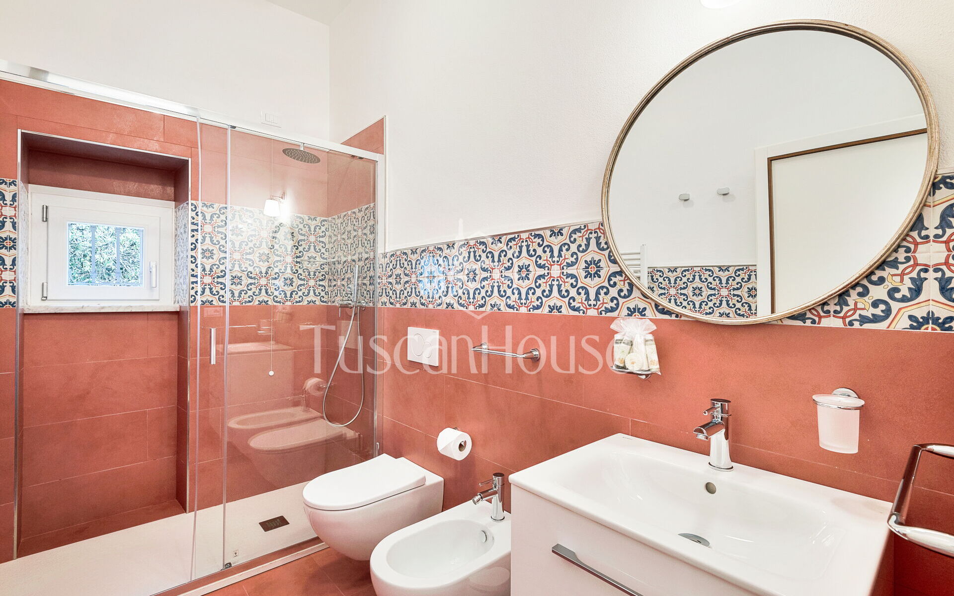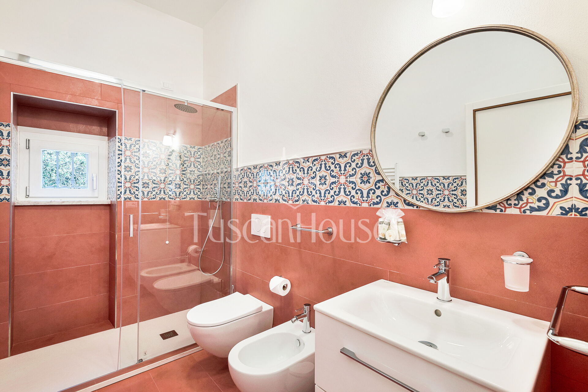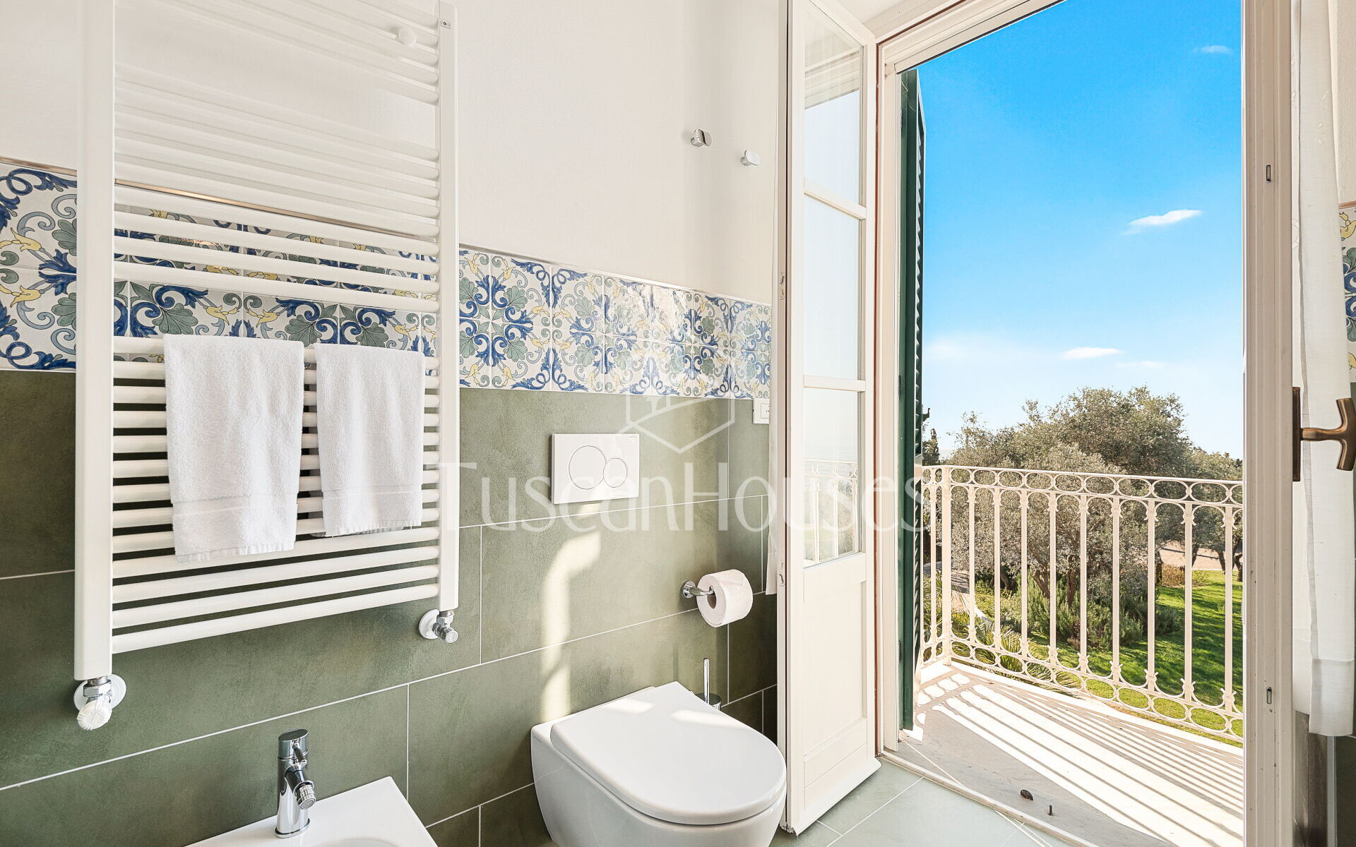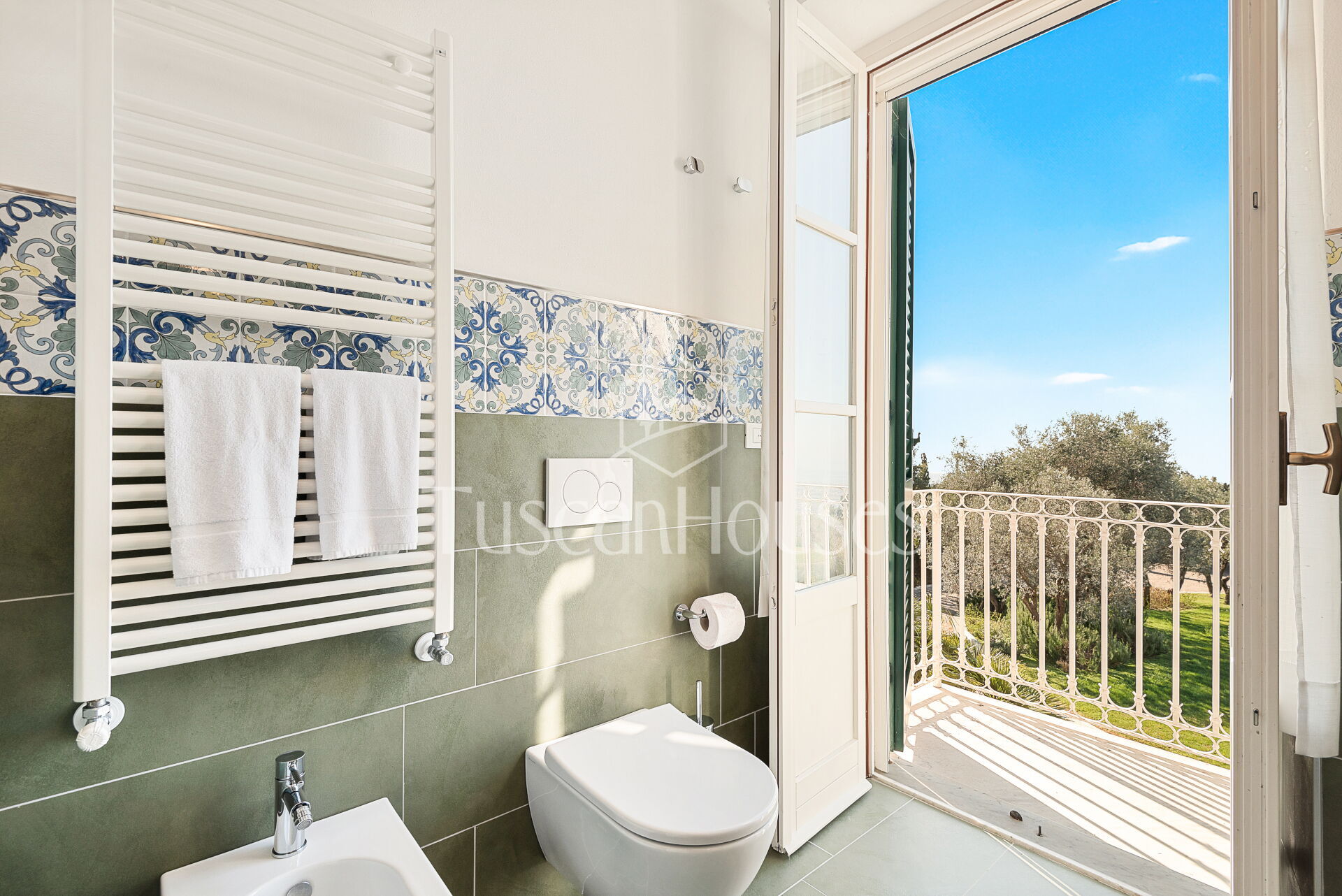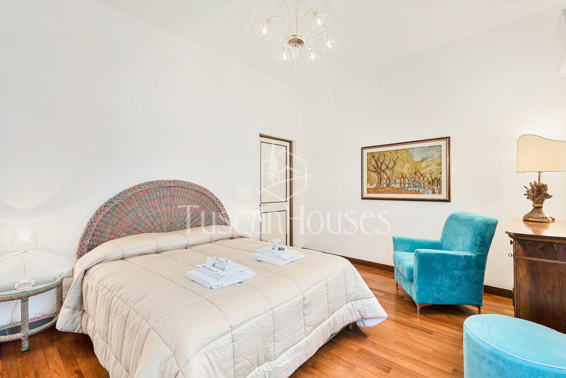 Villa Maestrale is a magnificent completely restored villa set in an amazing position, on the hills overlooking the Tyrrhenian Sea. Once you will park the car there will be no reason to leave again. The setting, the environment, the views are simply breath taking in a summer day as well in a dark cold winter day. The exteriors of the property are characterized by clear, marble typical of the area. The villa is located in a beautiful location between the sea of Forte dei Marmi and the hills of the famous vineyards of the Versilia. Villa Maestrale is the perfect point for visiting the nearby towns or simply relaxing in the well-maintained garden or under the veranda. Private swimming pool, exclusive tennis court, large lawn ideal for walking. The position allows to have daily trips or outdoor lunches in the closest towns of Pietrasanta, a renowned worldwide for its workshops of marble and visited by many artists (who you can sometimes meet in a café in a main square), or the marble quarries of Carrara (16 km), for trips to the city of Lucca (41 km) with its old Renaissance walls and its many historic villas, and to the other popular resort towns of Tuscany such as Pisa with its Square of Miracles (39 km), Florence (109 km) and the Cinque Terre (58 km) UNESCO World Heritage Site.