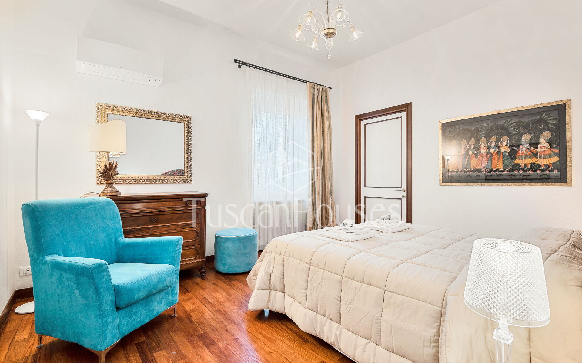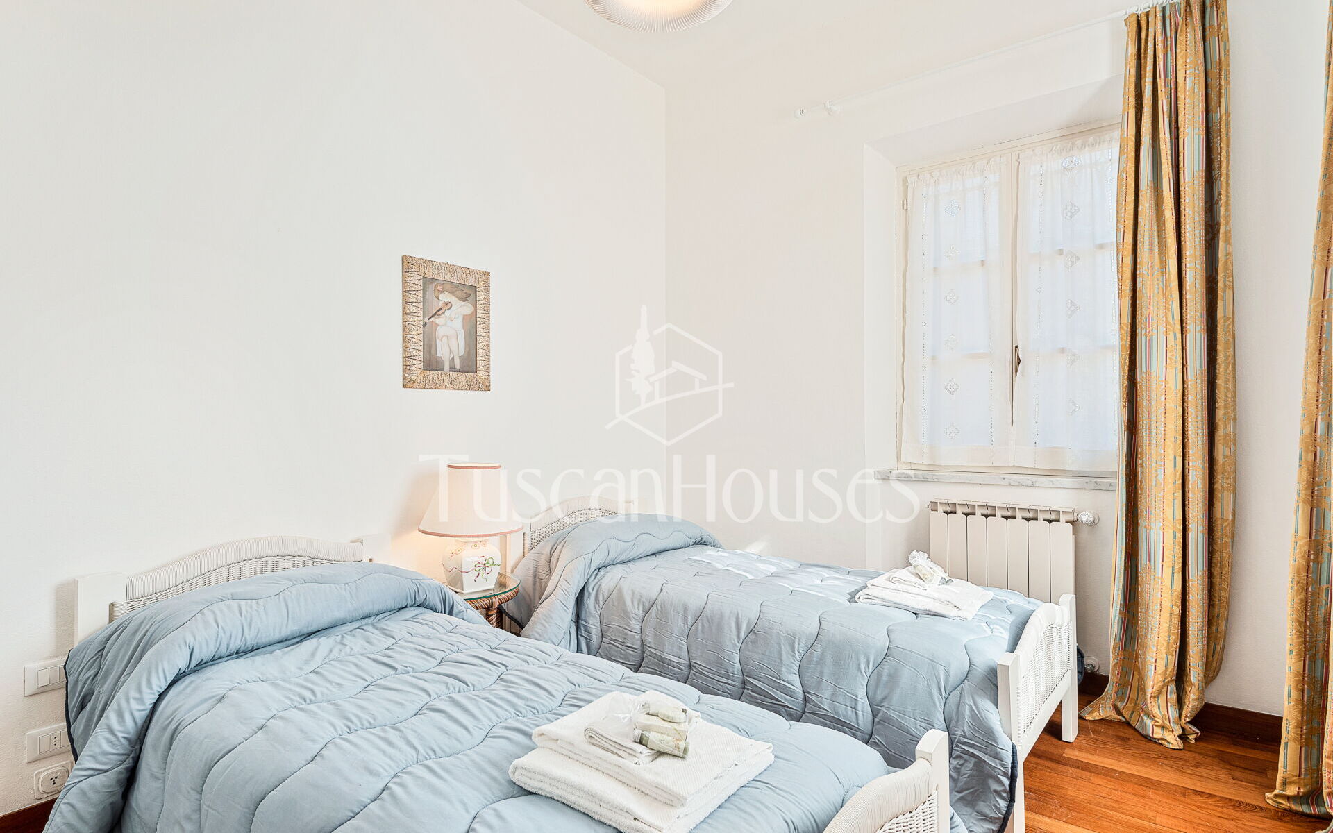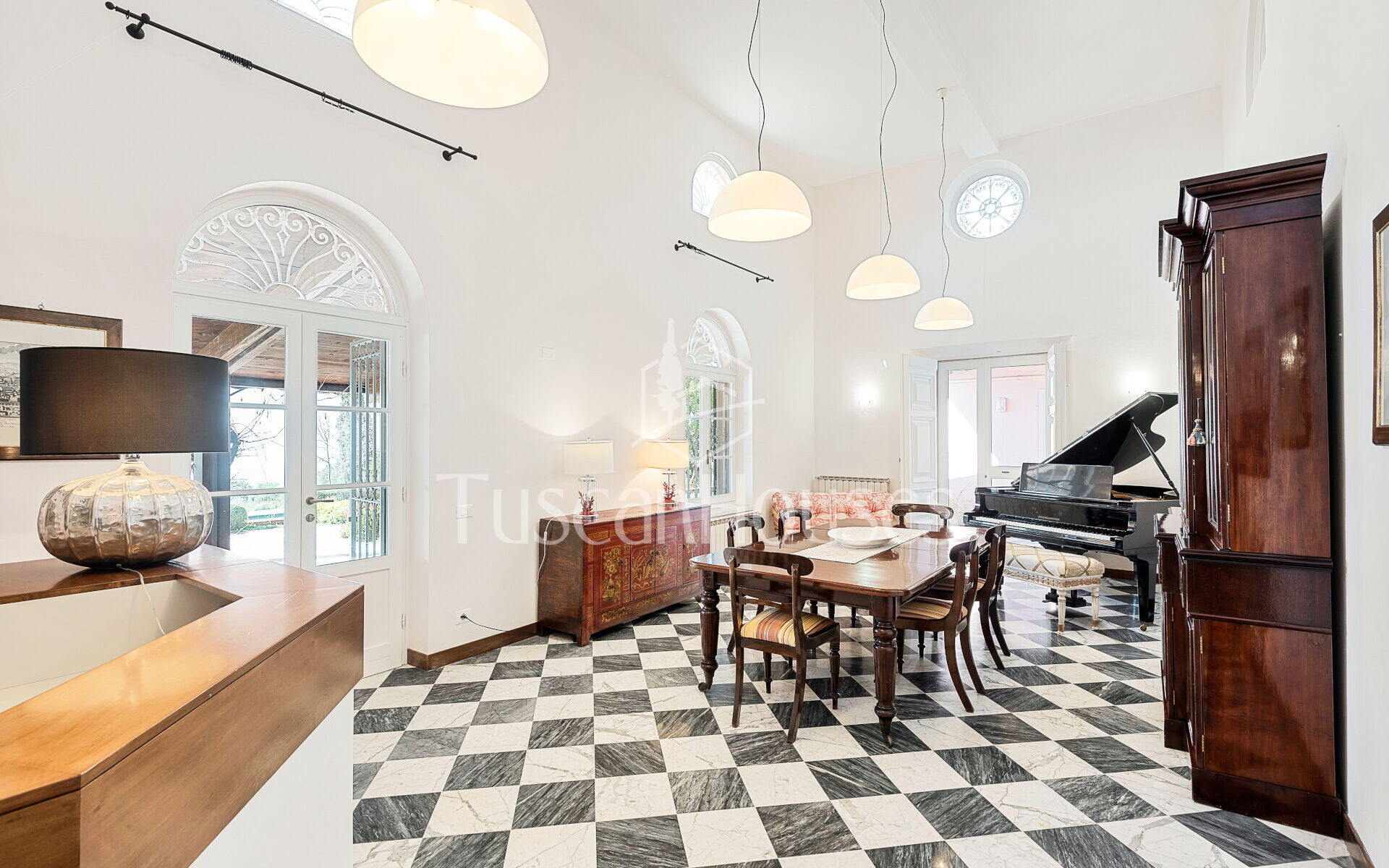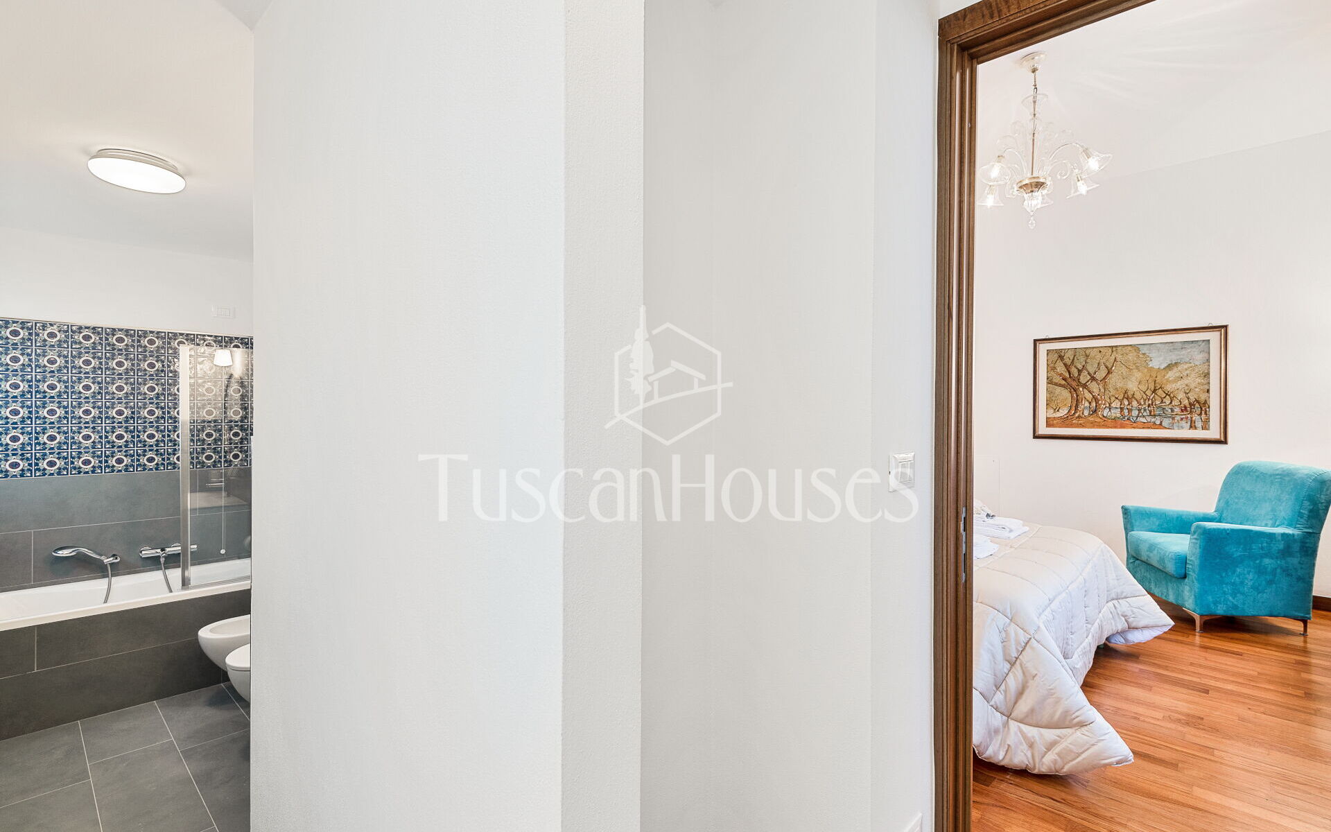 Villa Maestrale is a magnificent completely restored villa set in an amazing position, on the hills overlooking the Tyrrhenian Sea. Once you will park the car there will be no reason to leave again. The setting, the environment, the views are simply breath taking in a summer day as well in a dark cold winter day. The exteriors of the property are characterized by clear, marble typical of the area. The villa is located in a beautiful location between the sea of Forte dei Marmi and the hills of the famous vineyards of the Versilia. Villa Maestrale is the perfect point for visiting the nearby towns or simply relaxing in the well-maintained garden or under the veranda. Private swimming pool, exclusive tennis court, large lawn ideal for walking. The position allows to have daily trips or outdoor lunches in the closest towns of Pietrasanta, a renowned worldwide for its workshops of marble and visited by many artists (who you can sometimes meet in a café in a main square), or the marble quarries of Carrara (16 km), for trips to the city of Lucca (41 km) with its old Renaissance walls and its many historic villas, and to the other popular resort towns of Tuscany such as Pisa with its Square of Miracles (39 km), Florence (109 km) and the Cinque Terre (58 km) UNESCO World Heritage Site.