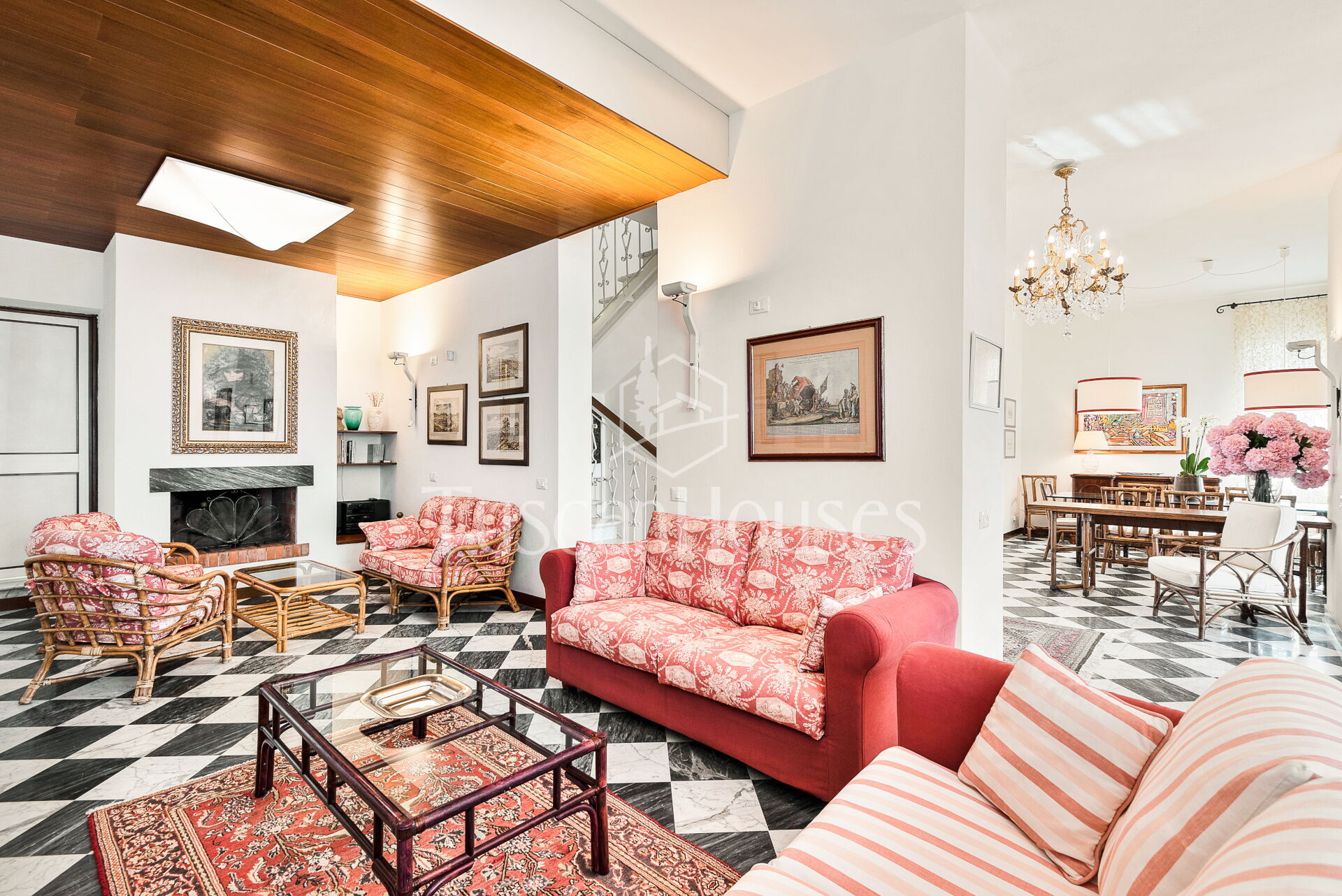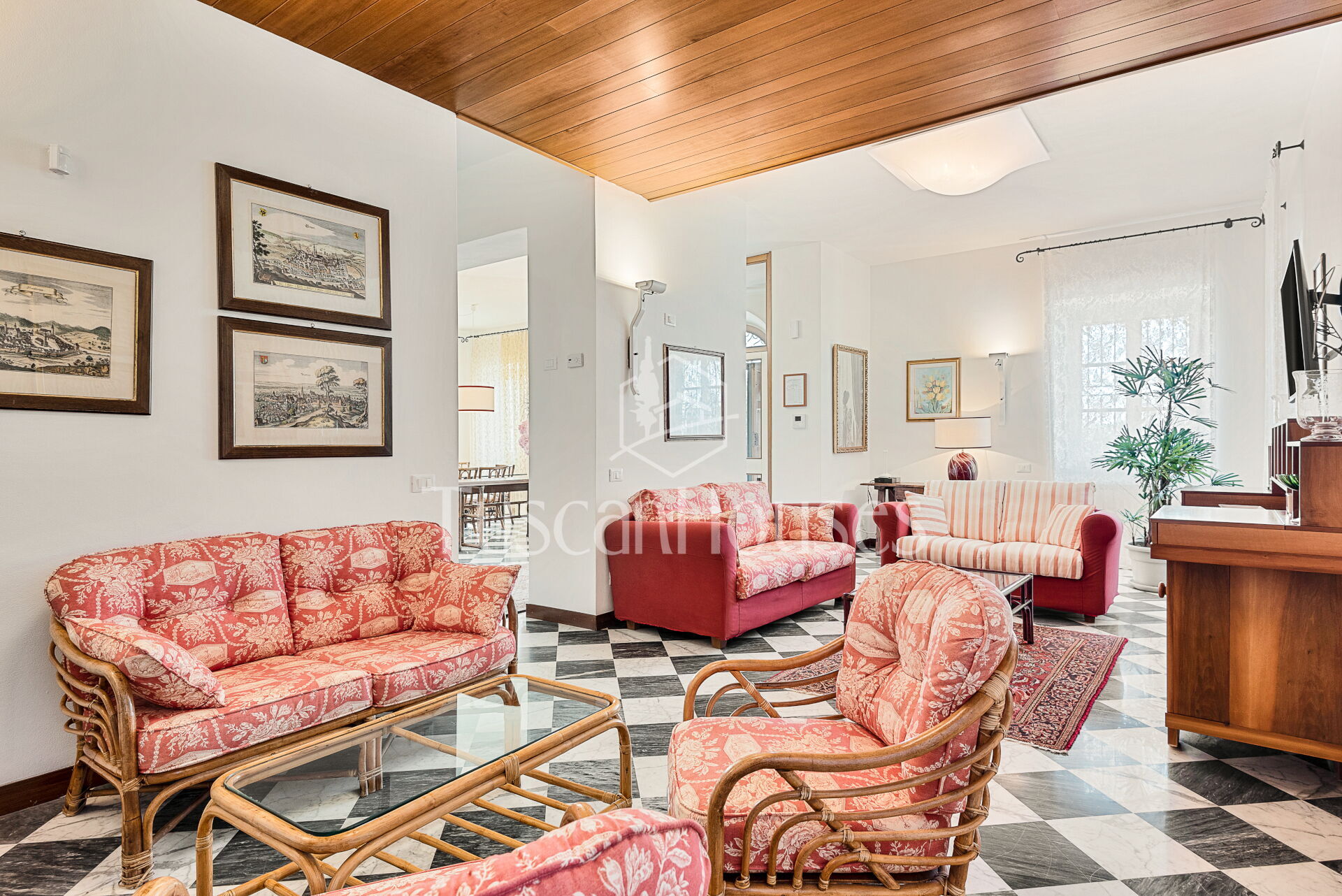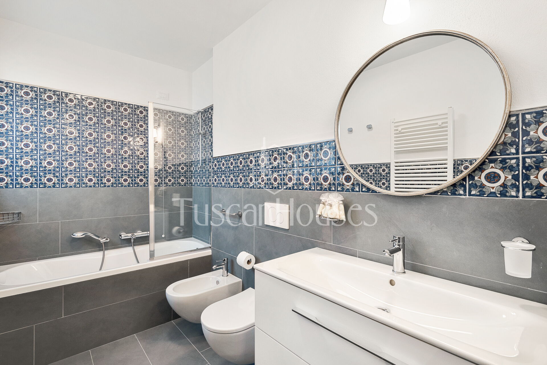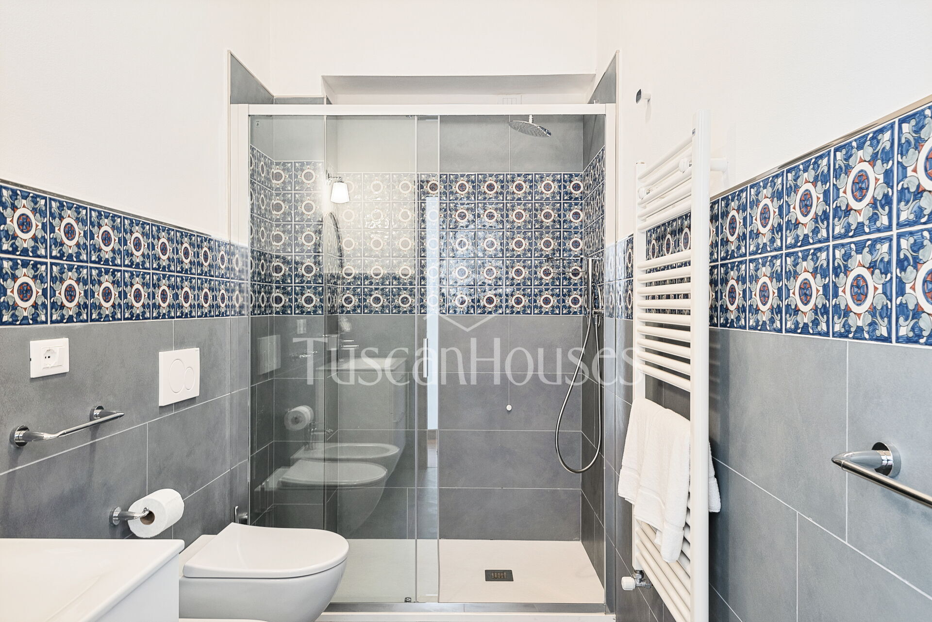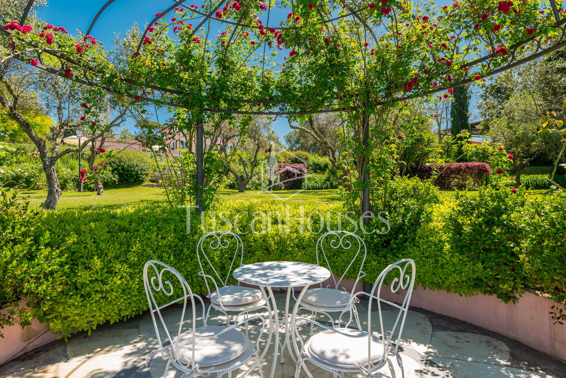 Villa Maestrale is a magnificent completely restored villa set in an amazing position, on the hills overlooking the Tyrrhenian Sea. Once you will park the car there will be no reason to leave again. The setting, the environment, the views are simply breath taking in a summer day as well in a dark cold winter day. The exteriors of the property are characterized by clear, marble typical of the area. The villa is located in a beautiful location between the sea of Forte dei Marmi and the hills of the famous vineyards of the Versilia. Villa Maestrale is the perfect point for visiting the nearby towns or simply relaxing in the well-maintained garden or under the veranda. Private swimming pool, exclusive tennis court, large lawn ideal for walking. The position allows to have daily trips or outdoor lunches in the closest towns of Pietrasanta, a renowned worldwide for its workshops of marble and visited by many artists (who you can sometimes meet in a café in a main square), or the marble quarries of Carrara (16 km), for trips to the city of Lucca (41 km) with its old Renaissance walls and its many historic villas, and to the other popular resort towns of Tuscany such as Pisa with its Square of Miracles (39 km), Florence (109 km) and the Cinque Terre (58 km) UNESCO World Heritage Site.