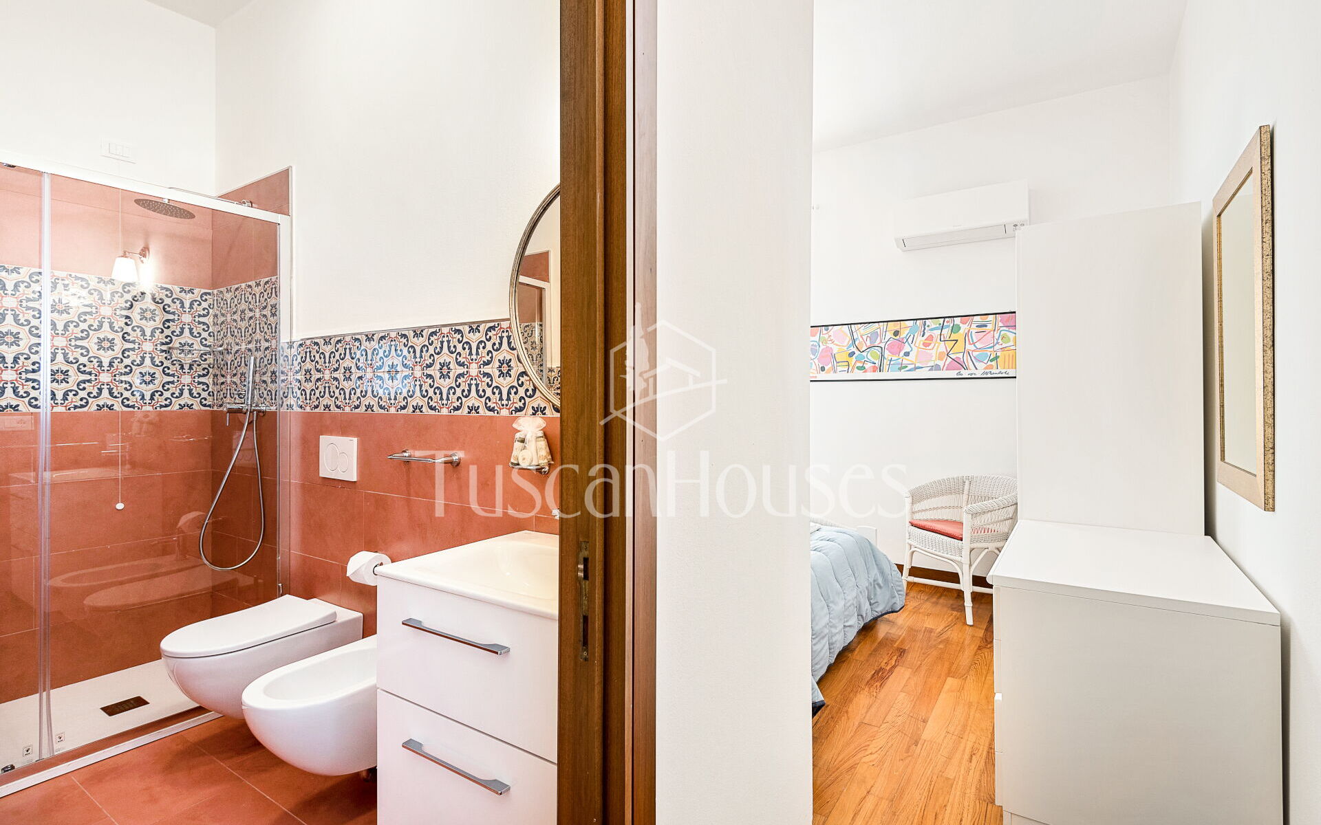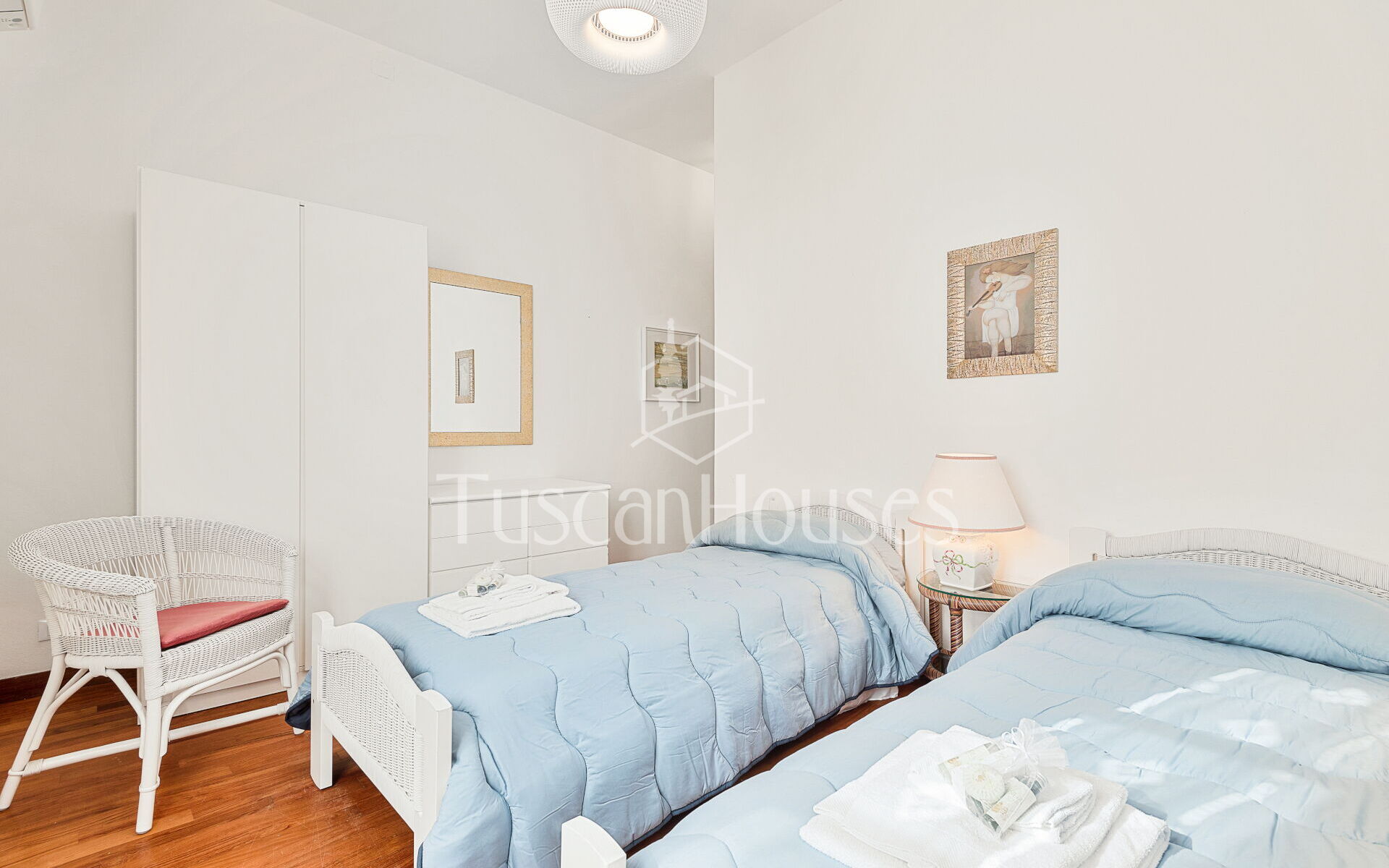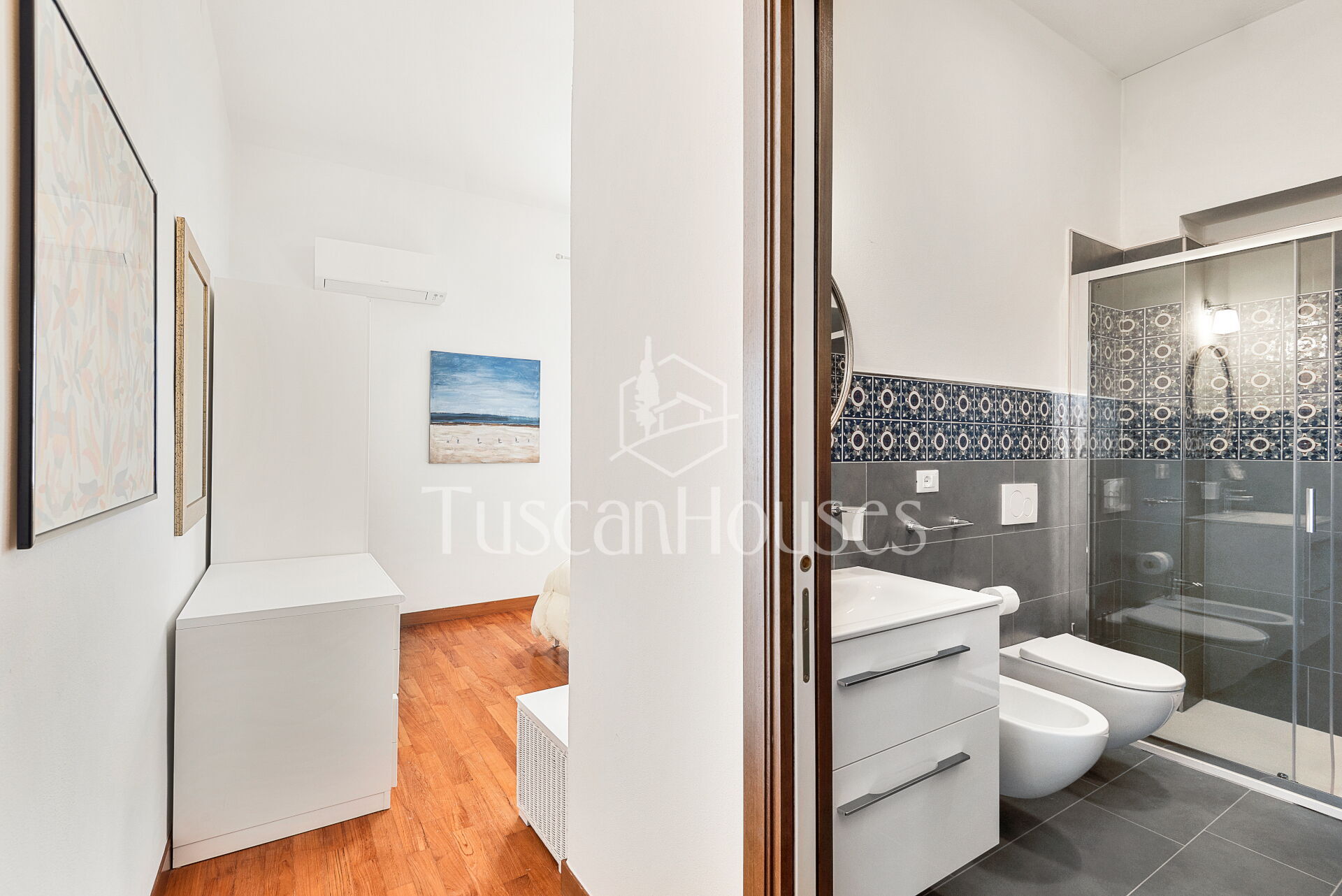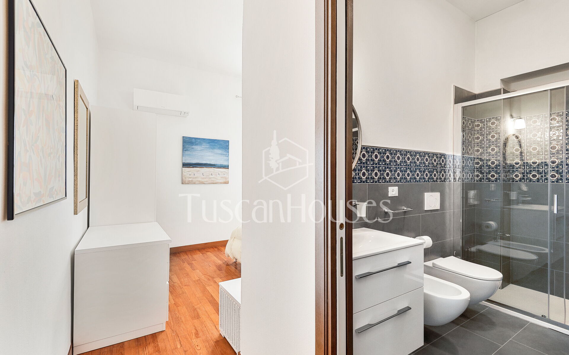 Villa Maestrale is a magnificent completely restored villa set in an amazing position, on the hills overlooking the Tyrrhenian Sea. Once you will park the car there will be no reason to leave again. The setting, the environment, the views are simply breath taking in a summer day as well in a dark cold winter day. The exteriors of the property are characterized by clear, marble typical of the area. The villa is located in a beautiful location between the sea of Forte dei Marmi and the hills of the famous vineyards of the Versilia. Villa Maestrale is the perfect point for visiting the nearby towns or simply relaxing in the well-maintained garden or under the veranda. Private swimming pool, exclusive tennis court, large lawn ideal for walking. The position allows to have daily trips or outdoor lunches in the closest towns of Pietrasanta, a renowned worldwide for its workshops of marble and visited by many artists (who you can sometimes meet in a café in a main square), or the marble quarries of Carrara (16 km), for trips to the city of Lucca (41 km) with its old Renaissance walls and its many historic villas, and to the other popular resort towns of Tuscany such as Pisa with its Square of Miracles (39 km), Florence (109 km) and the Cinque Terre (58 km) UNESCO World Heritage Site.