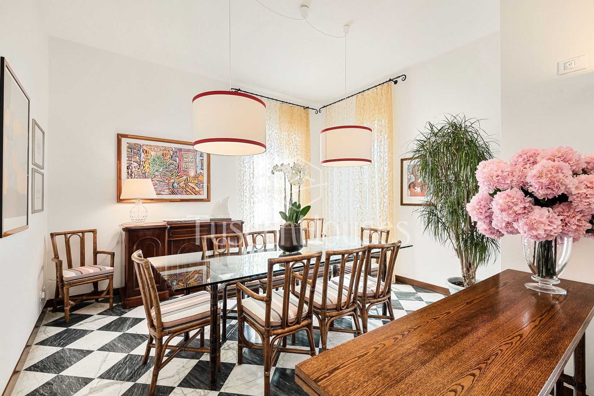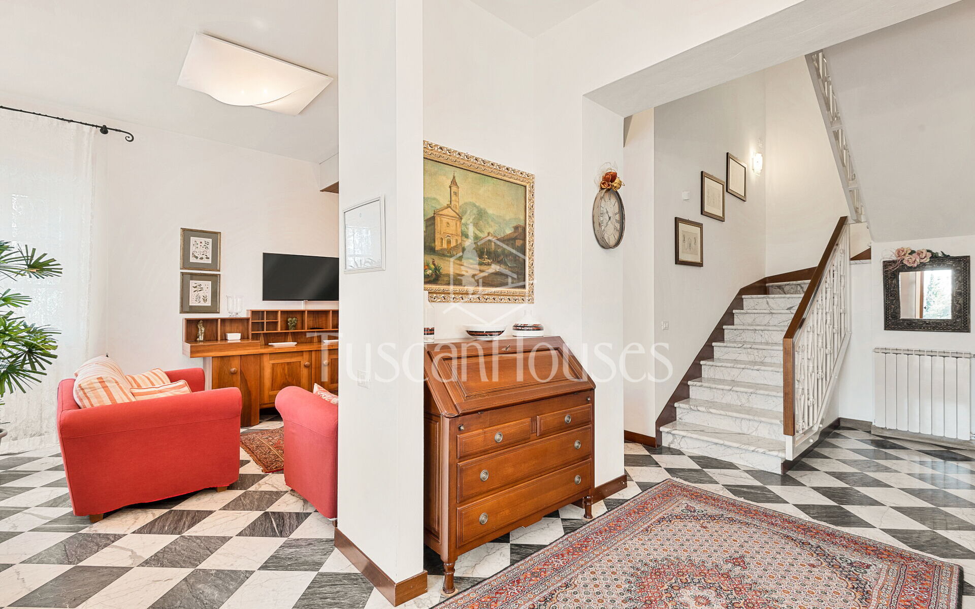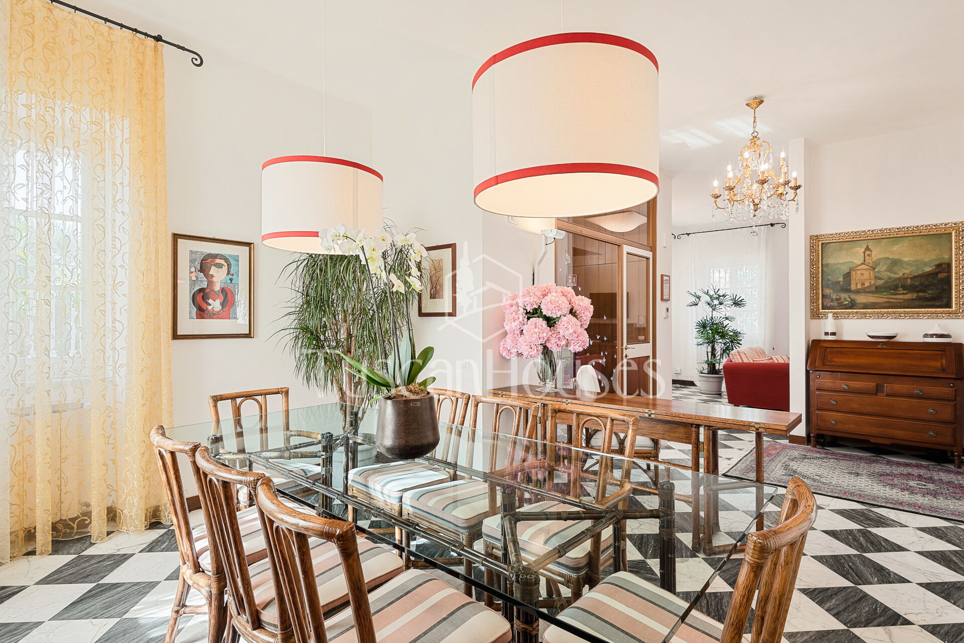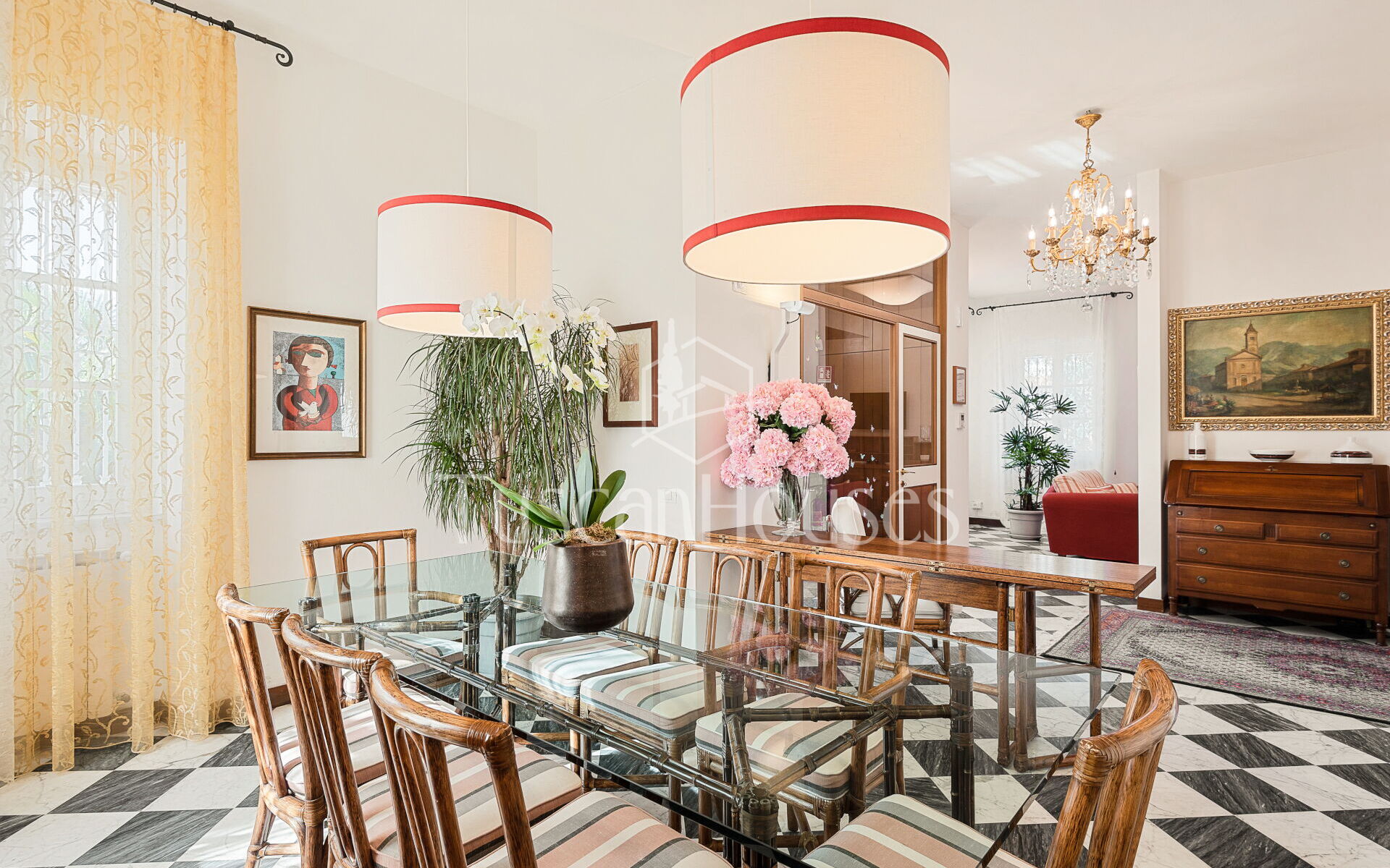 In a quiet residential neighborhood stands a house of imposing yet inviting appearance. The meticulously manicured driveway leads to the main entrance, where an elegant wooden door invites visitors to enter. Inside, a grand piano commands attention in a living room, exuding an air of sophistication and warmth. On the ground floor, the cozy living room with access to the outdoor veranda and the dining room is the ideal spot for family gatherings. The well-equipped kitchen is the perfect place to prepare meals to be shared with family and friends on the veranda while admiring the sea view, and finally, on the same floor, the laundry room offers convenience and comfort for daily household chores.