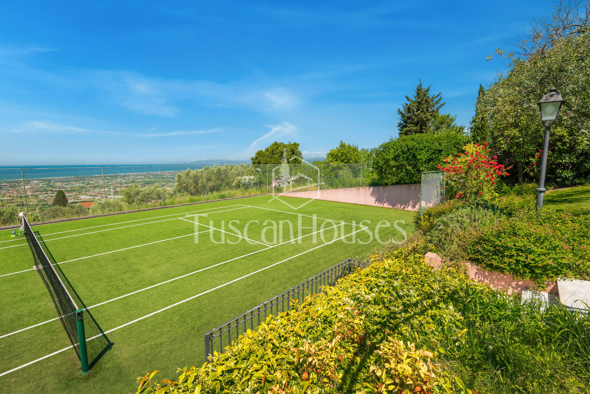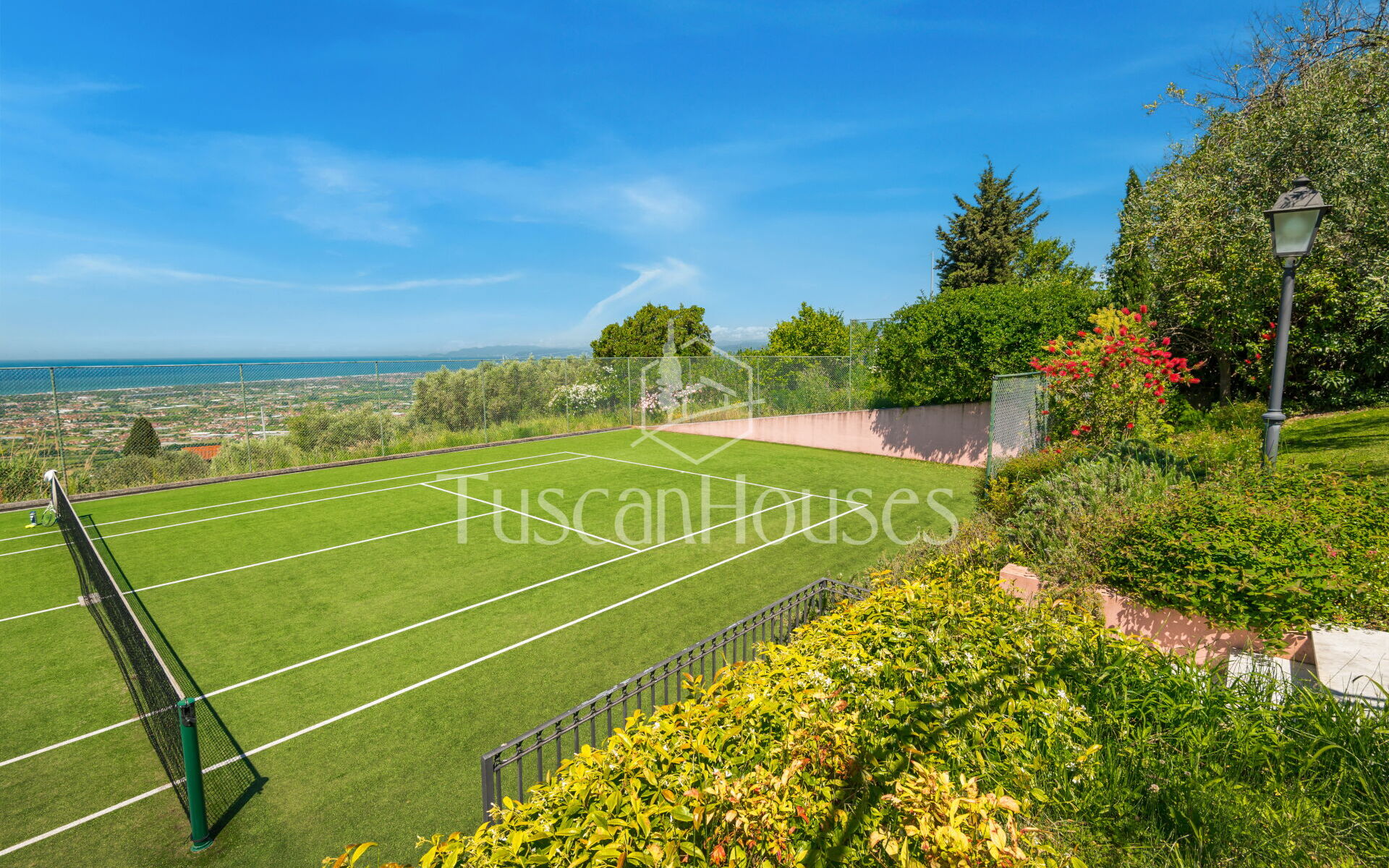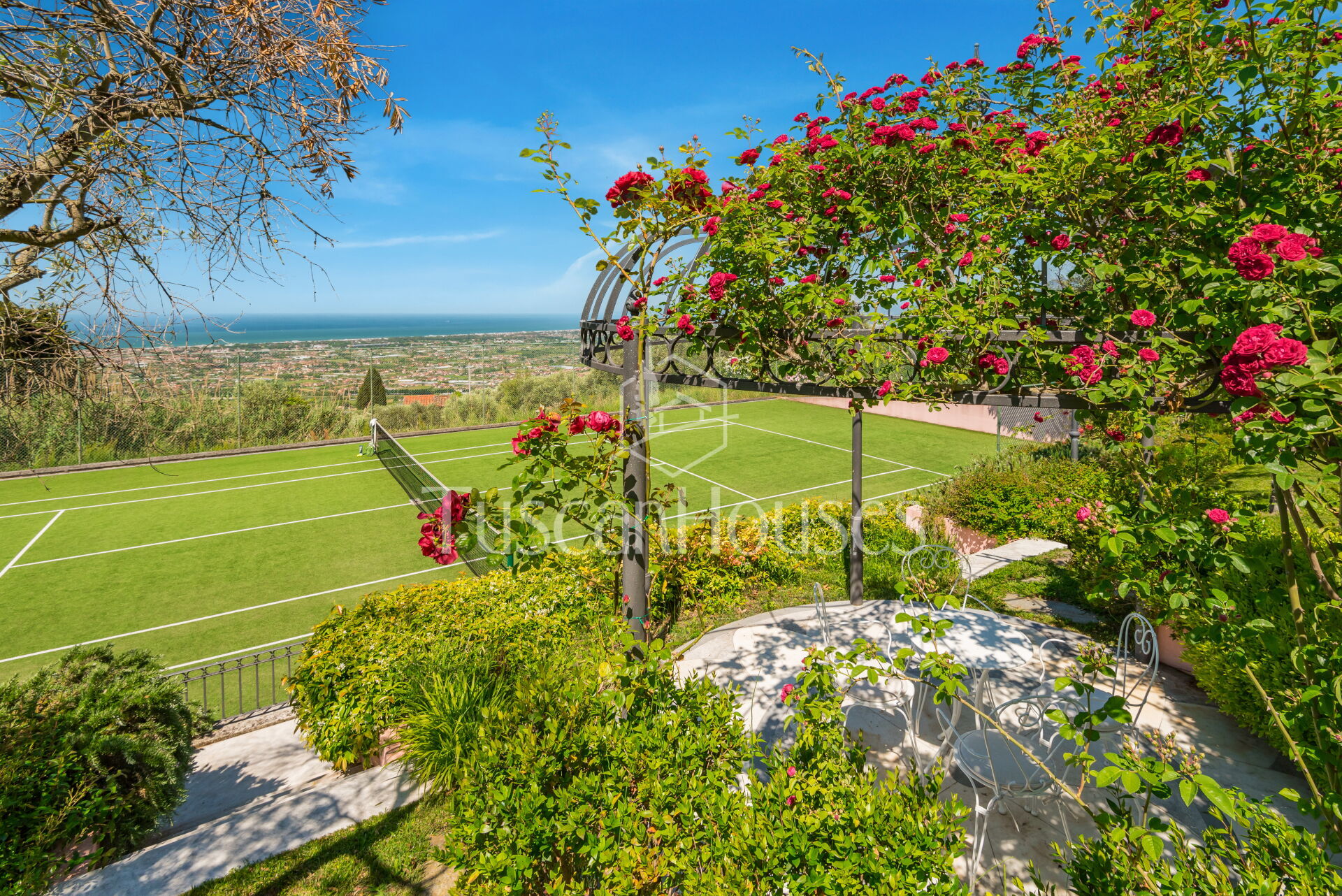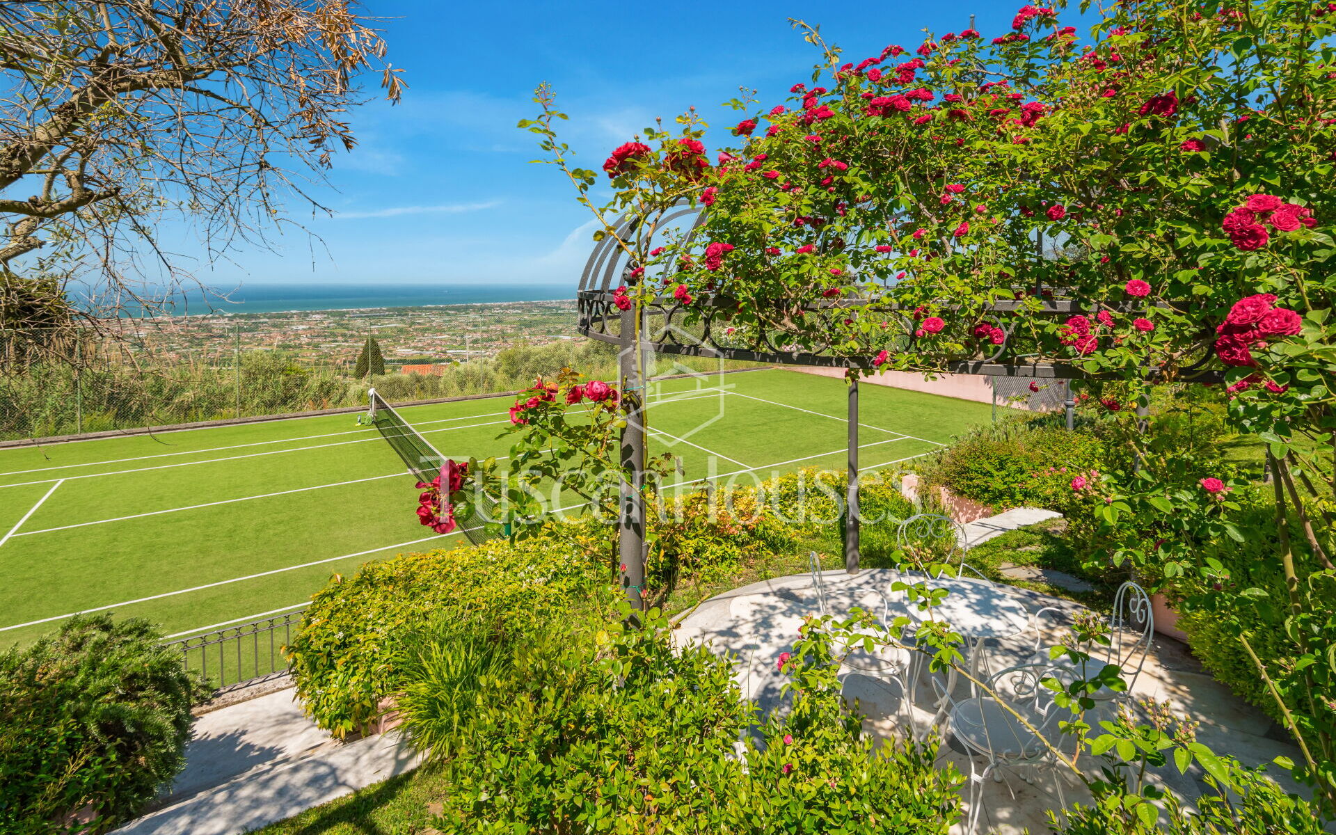 Villa Maestrale is a sea-view villa in Versilia with private pool, tennis court and fenced garden, perfect for a relaxing holiday in Tuscany.