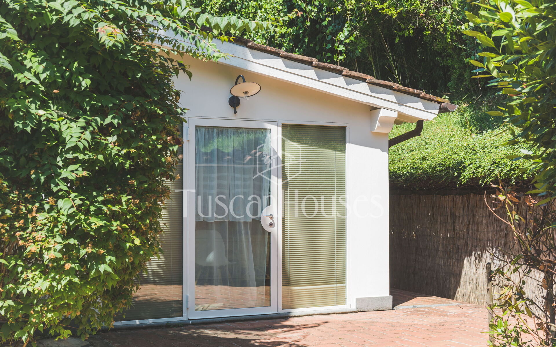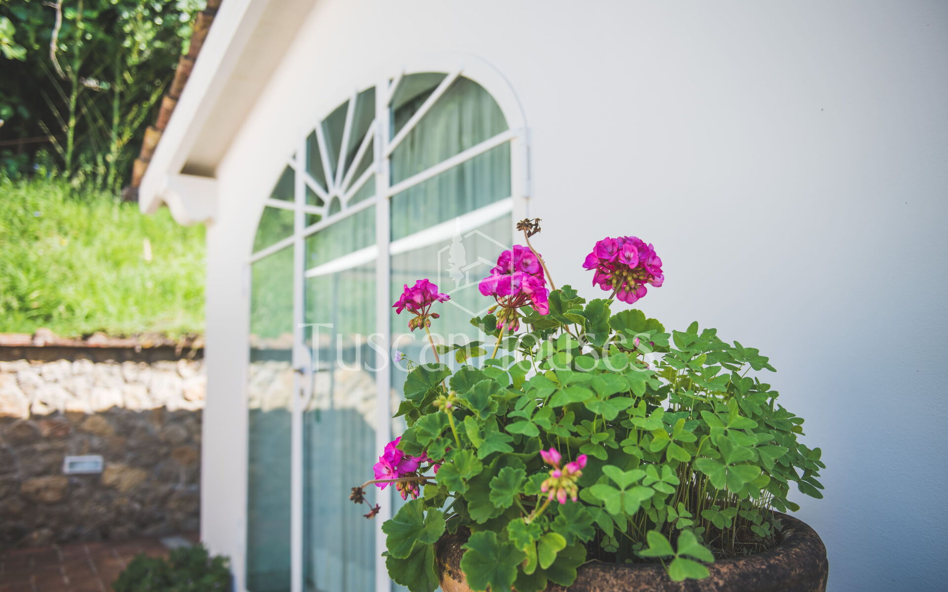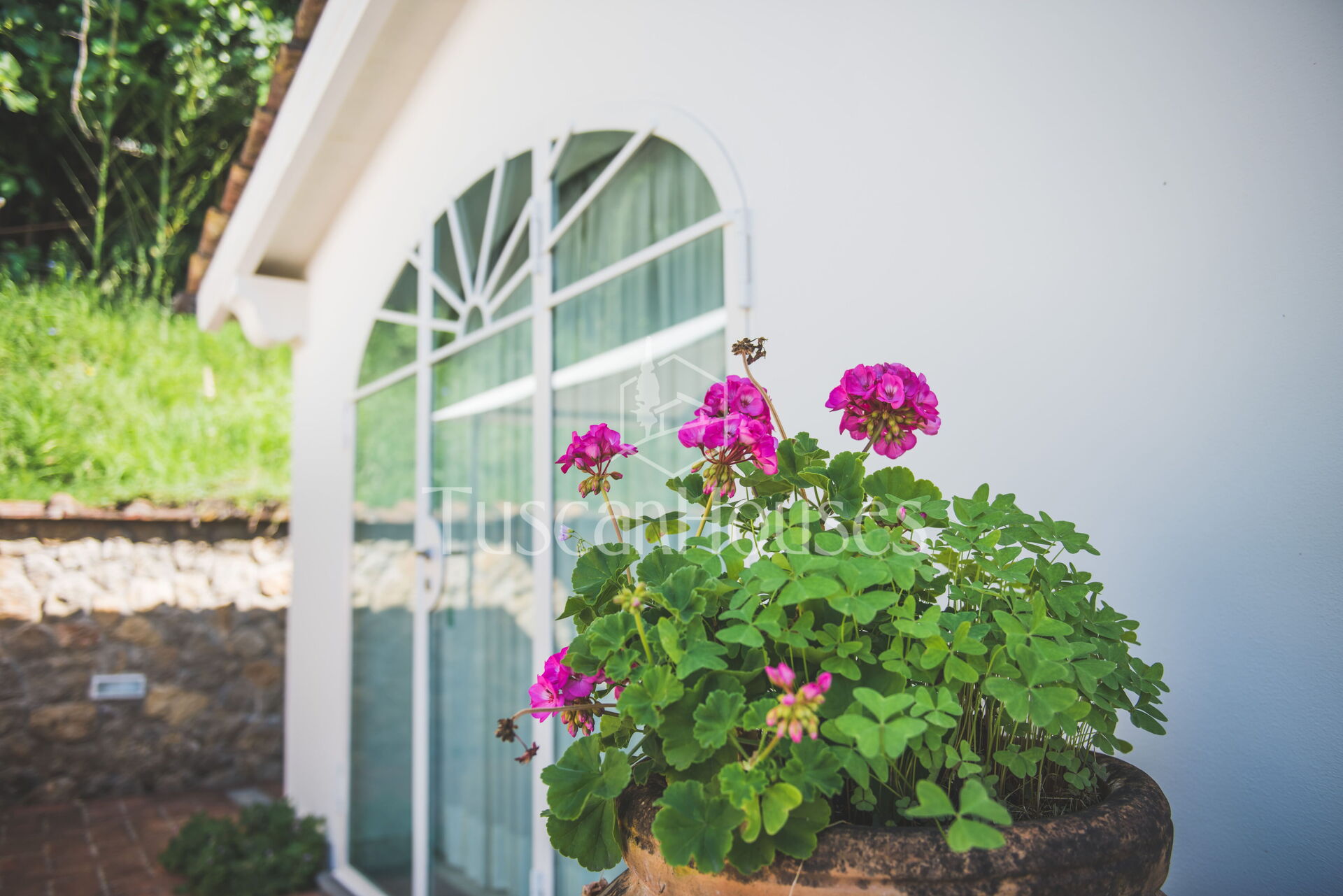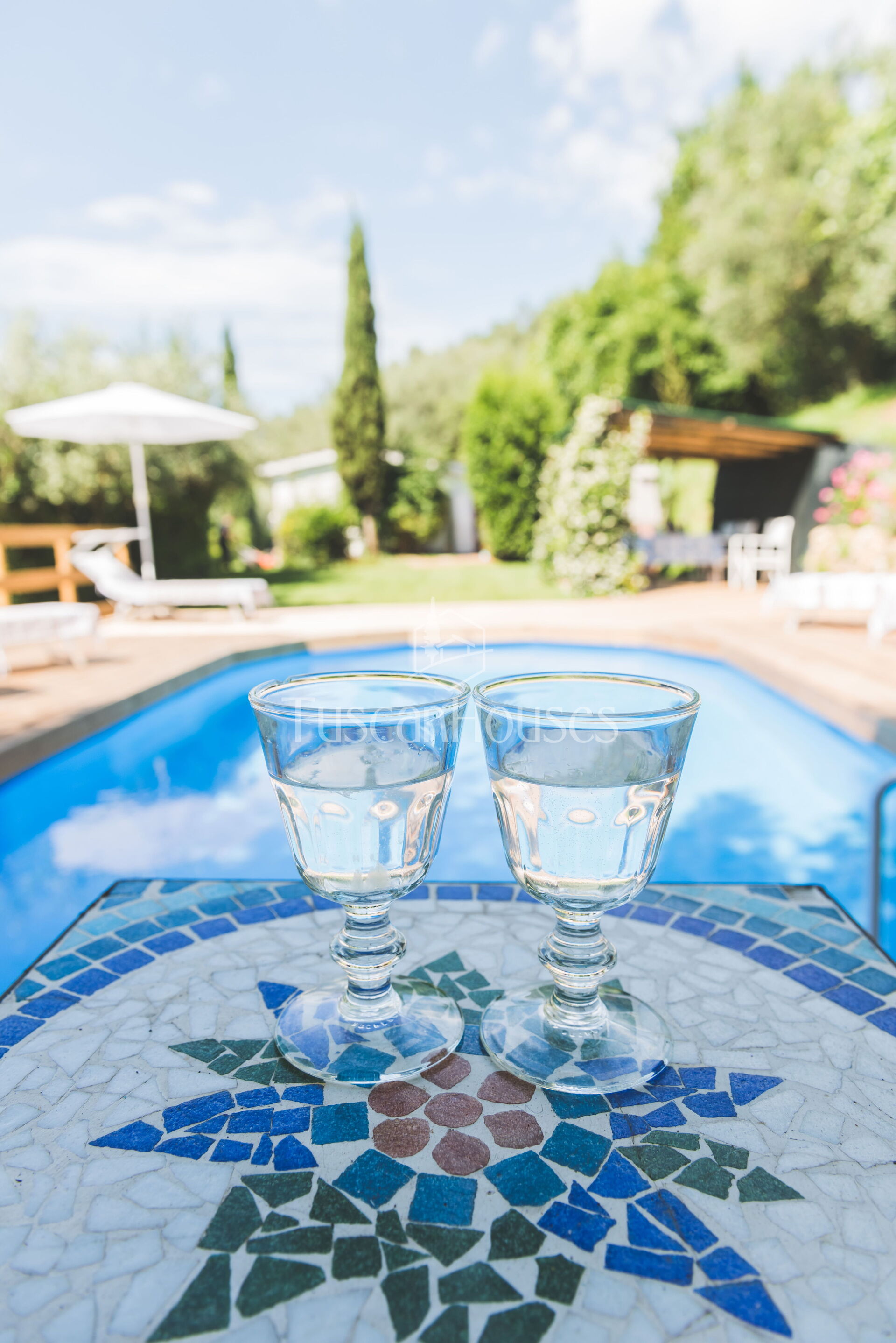 Outside, Casa La Collina offers a green oasis of relaxation, just a stone's throw away from Camaiore. The outdoor pergola is the perfect spot to relish al fresco lunches and dinners, while the pool, complete with comfortable loungers and umbrellas, invites pure leisure and sun-soaked repose in the Tuscan breeze.