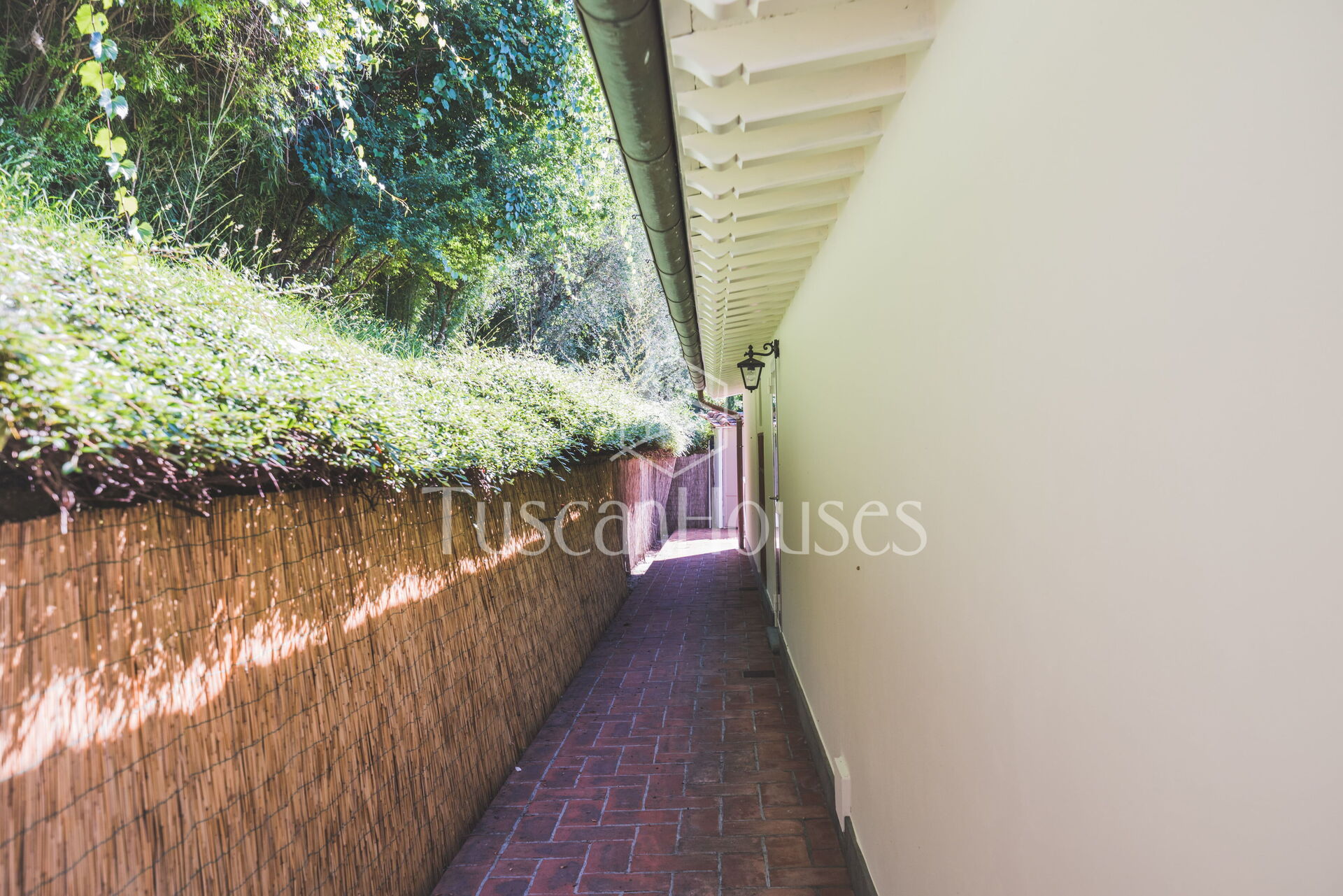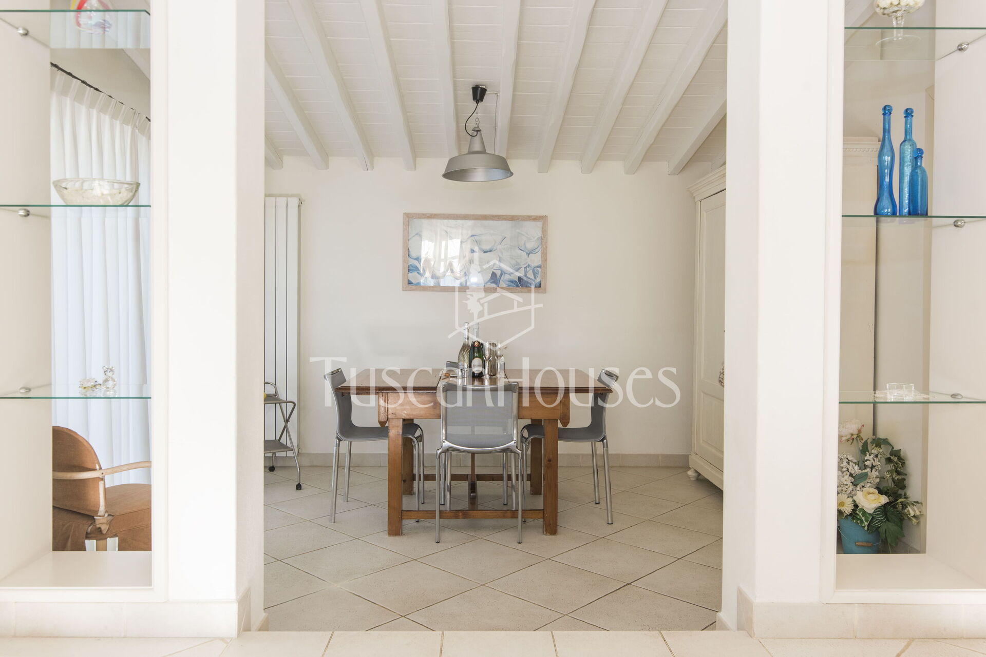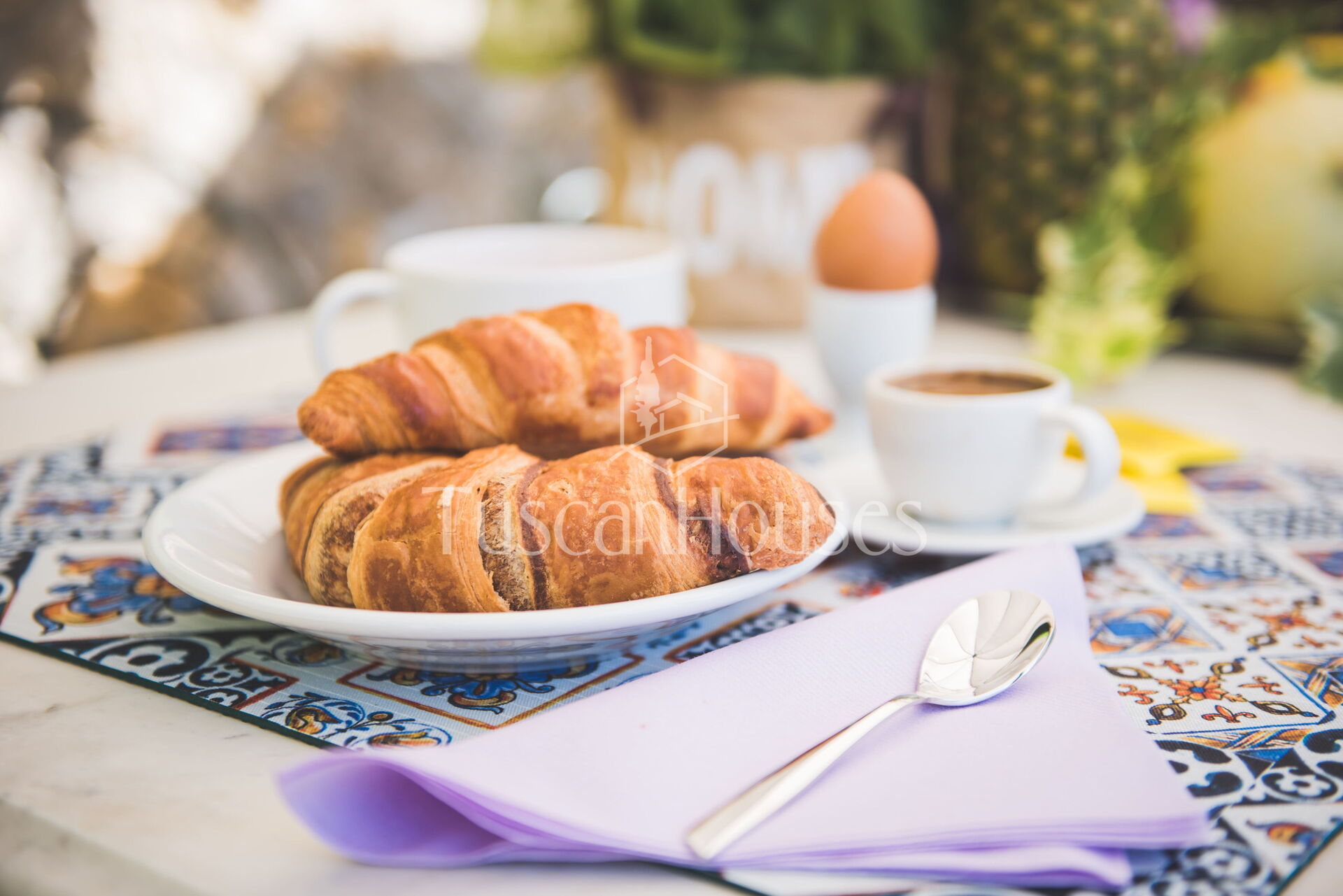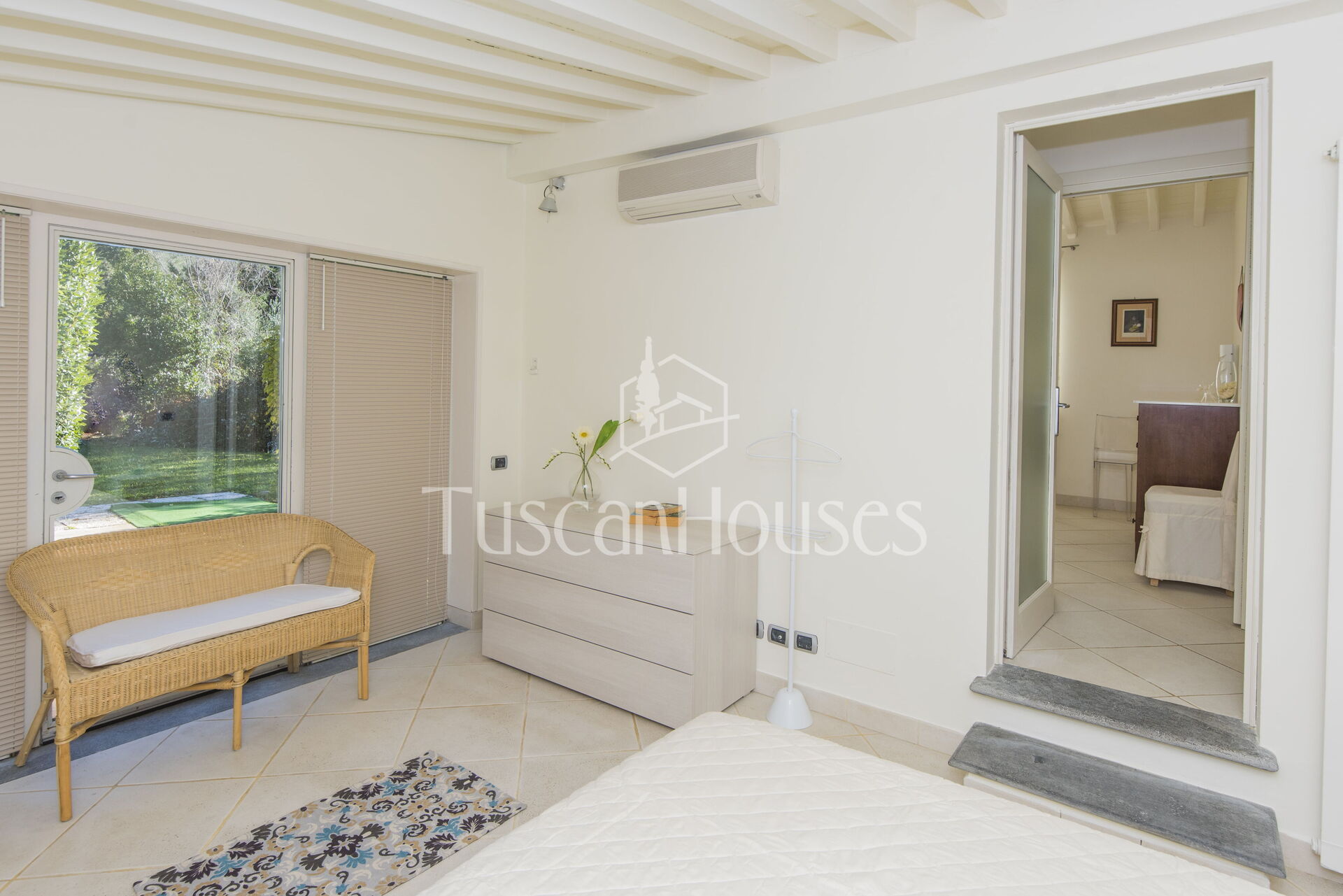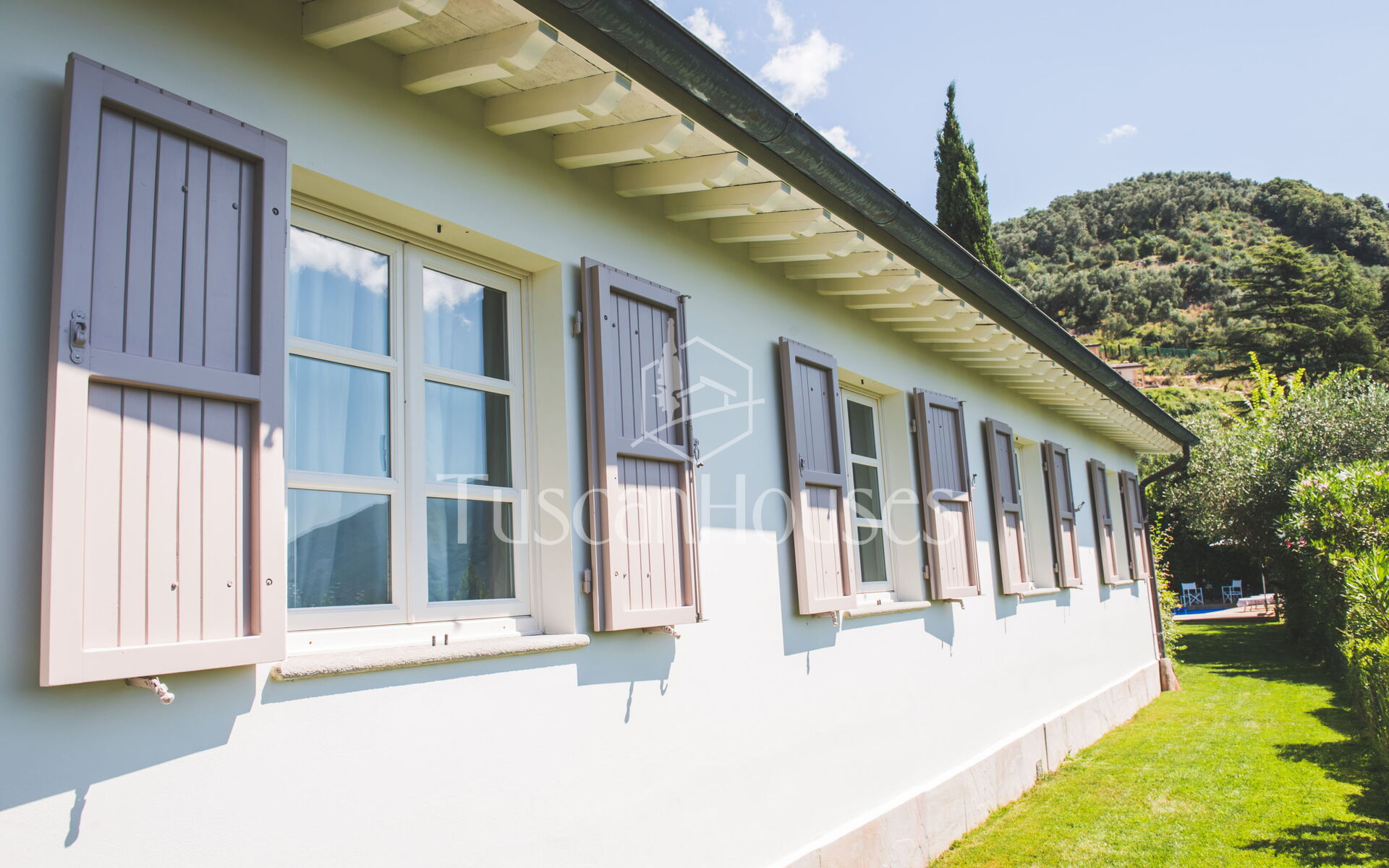 Outside, Casa La Collina offers a green oasis of relaxation, just a stone's throw away from Camaiore. The outdoor pergola is the perfect spot to relish al fresco lunches and dinners, while the pool, complete with comfortable loungers and umbrellas, invites pure leisure and sun-soaked repose in the Tuscan breeze.