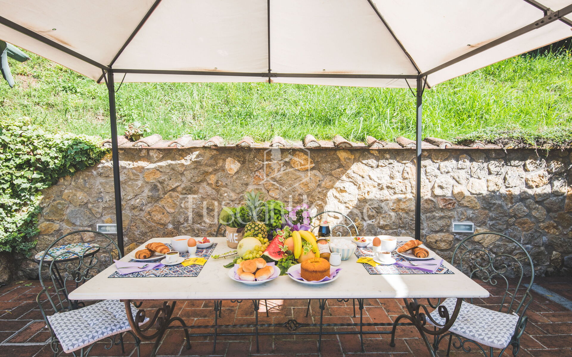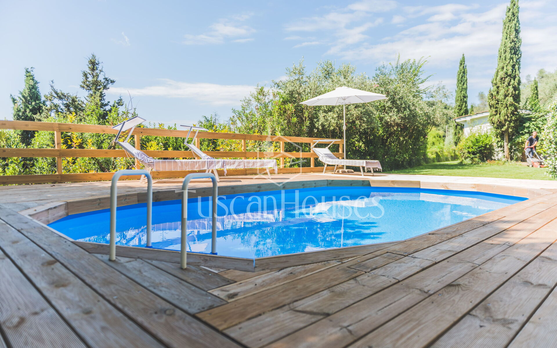 At the centre of the fenced garden, there is pool, measuring 7 x 3.50 meters, with a depth of 1.20 meters, ideal for cooling off and enjoying the Tuscan sun. The swimming pool is private and exclusive. The purification system is chlorine-based, and the sunbathing area is equipped with sun loungers, deck chairs, and umbrellas.