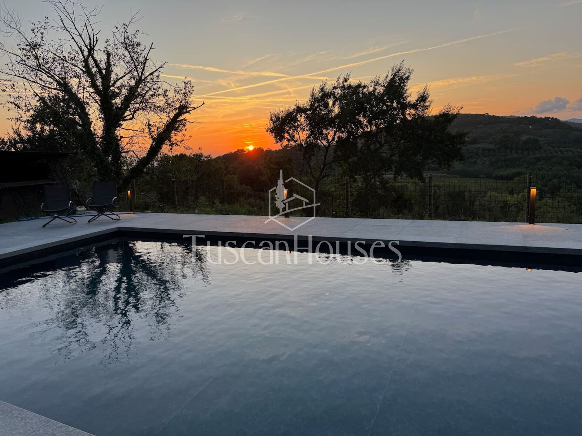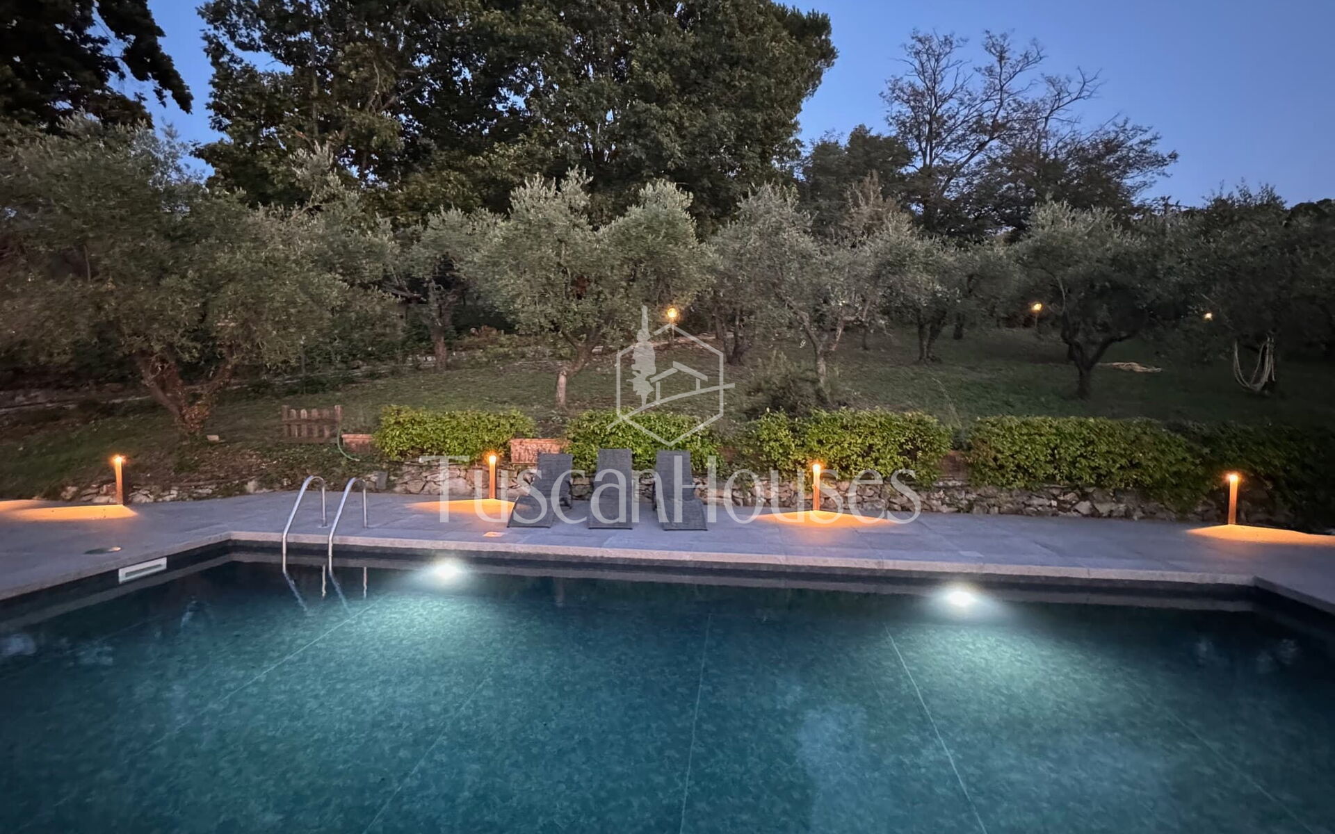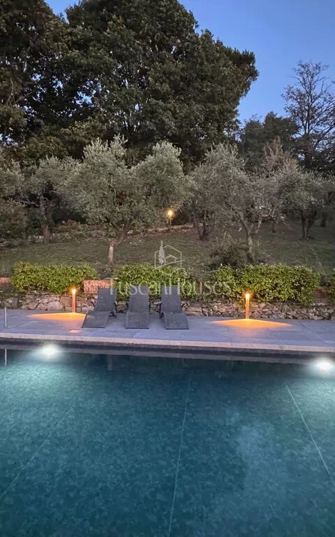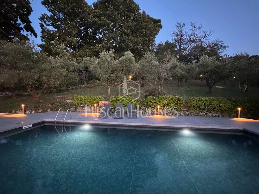 The property also features a private swimming pool (maximum depth 1.40 m), treated with salt, perfect for cooling off during the summer months. Surrounded by olive trees, it offers a relaxing space with stunning views of the Tuscan hills. The pool is perfect for a refreshing swim or simply relaxing by the water
