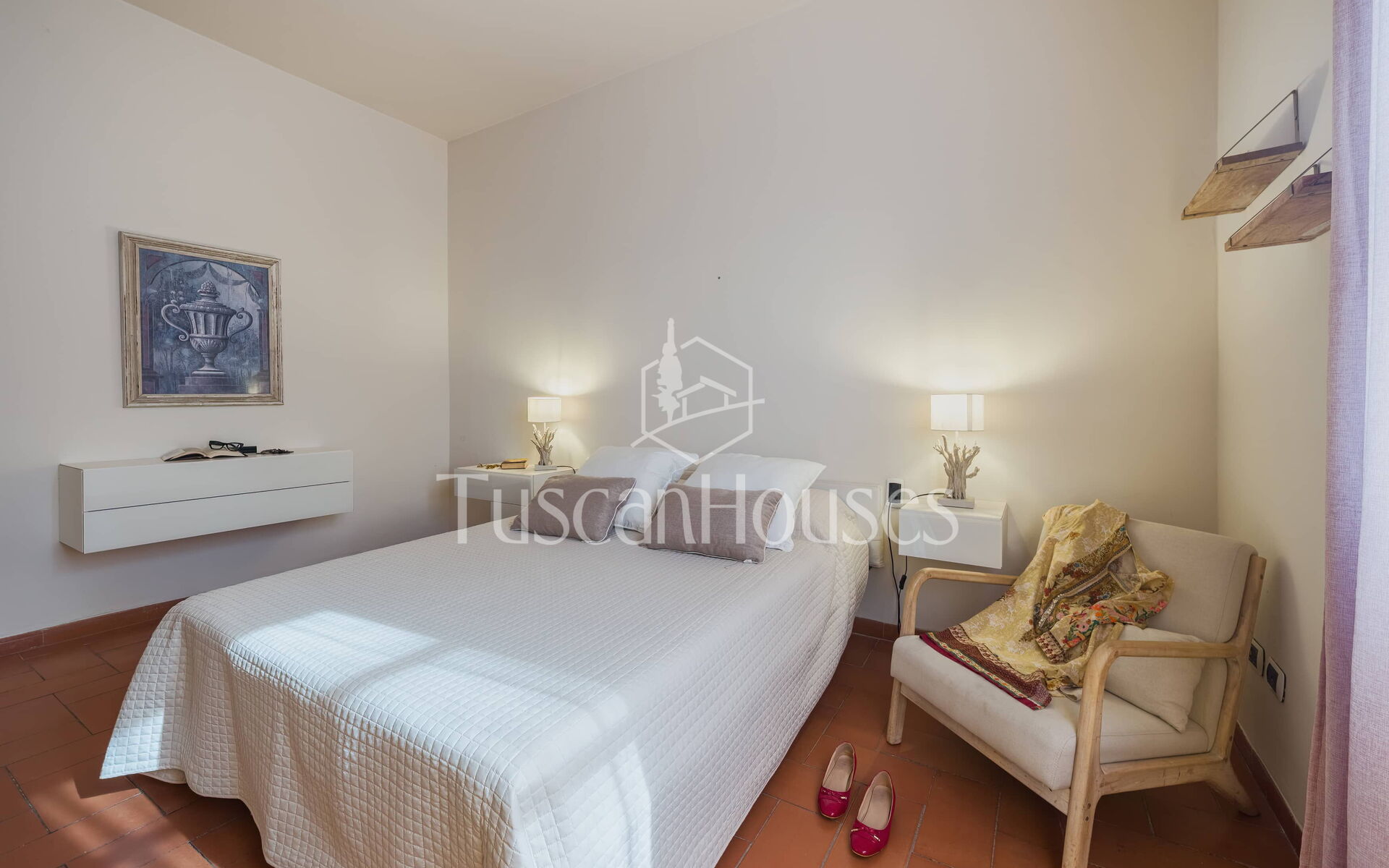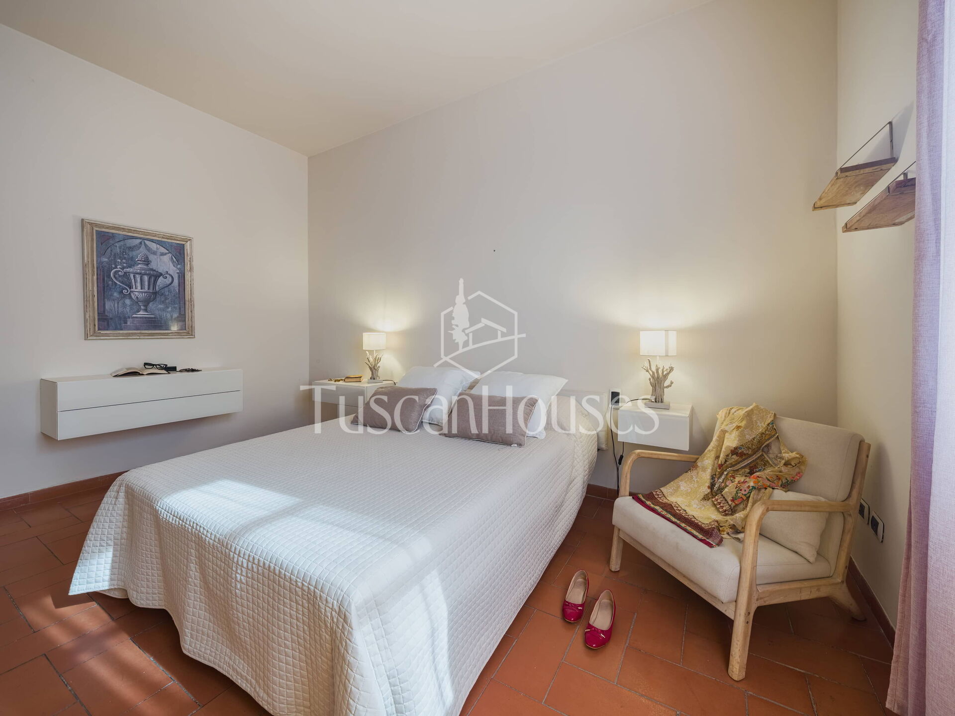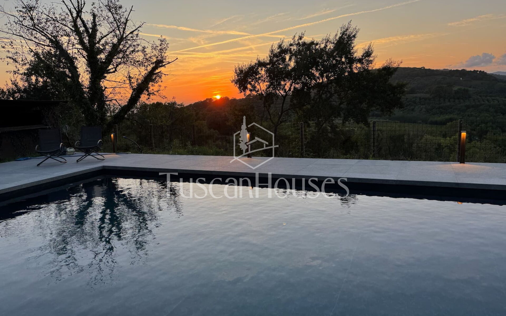 The property also features a private swimming pool (maximum depth 1.40 m), treated with salt, perfect for cooling off during the summer months. Surrounded by olive trees, it offers a relaxing space with stunning views of the Tuscan hills. The pool is perfect for a refreshing swim or simply relaxing by the water