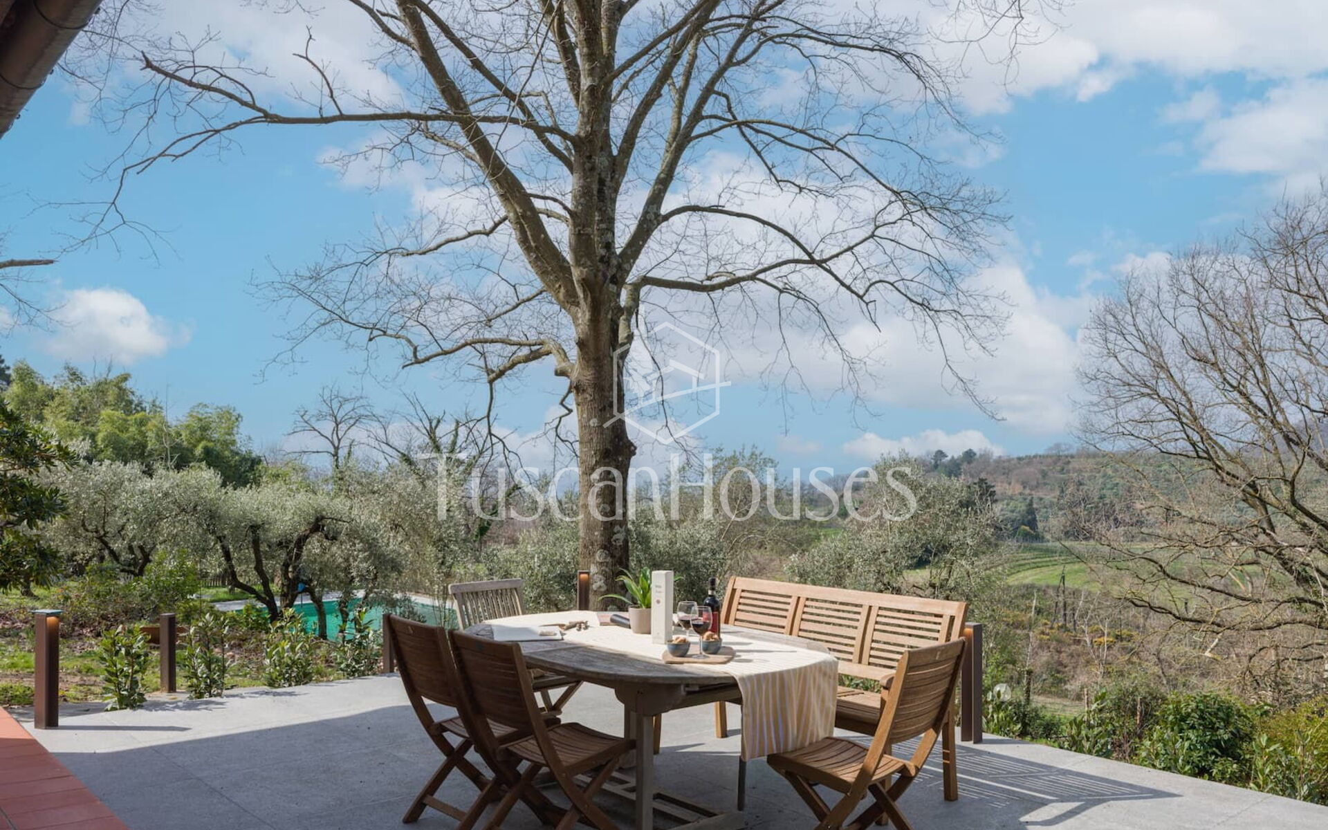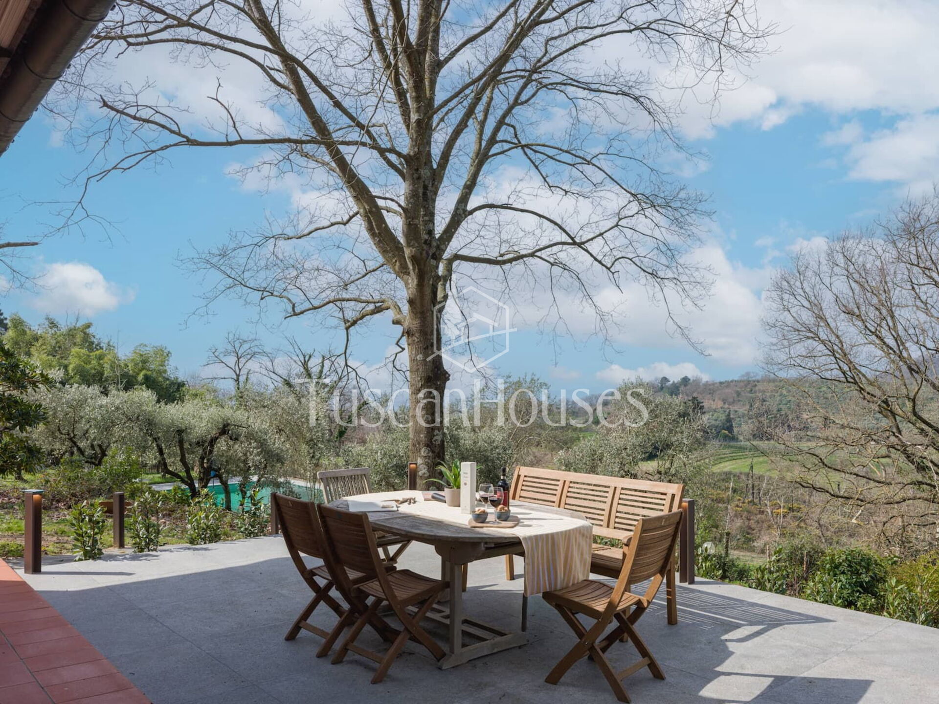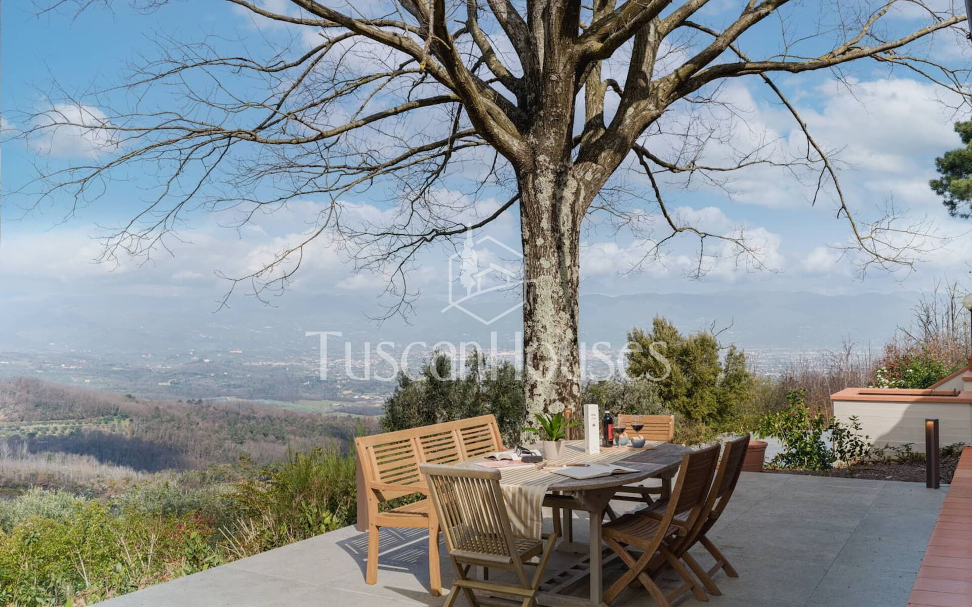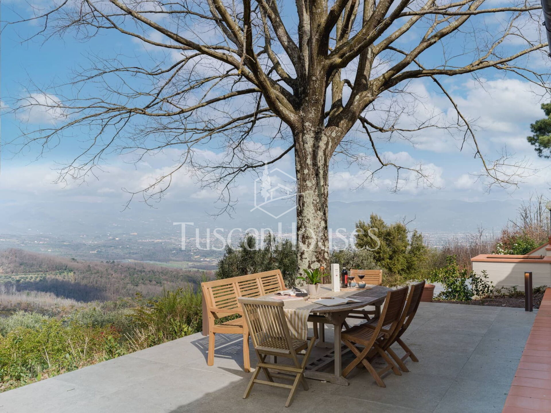 Casa Al Vento is a countryside home with private pool and panoramic terrace overlooking the Valdinievole valley, surrounded by woods and naturally cooled by the breeze.