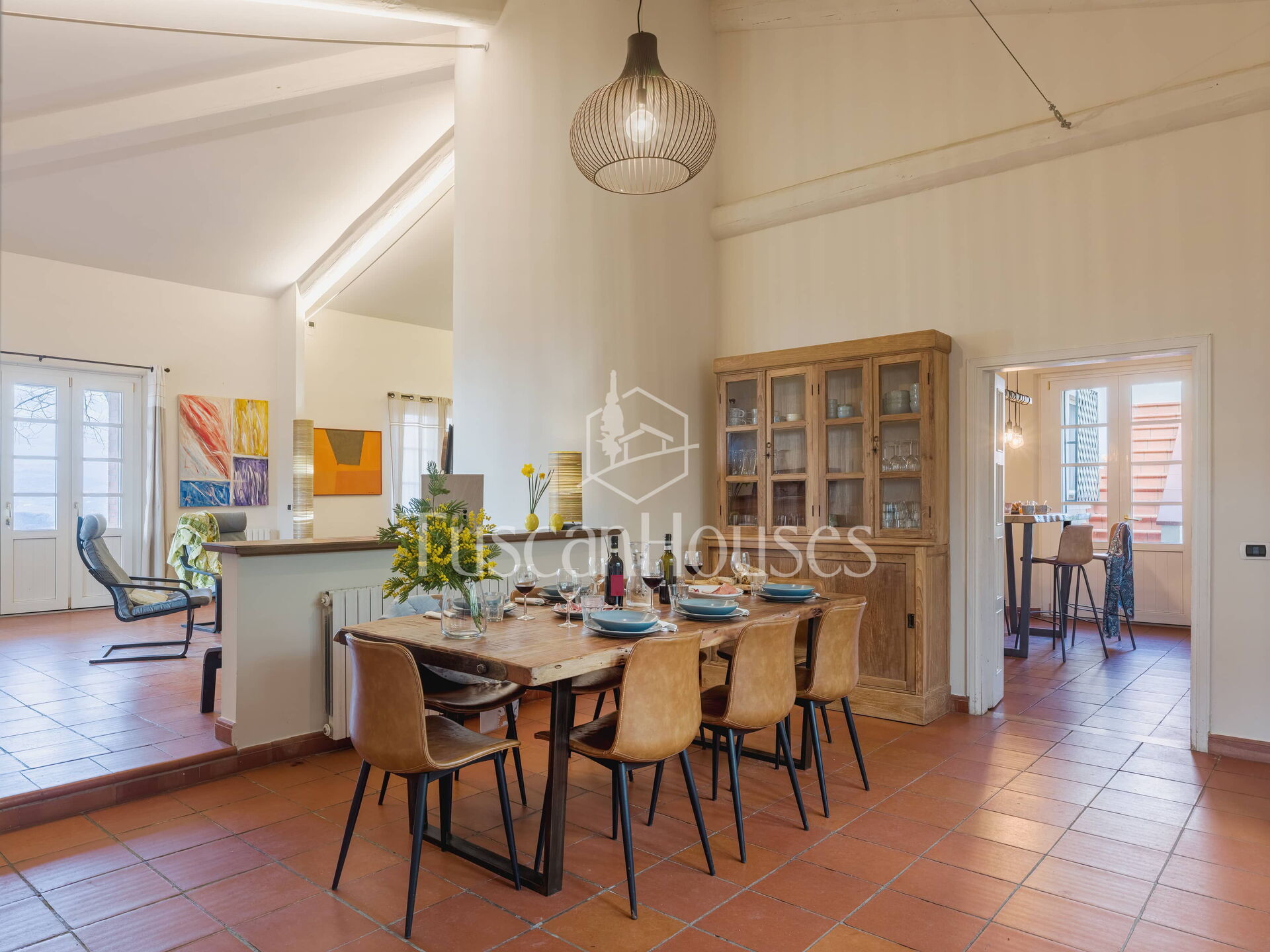 In front of the house, a large panoramic terrace opens onto beautiful views of the valley below, offering a wonderful setting for relaxing outdoors at any time of the day. It is the perfect place to slow down, enjoy a good glass of local wine and admire the sunset. On breezy evenings, you might even appreciate having a light jacket with you.