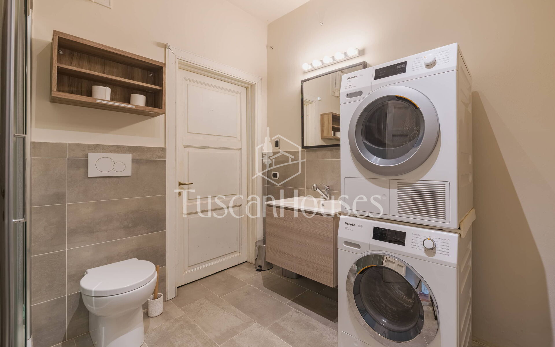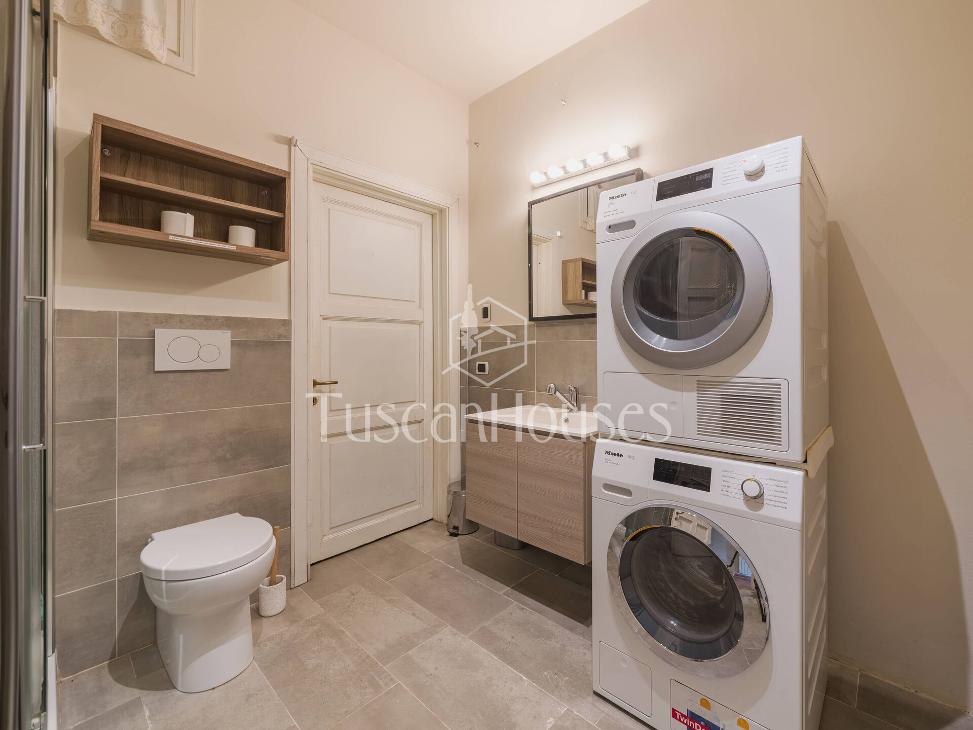 This floor also includes a laundry area equipped with washing machine and dryer.