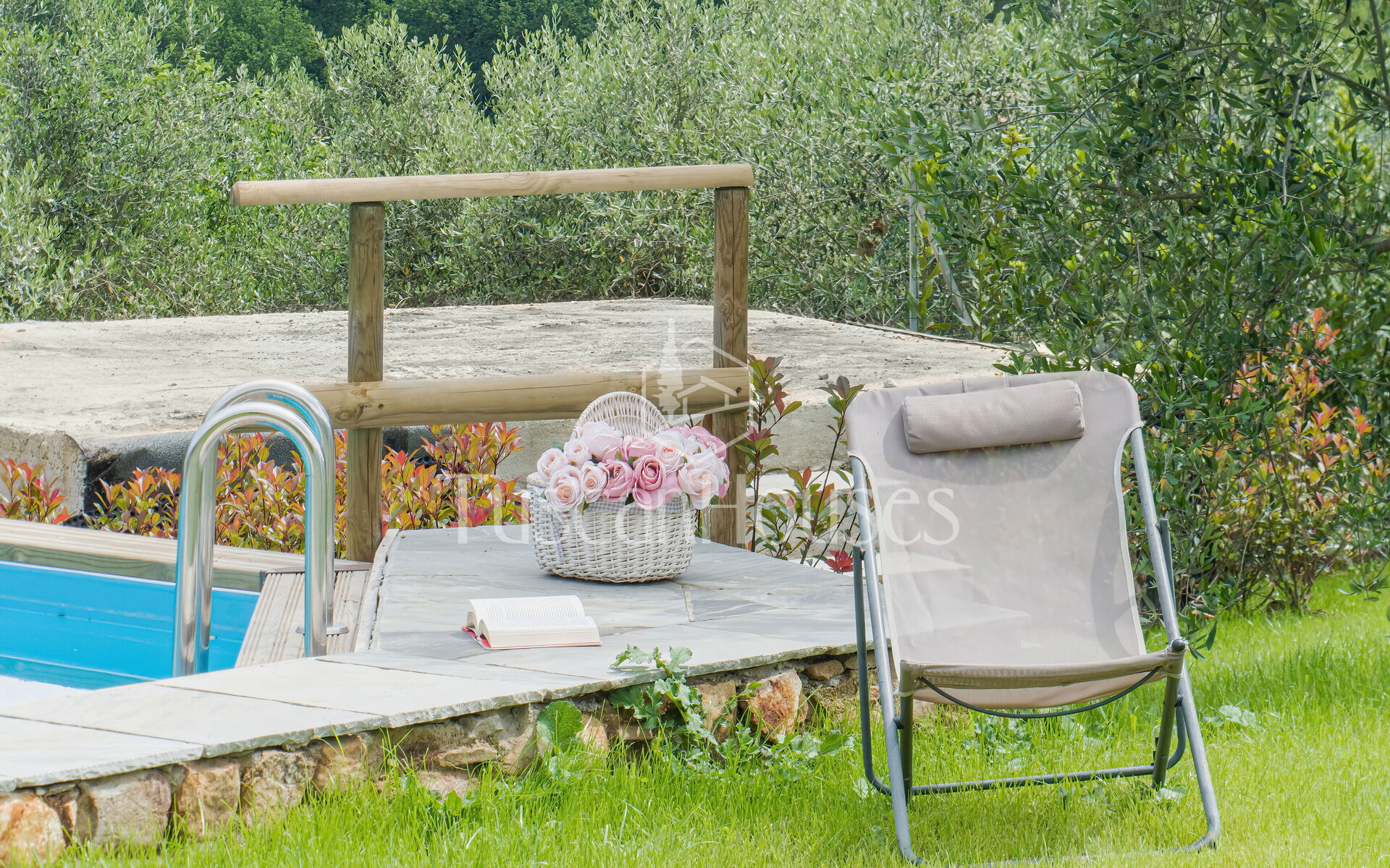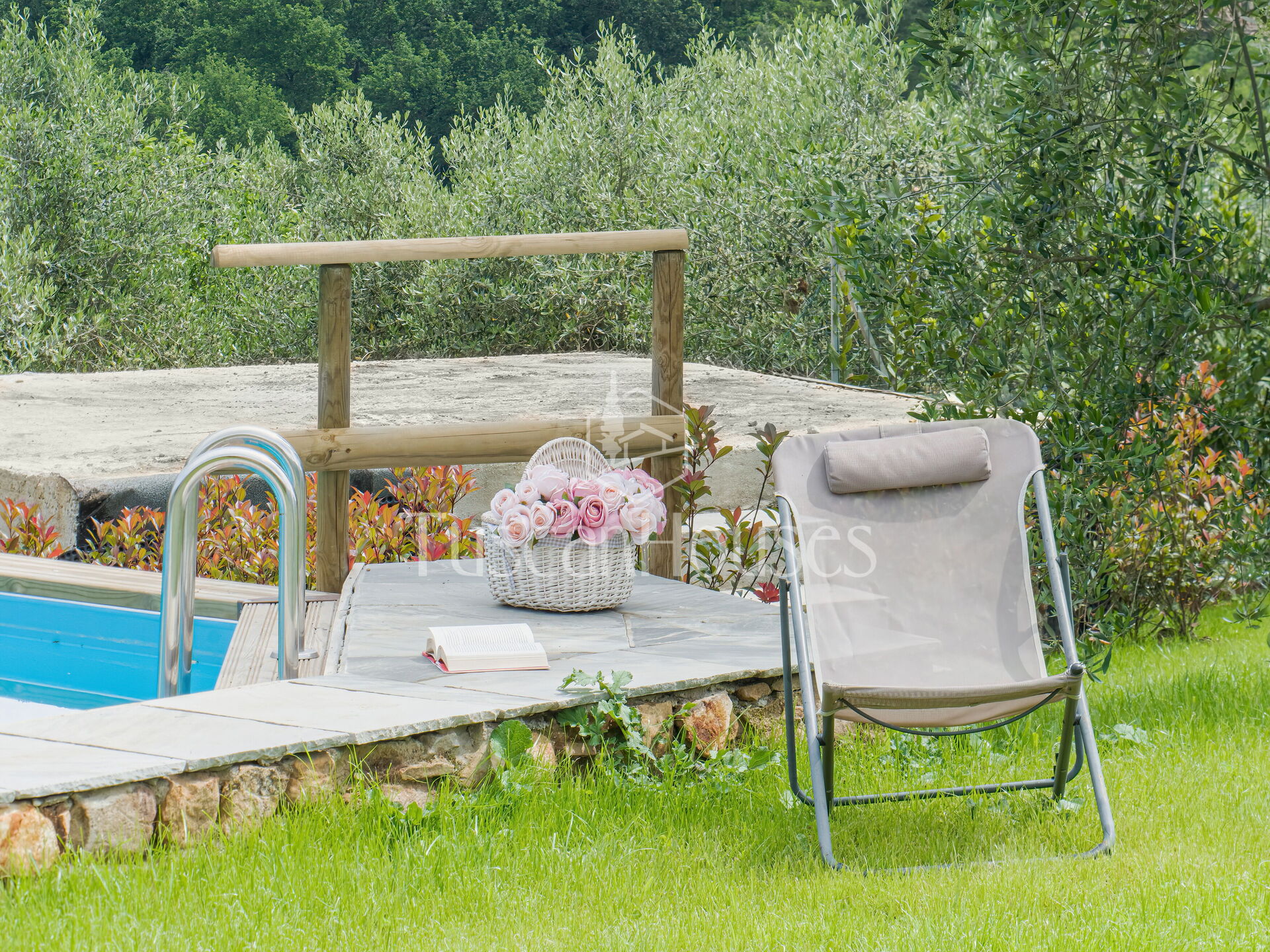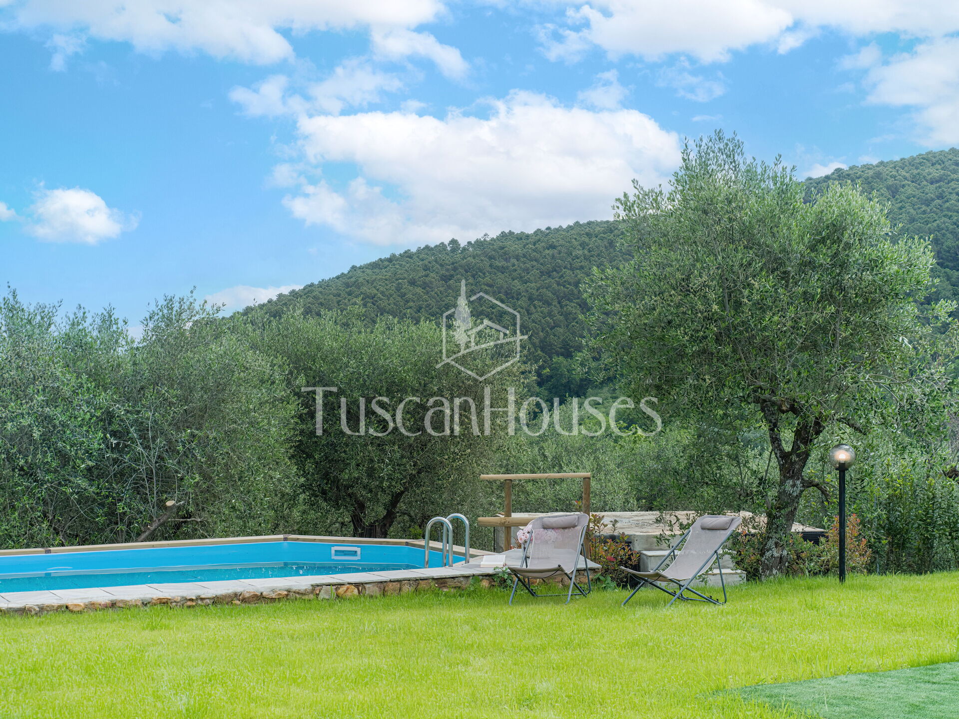 At the centre of the fenced garden, on a lower level, there is an above-ground pool for 3 sides, measuring 4 x 9 meters, with a depth of 1.30 meters, ideal for cooling off and enjoying the Tuscan sun. The swimming pool is private and exclusive. The purification system is chlorine-based, and the sunbathing area is equipped with sun loungers, deck chairs, and umbrellas