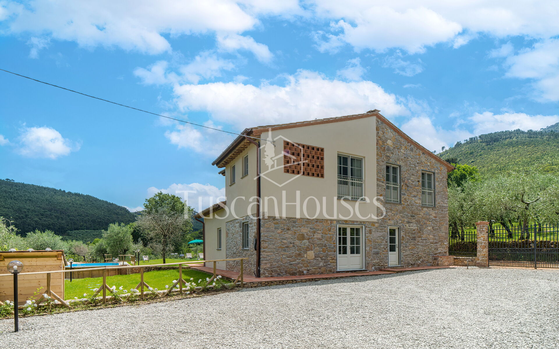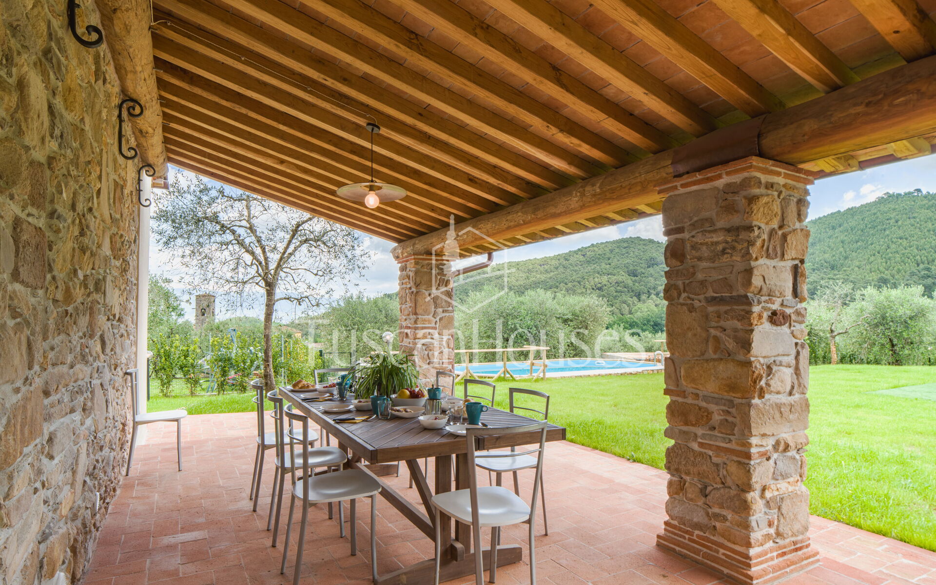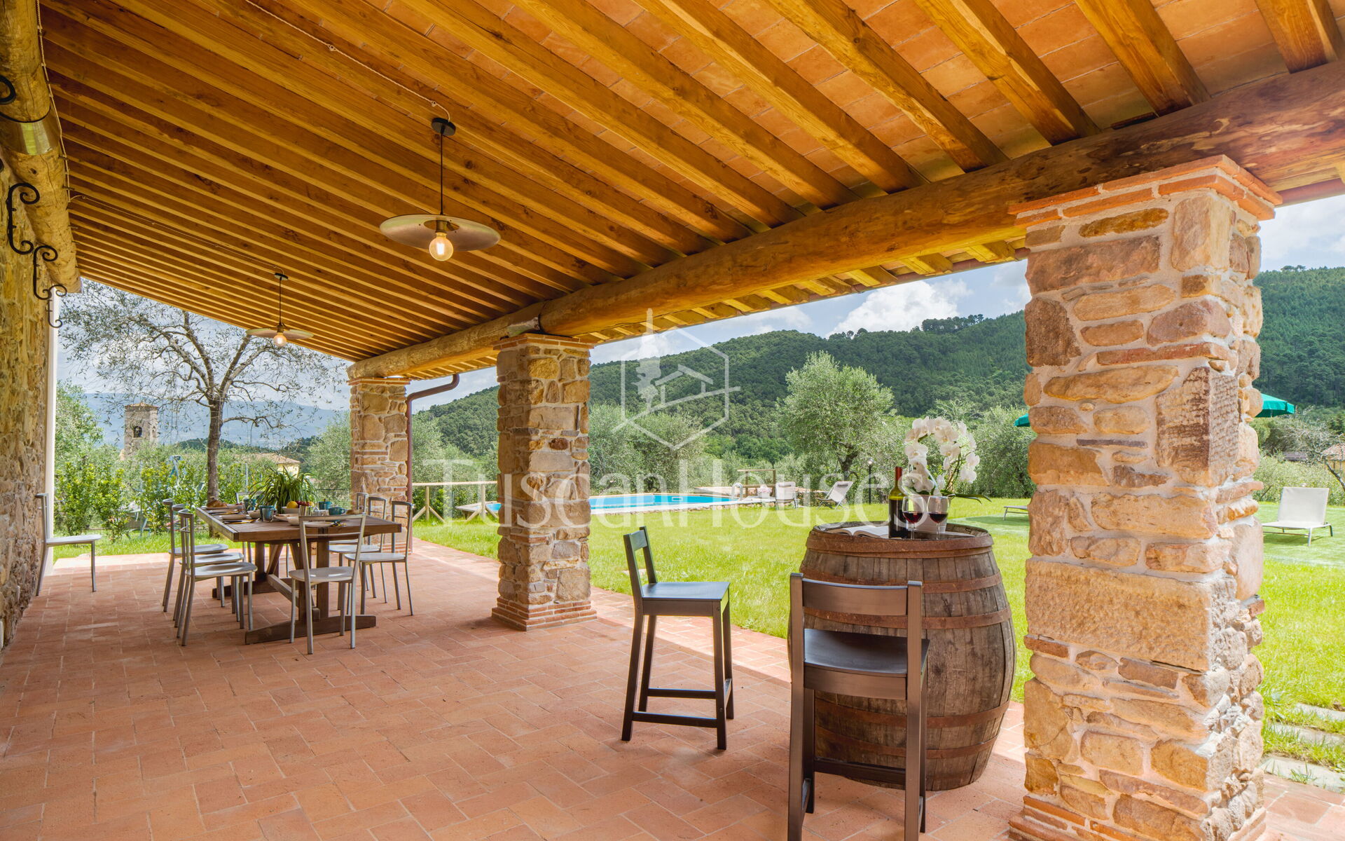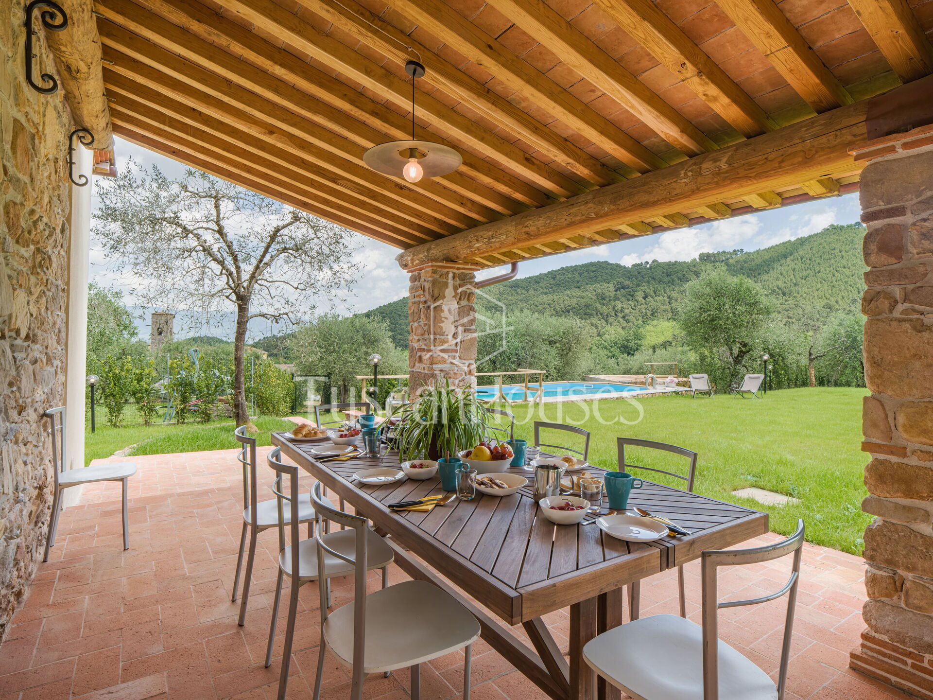 Renovated Tuscan home with private pool, panoramic veranda and fully fenced garden. Perfect for families seeking relaxation, comfort and authentic charm.
