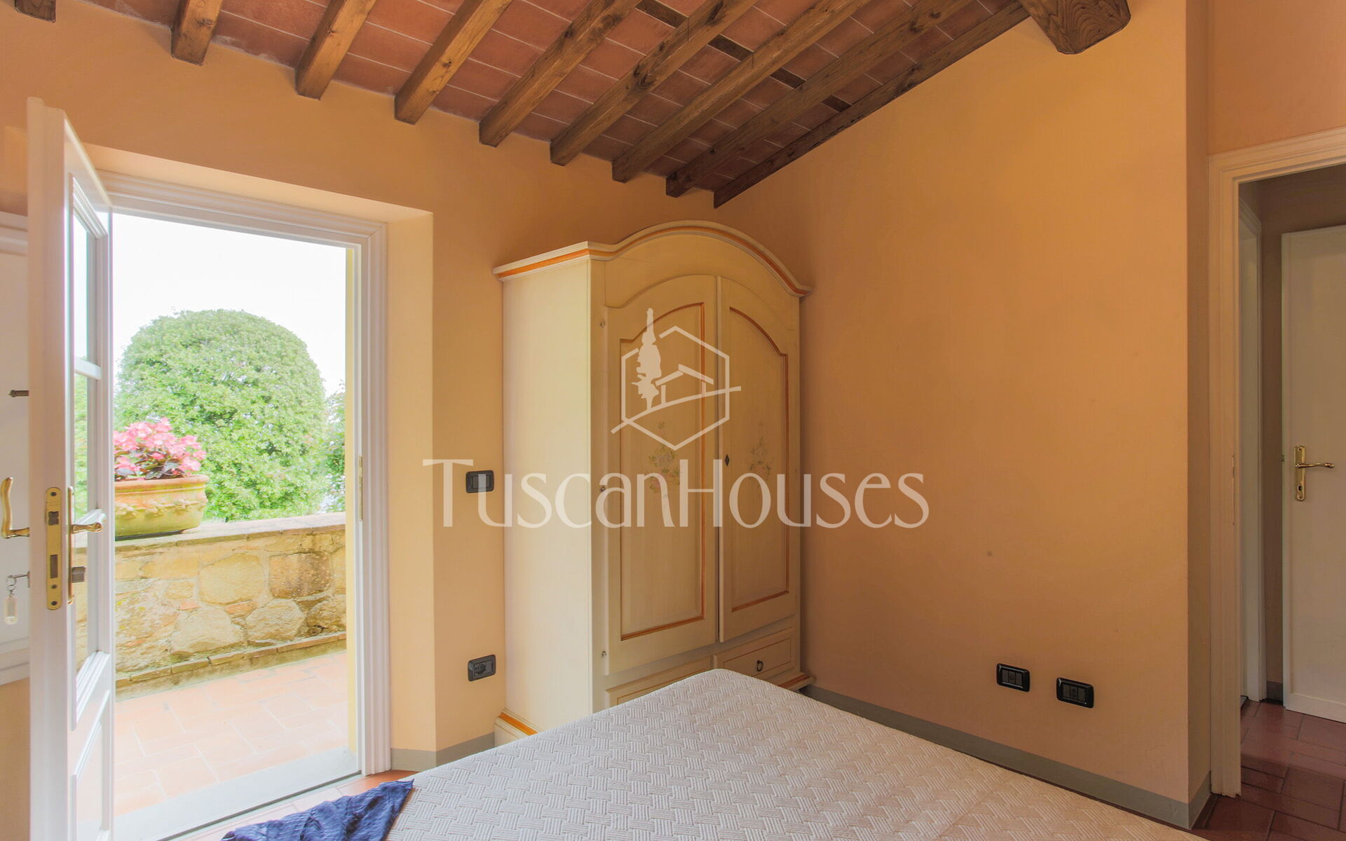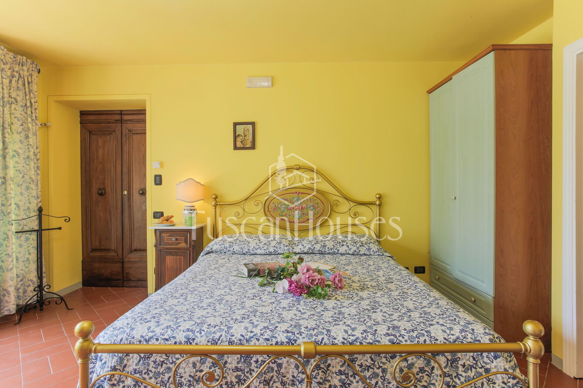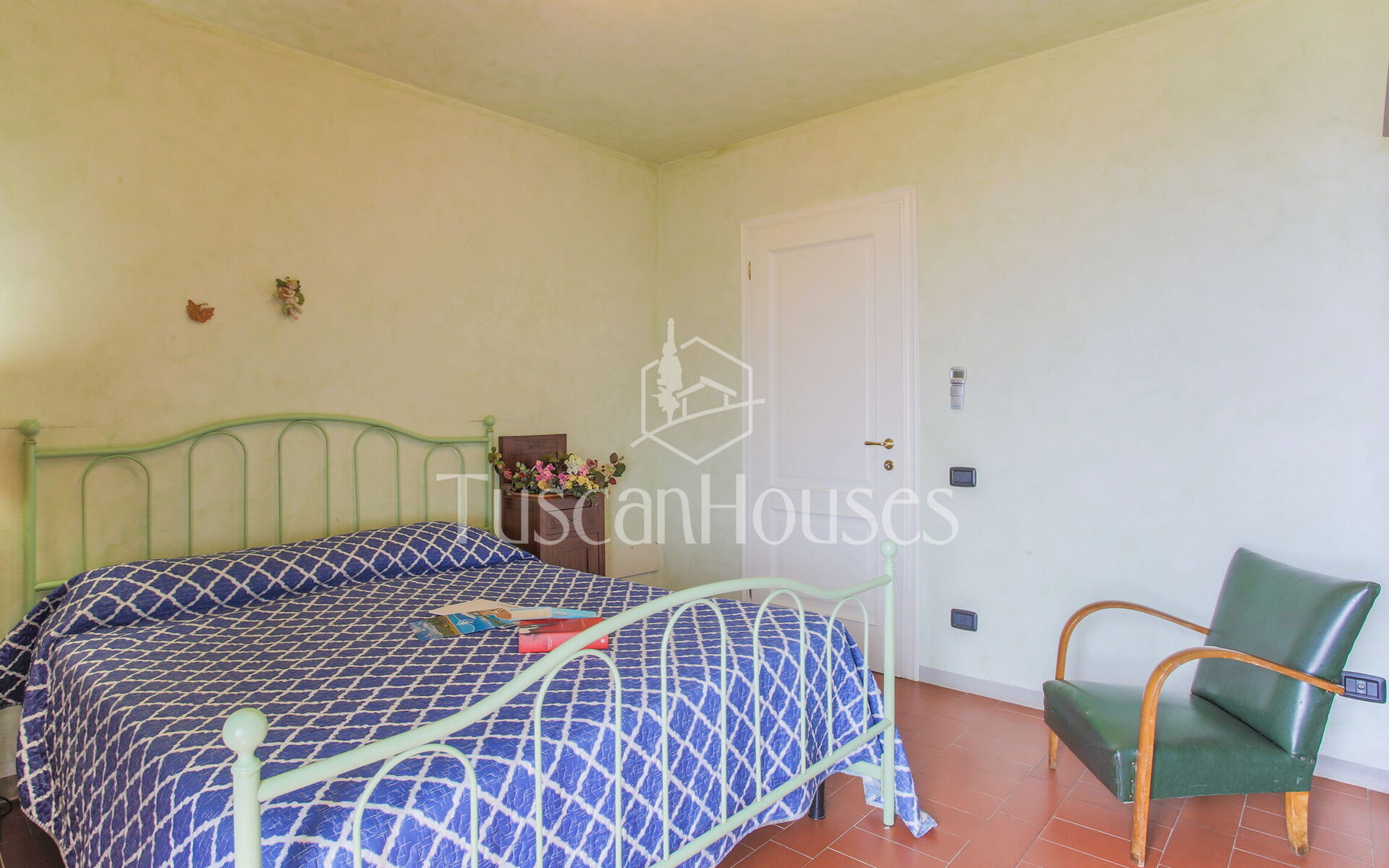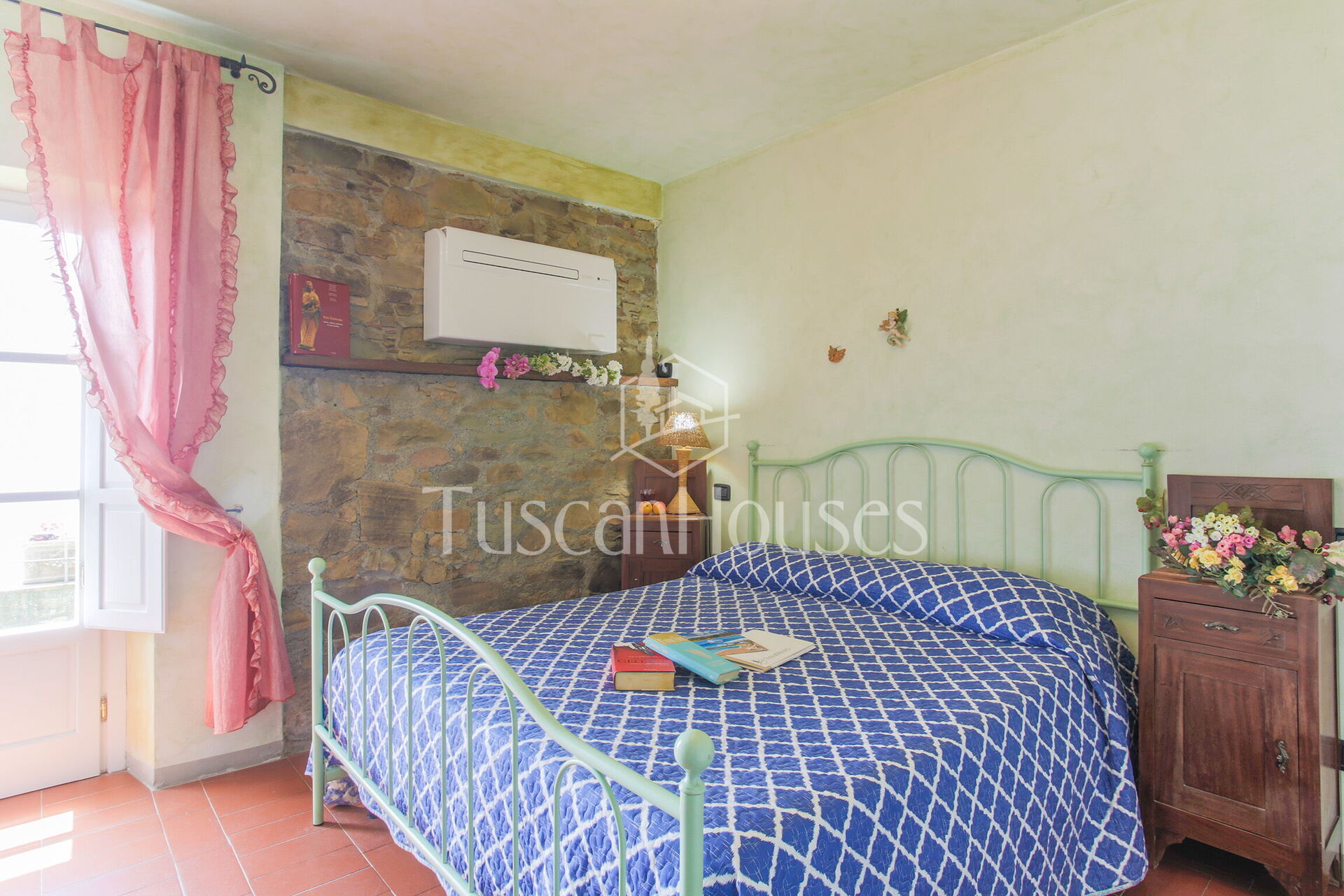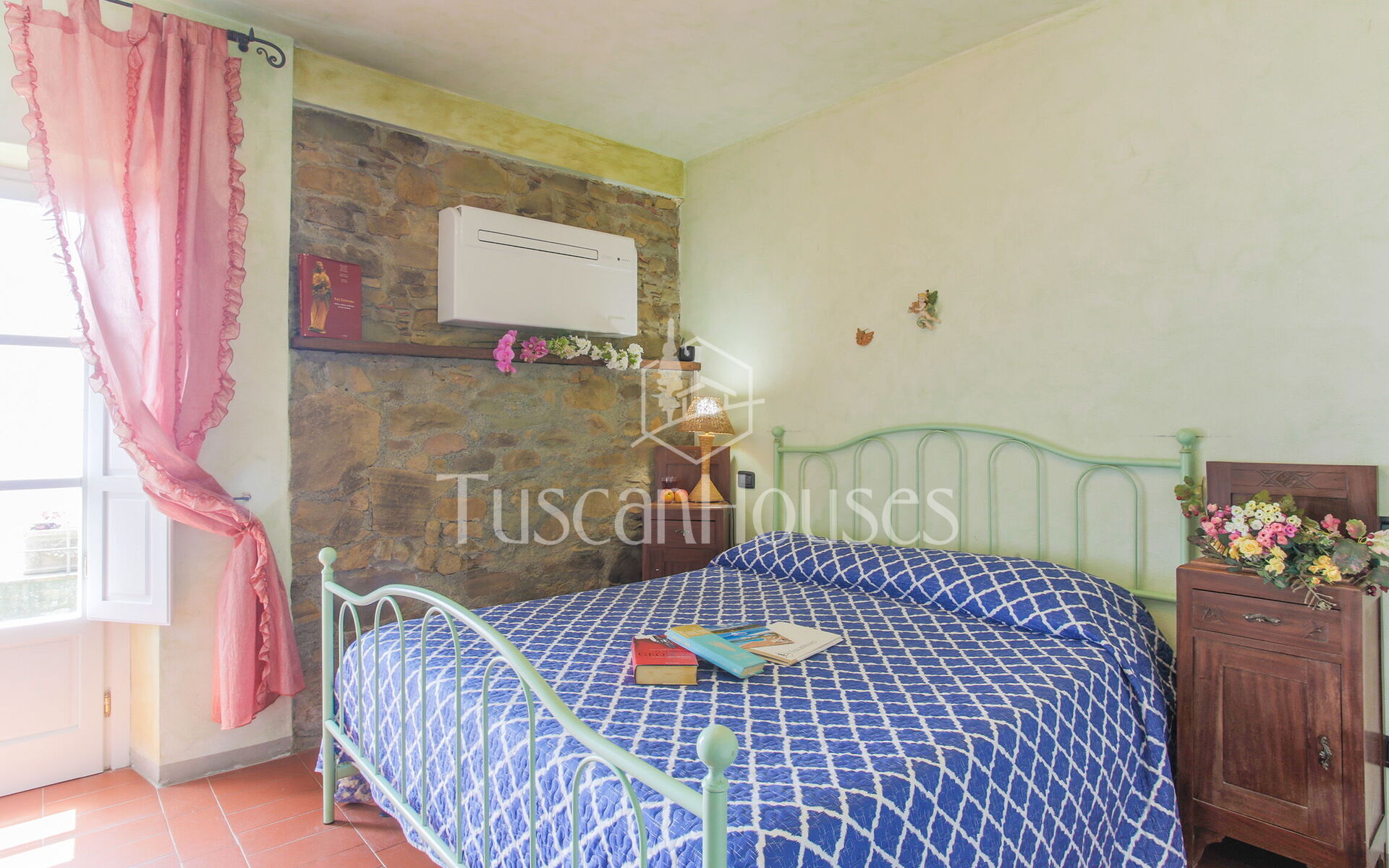 The first floor hosts two double bedrooms, both with en-suite bathrooms with shower. Also on this level, but accessible only from the outside, is an additional apartment featuring a small corner kitchen with a single sofa bed, a double bedroom with a small terrace, and a compact bathroom with shower.