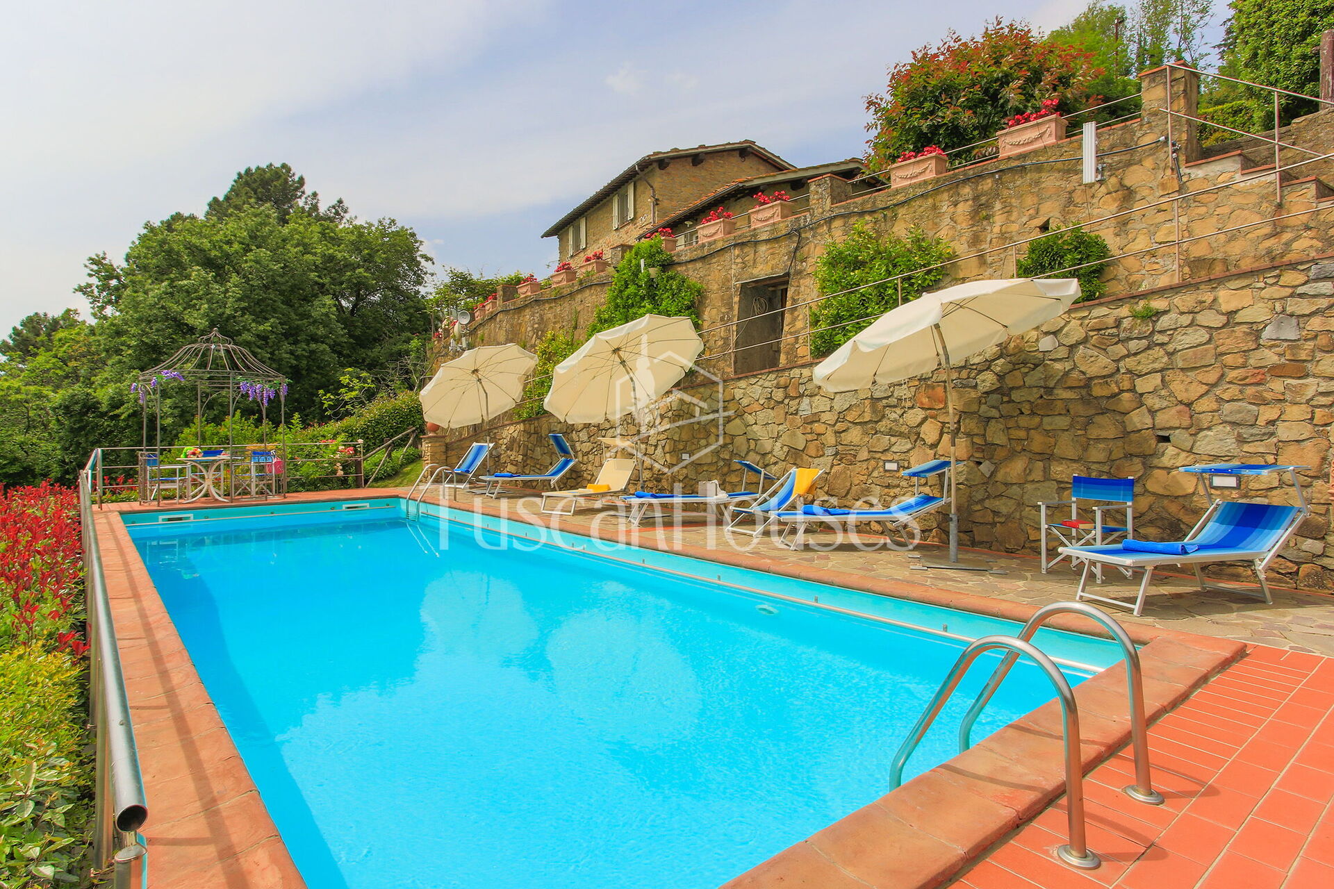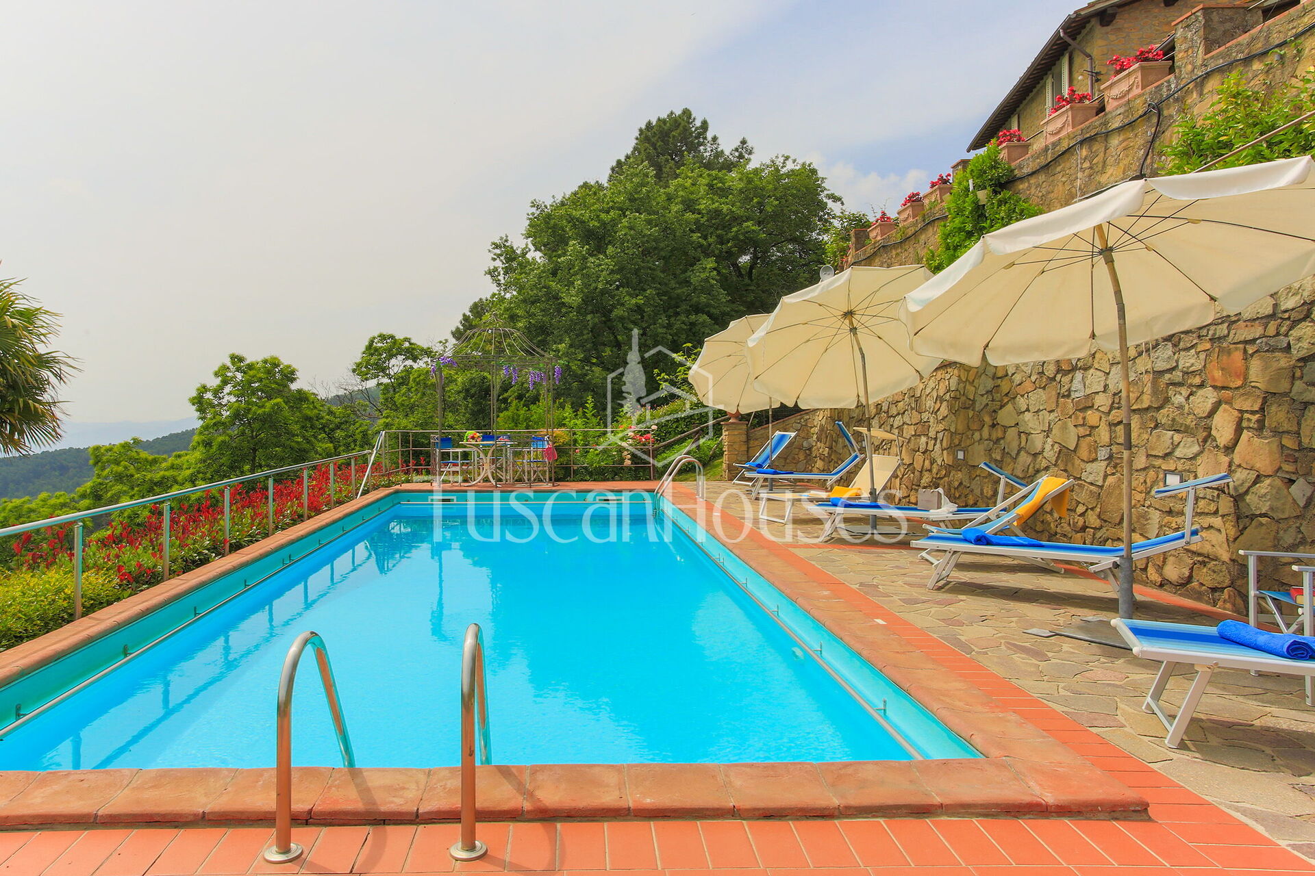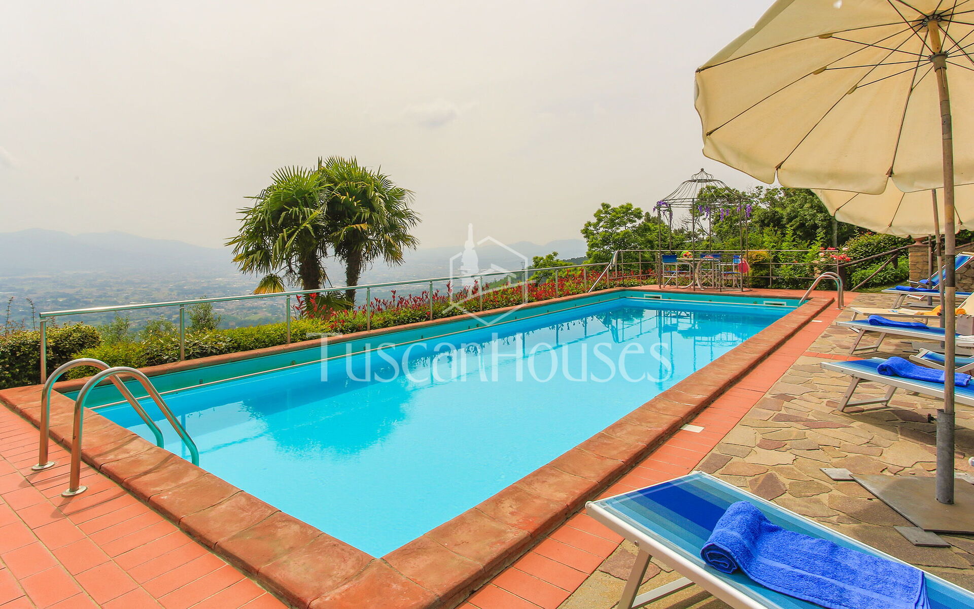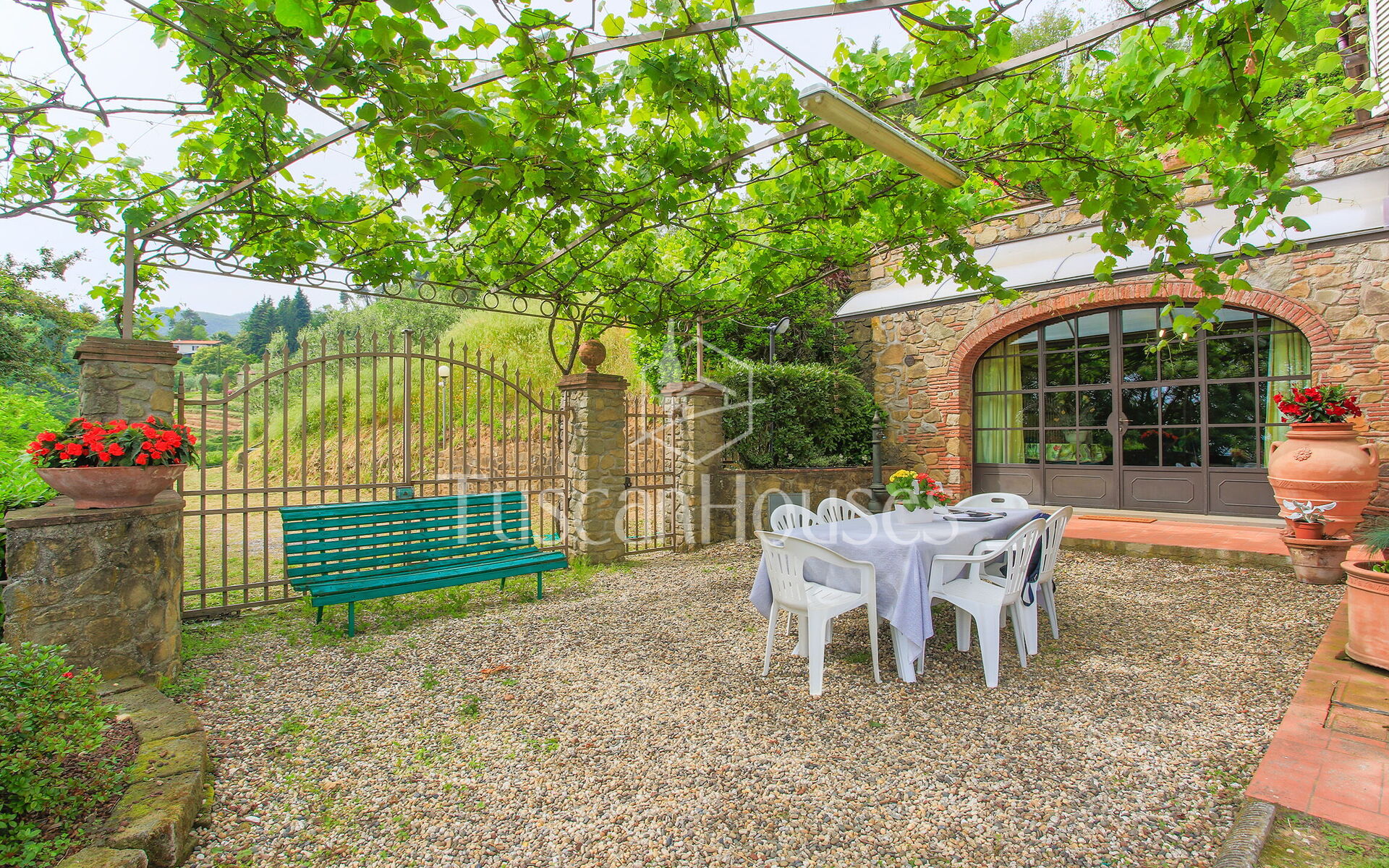 Stone farmhouse with panoramic pool on the Lucca hills, views over Valdinievole, authentic Tuscan style, ideal for groups and relaxation.