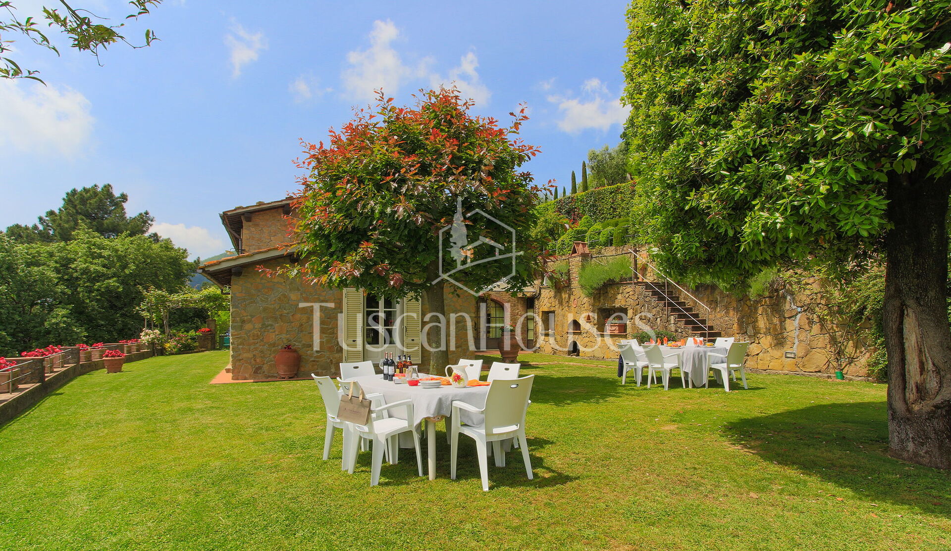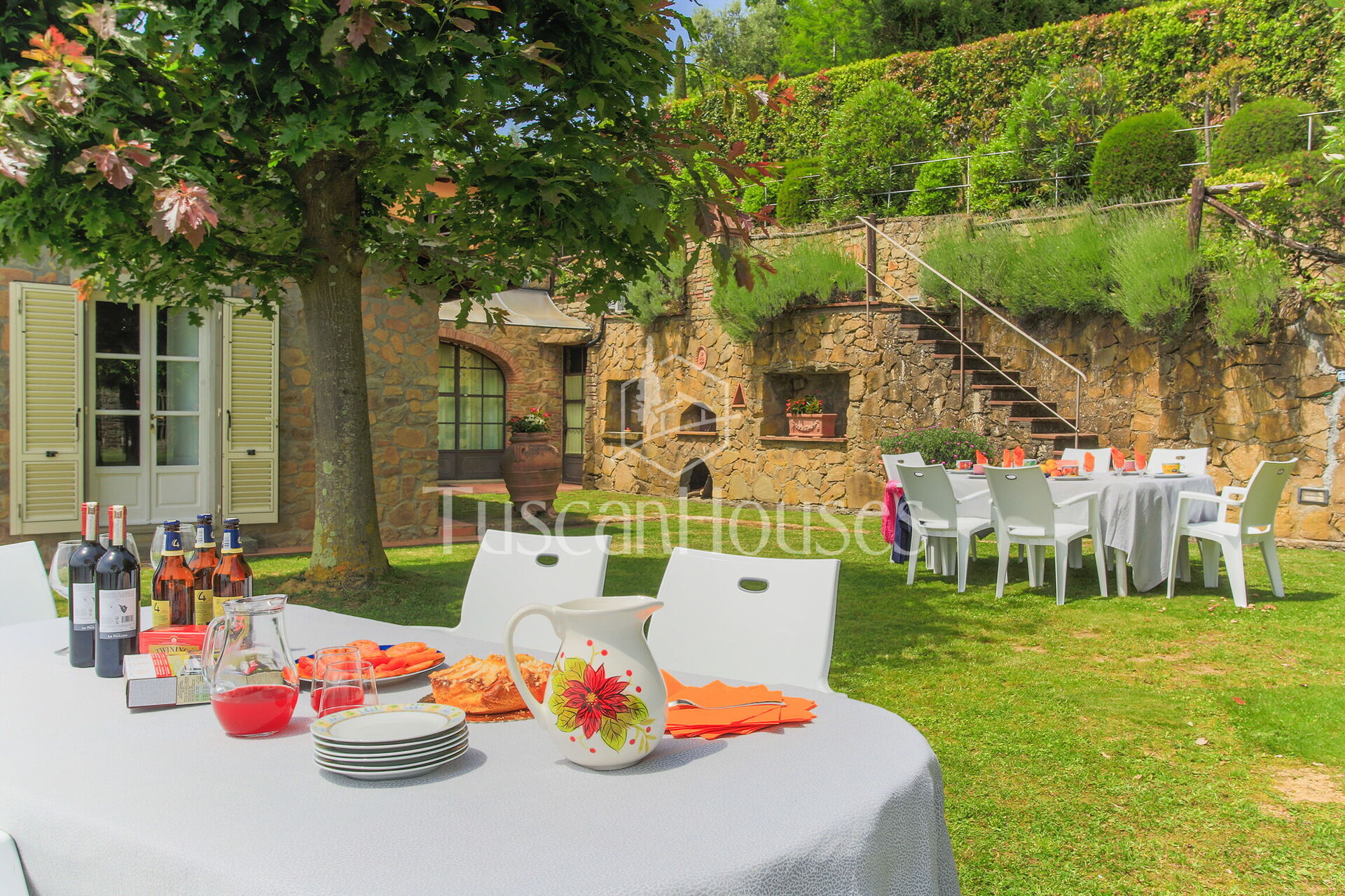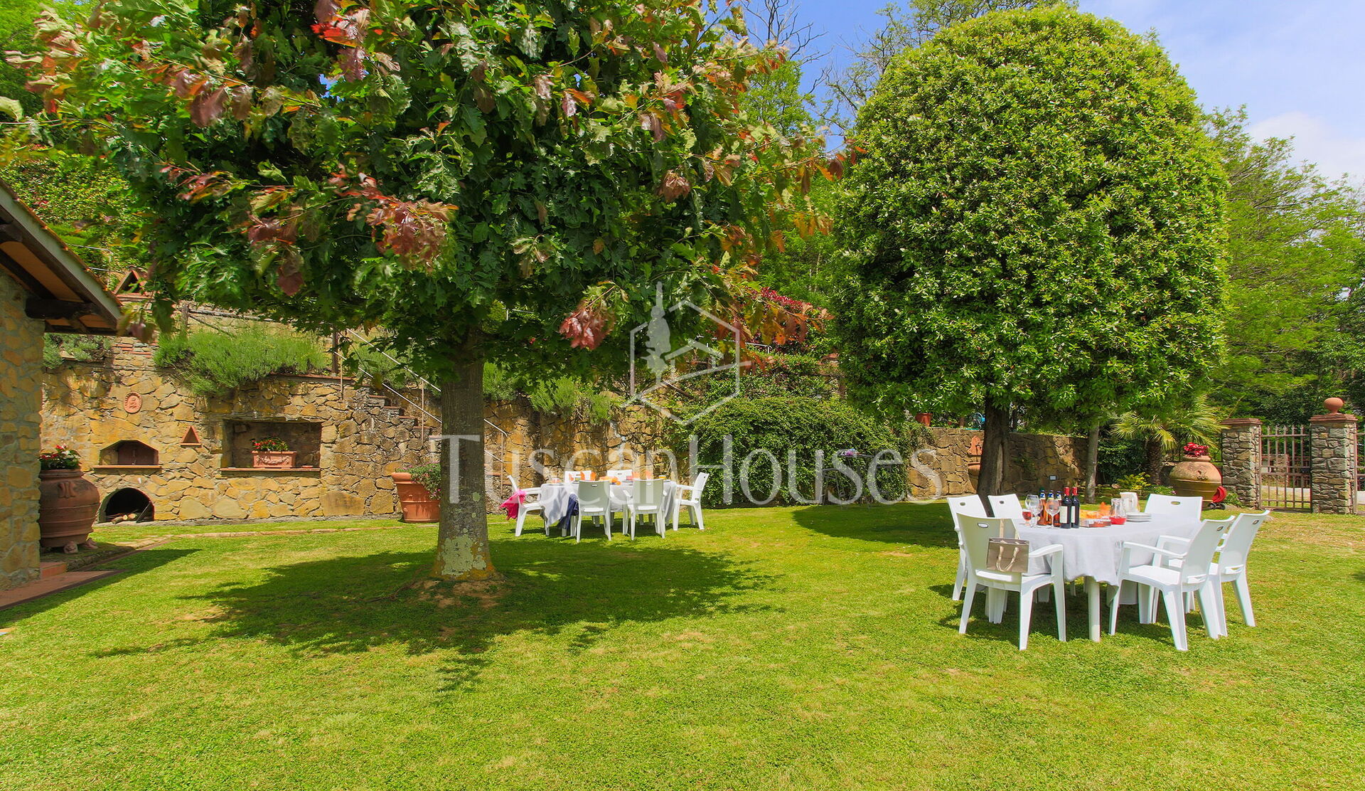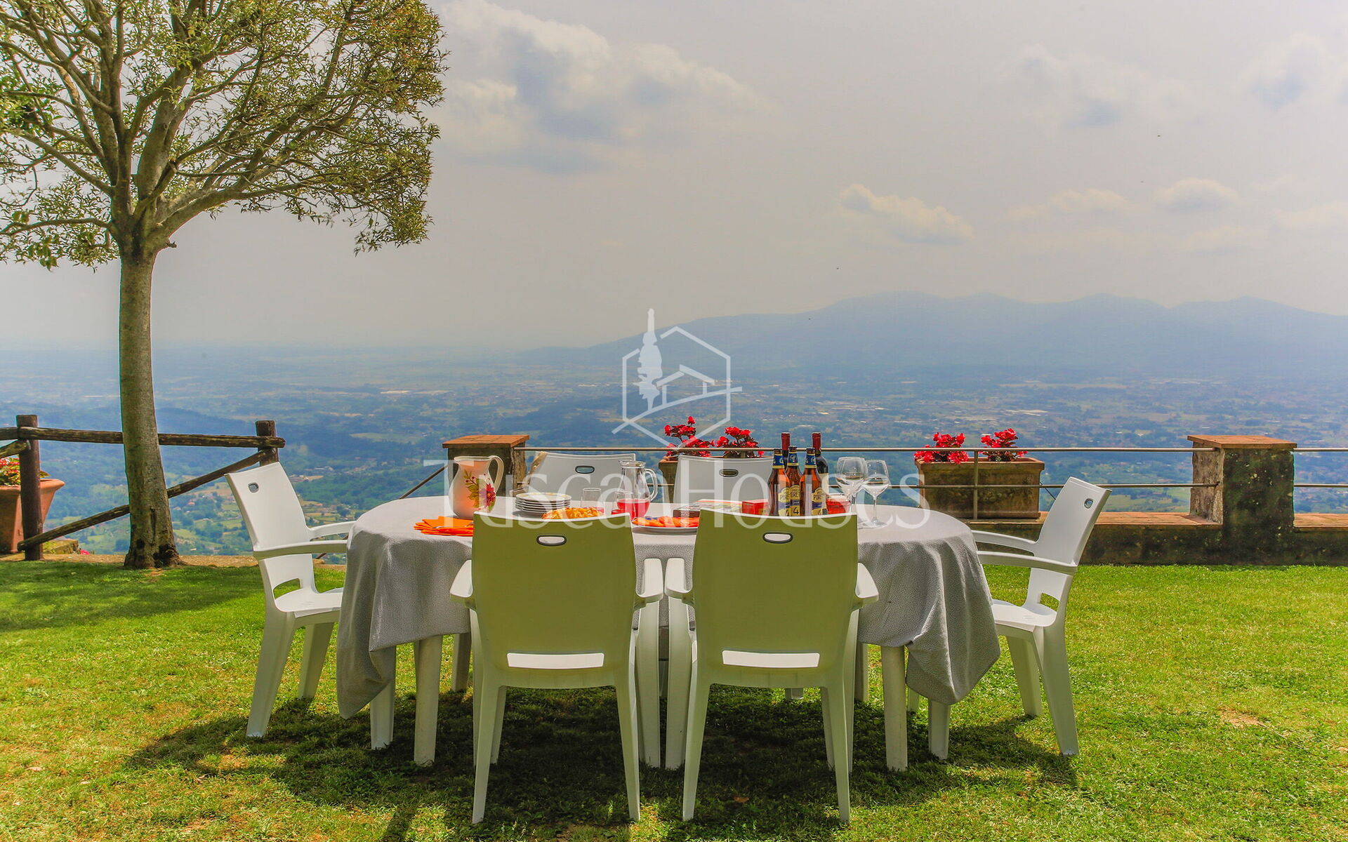 The garden of AltaVista covers a surface of 3000 square metres, most of them as lawn enriched by flowers and ornamental plants. Three are the external dining areas but the main is covered by the American vineyards and connected with the main kitchen on the ground floor. It is possible to use the barbecue and the wood oven. The impressive view that people can enjoy from the garden are infinitive.