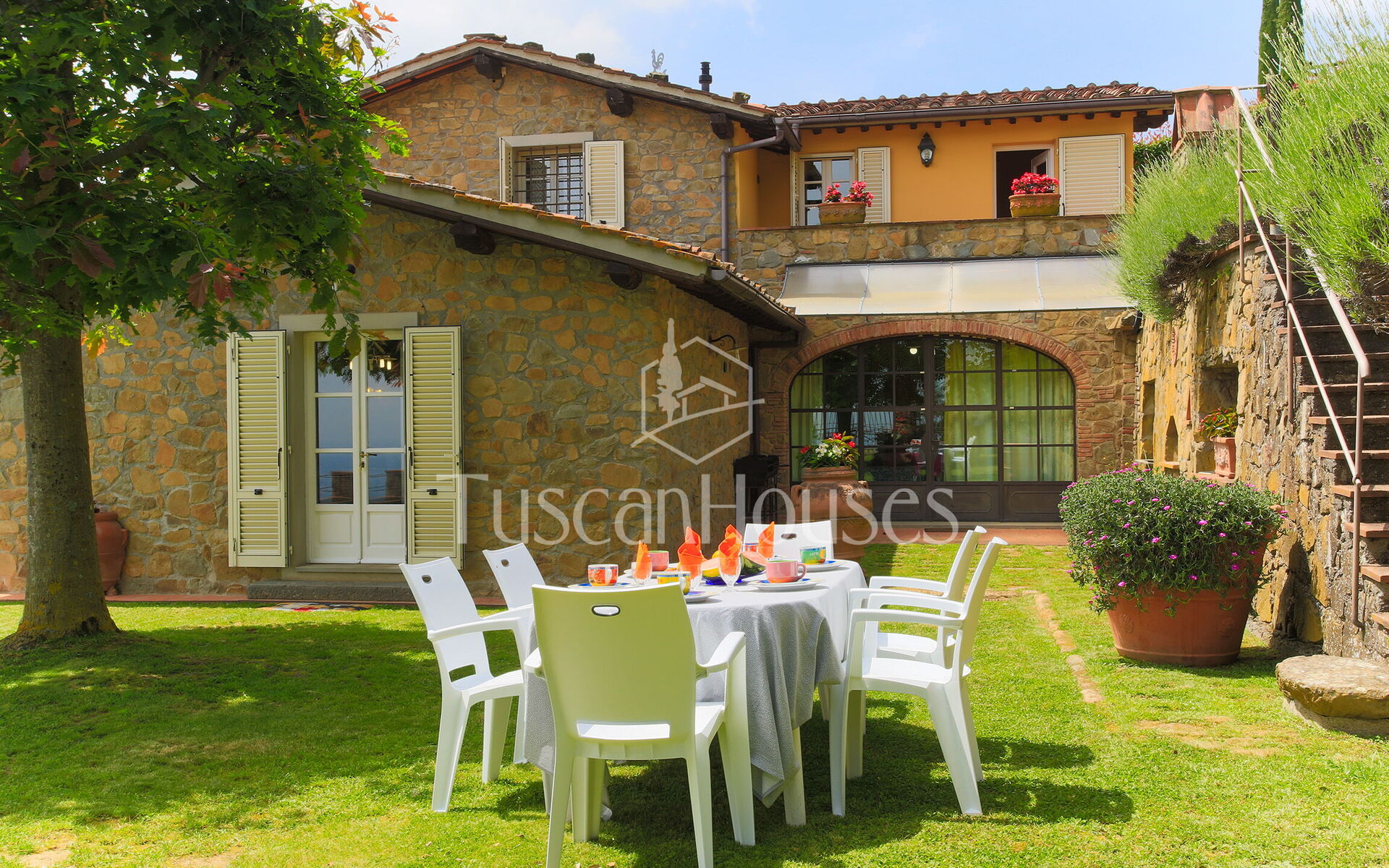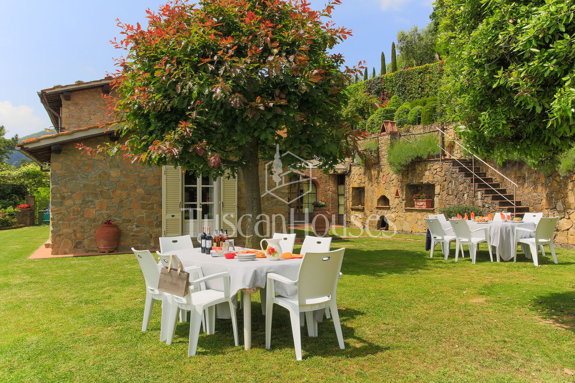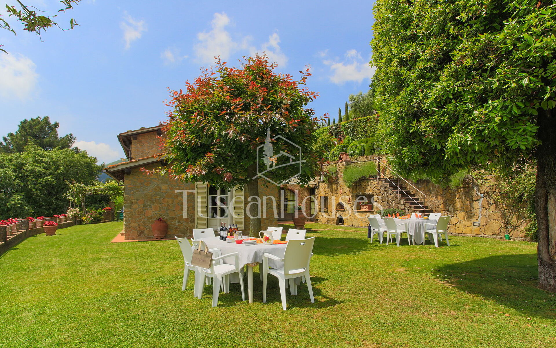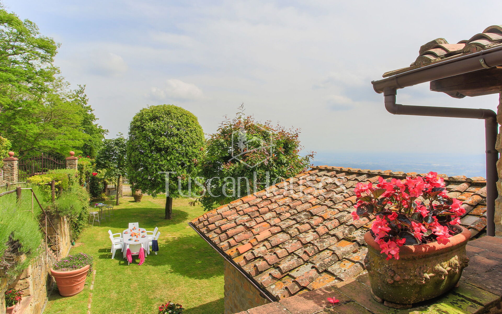 The garden of AltaVista covers a surface of 3000 square metres, most of them as lawn enriched by flowers and ornamental plants. Three are the external dining areas but the main is covered by the American vineyards and connected with the main kitchen on the ground floor. It is possible to use the barbecue and the wood oven. The impressive view that people can enjoy from the garden are infinitive.