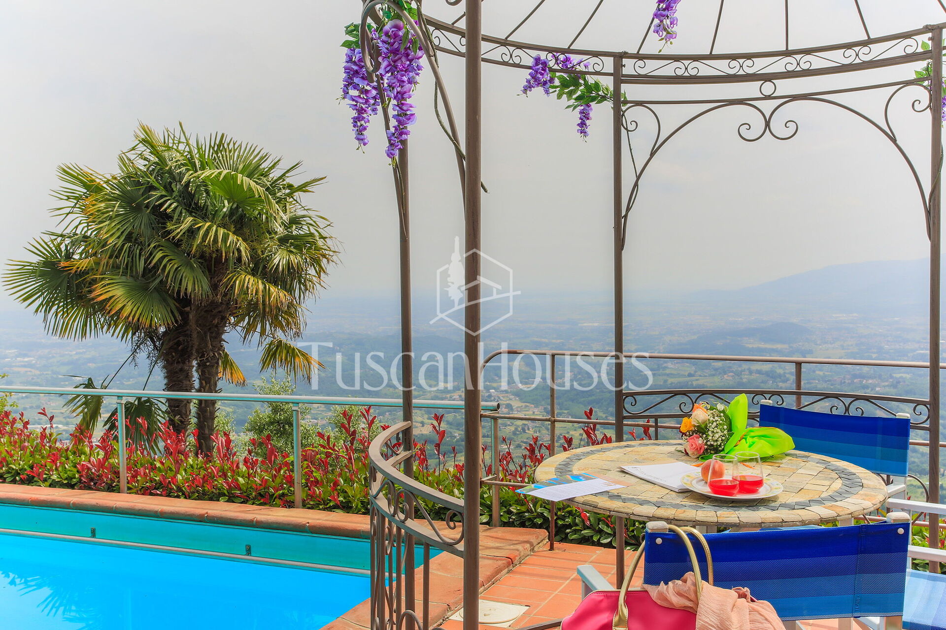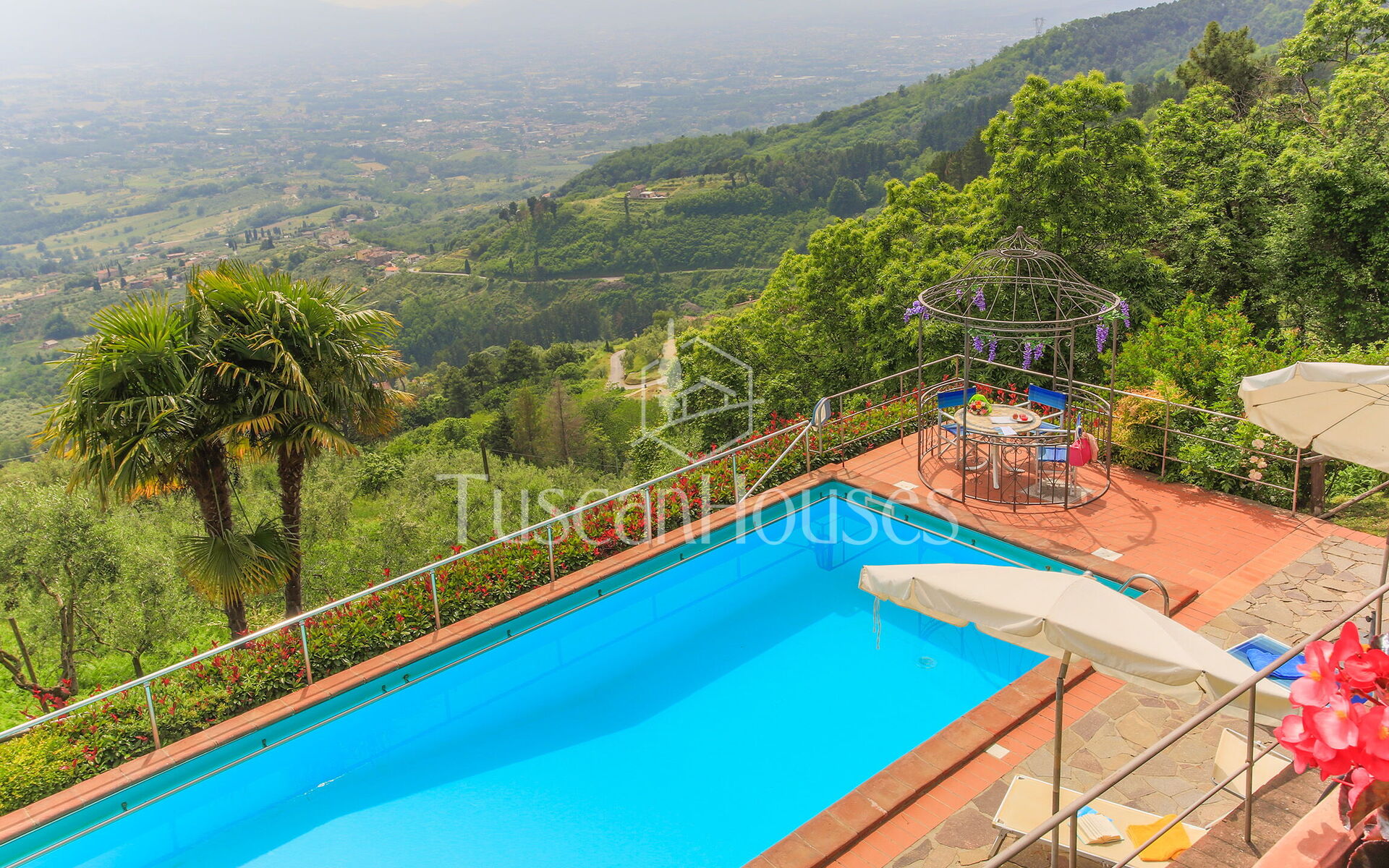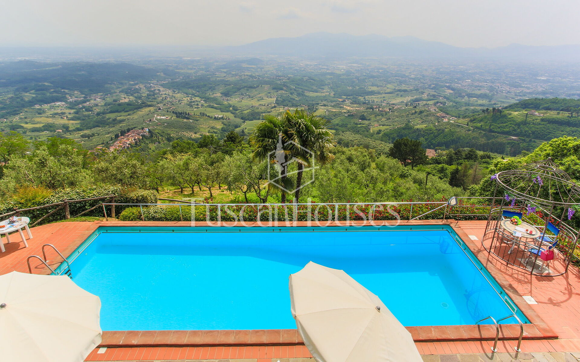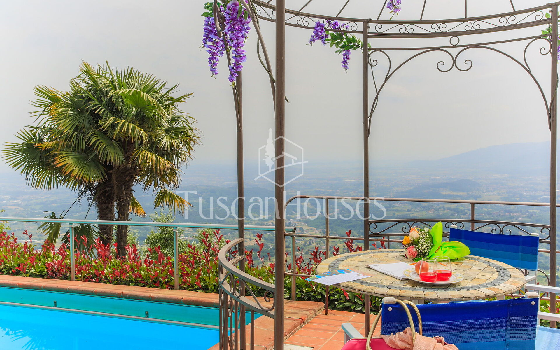 This splendid farmhouse called AltaVista was in the origin a little “metato” used by the local farmers as storage and then as stable. The house has been renovated and enlarged from the actual owners who created a splendid house with a breath-taking view on the Lucca area and the Valdinievole. The house is built in stone from the outdoors, and inside reflects the typical Tuscan house with the floors are made of terra “cotto”, the ceilings of small beams and tiles in “terra cotto” and the staircase in stone. Casa AltaVista measures about 250 square meters and internally is set up of three apartments of which two joinable. Internally the furniture brings back to the antique flavors but the house is itself very comfortable in order to have a relaxing and private holiday. AltaVista is set on one of the most famous hills of the Lucca area (380 m asl), both for the quality of the air as for view. The swimming pool is set on a panoramic terrace from which you can enjoy an unforgettable view.