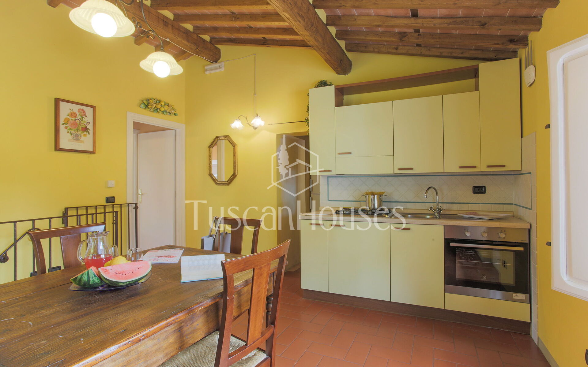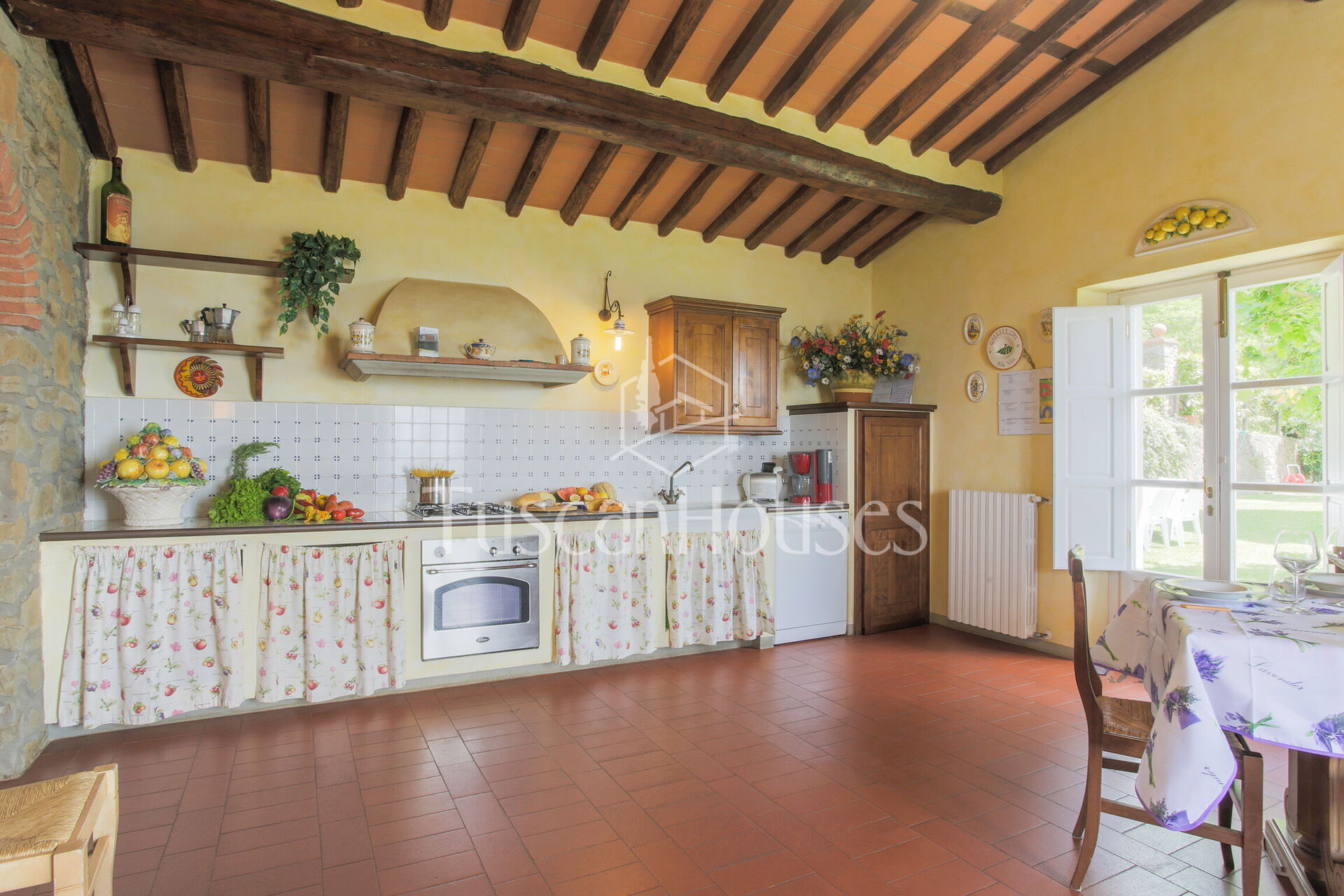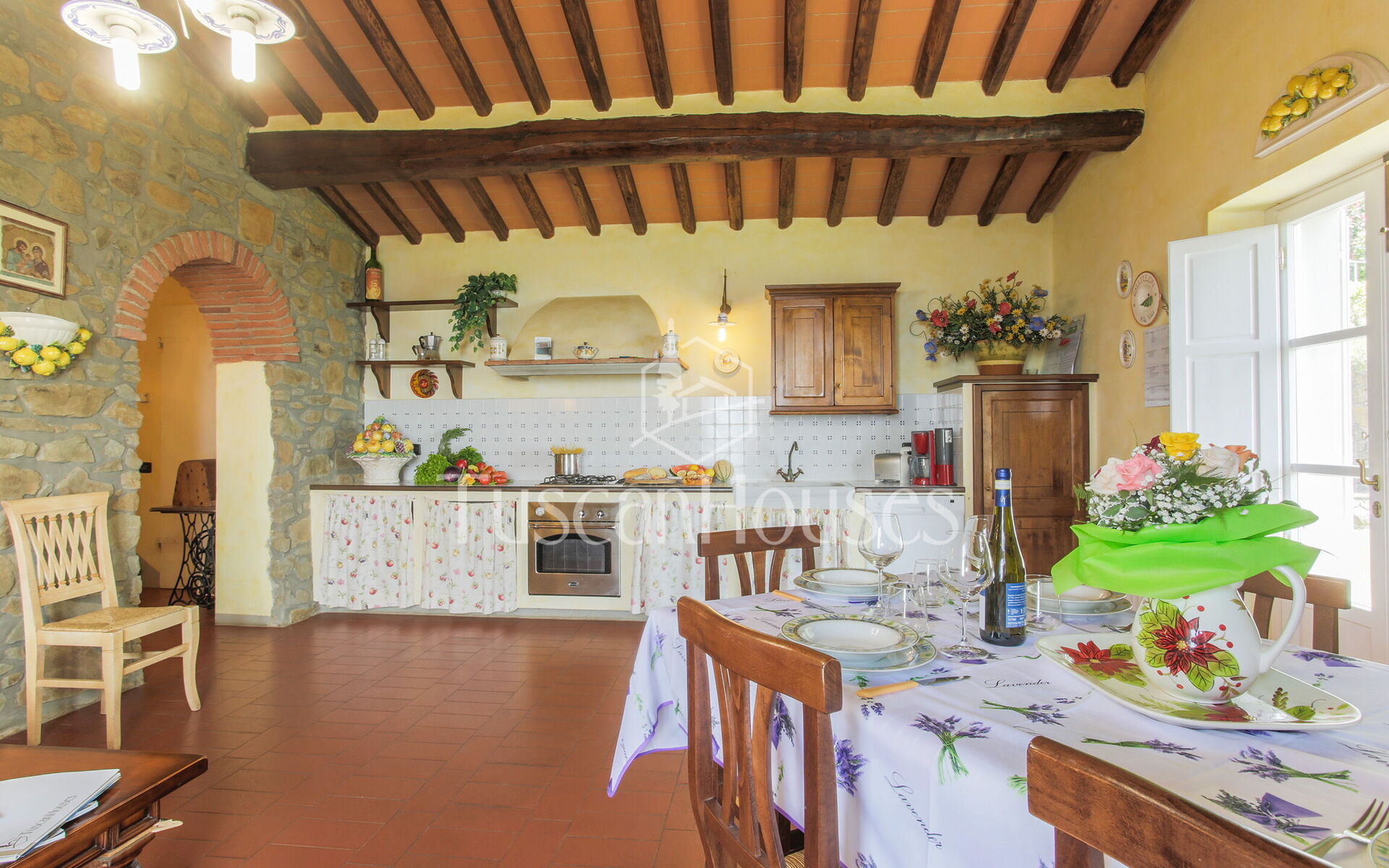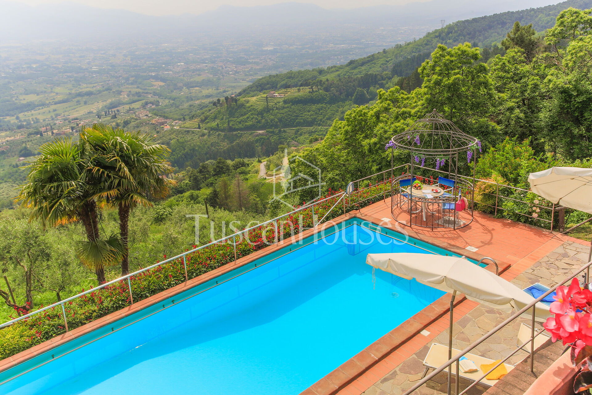 This splendid farmhouse called AltaVista was in the origin a little “metato” used by the local farmers as storage and then as stable. The house has been renovated and enlarged from the actual owners who created a splendid house with a breath-taking view on the Lucca area and the Valdinievole. The house is built in stone from the outdoors, and inside reflects the typical Tuscan house with the floors are made of terra “cotto”, the ceilings of small beams and tiles in “terra cotto” and the staircase in stone. Casa AltaVista measures about 250 square meters and internally is set up of three apartments of which two joinable. Internally the furniture brings back to the antique flavors but the house is itself very comfortable in order to have a relaxing and private holiday. AltaVista is set on one of the most famous hills of the Lucca area (380 m asl), both for the quality of the air as for view. The swimming pool is set on a panoramic terrace from which you can enjoy an unforgettable view.