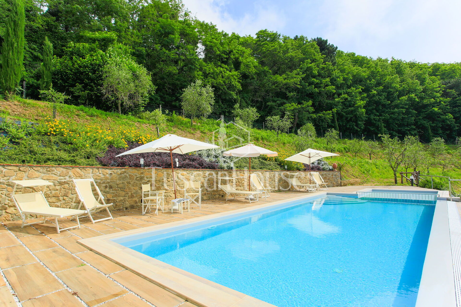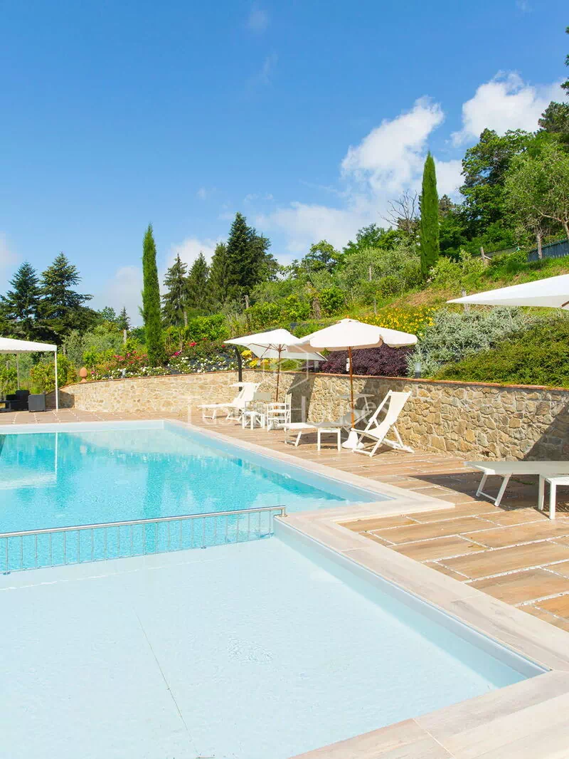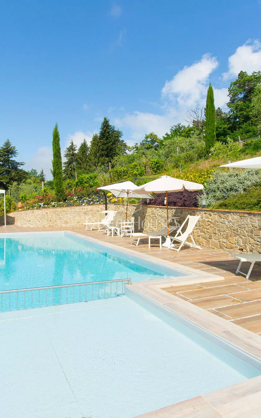 The swimming pool is reachable through 49 steps and has a rectangular shape with salted depuration and measures about 11 x 4,5 meters with a fixed depth of 1.40 cm. The entrance in pool is facilitated by a Roman stair of 6 steps. There is also a children pool which measures 3 x 3 metres with a fixed depth of 45 cm It has salt depuration.