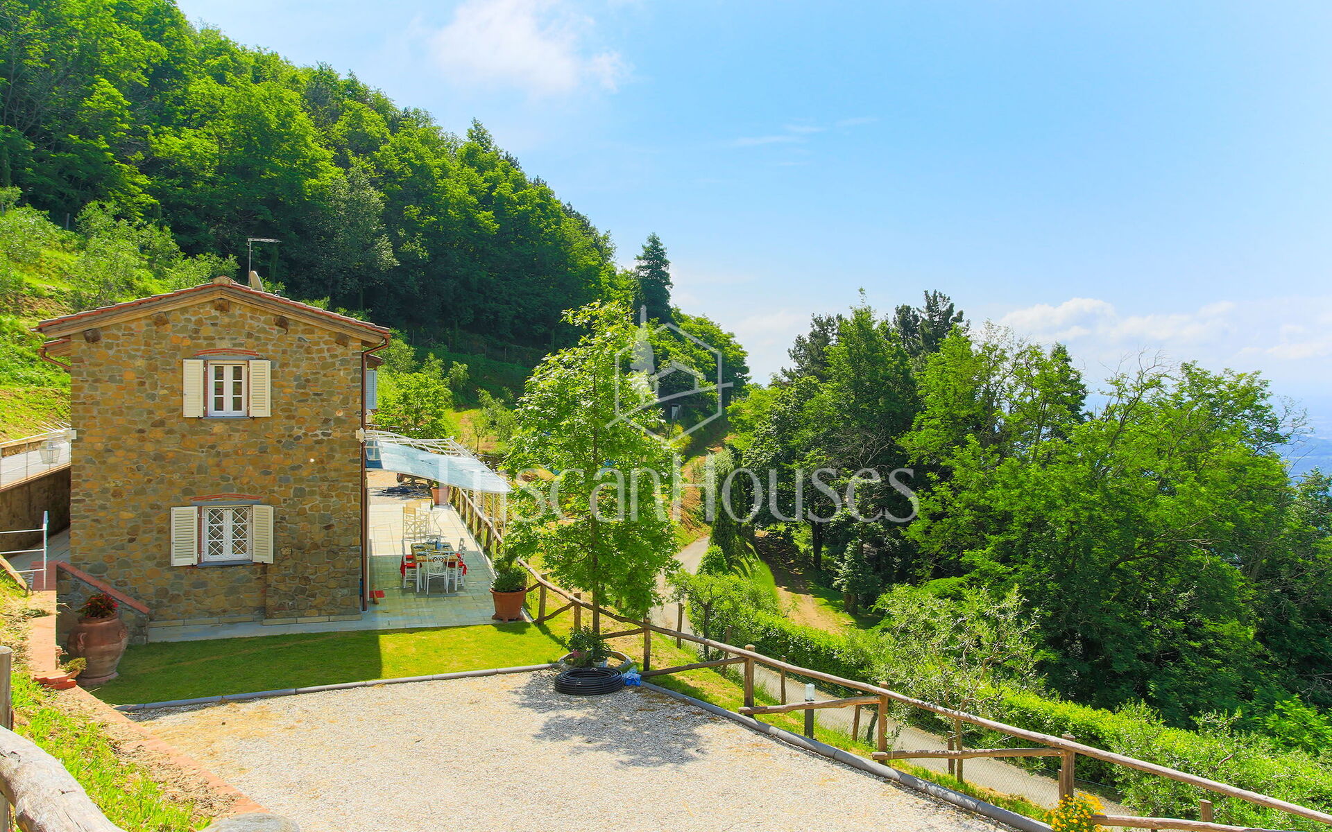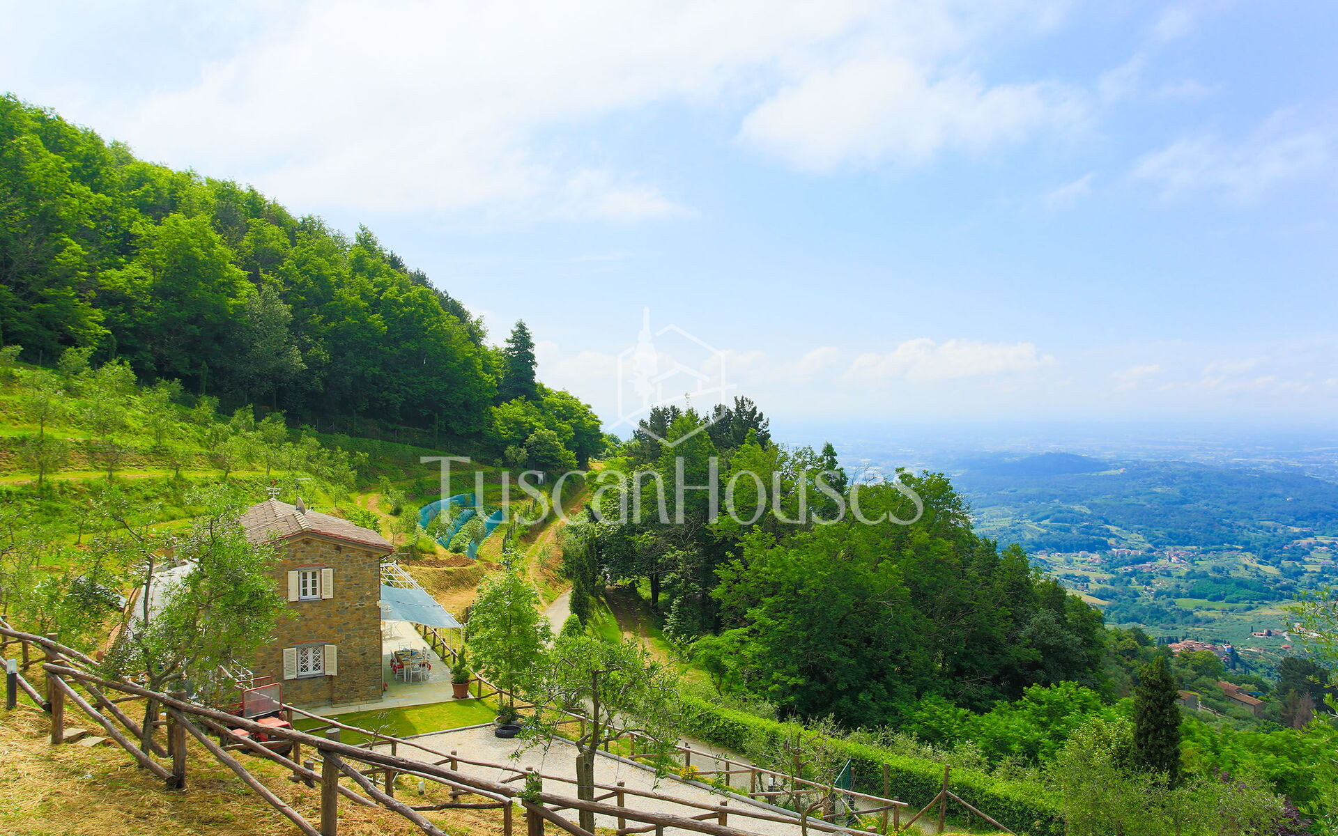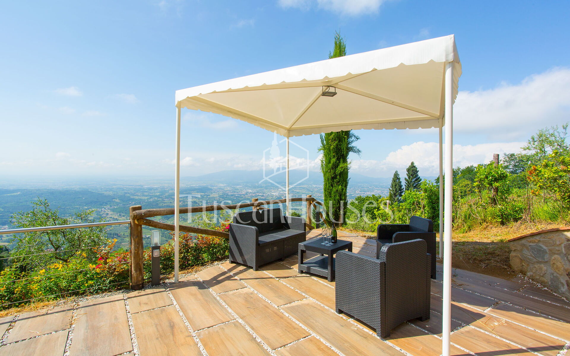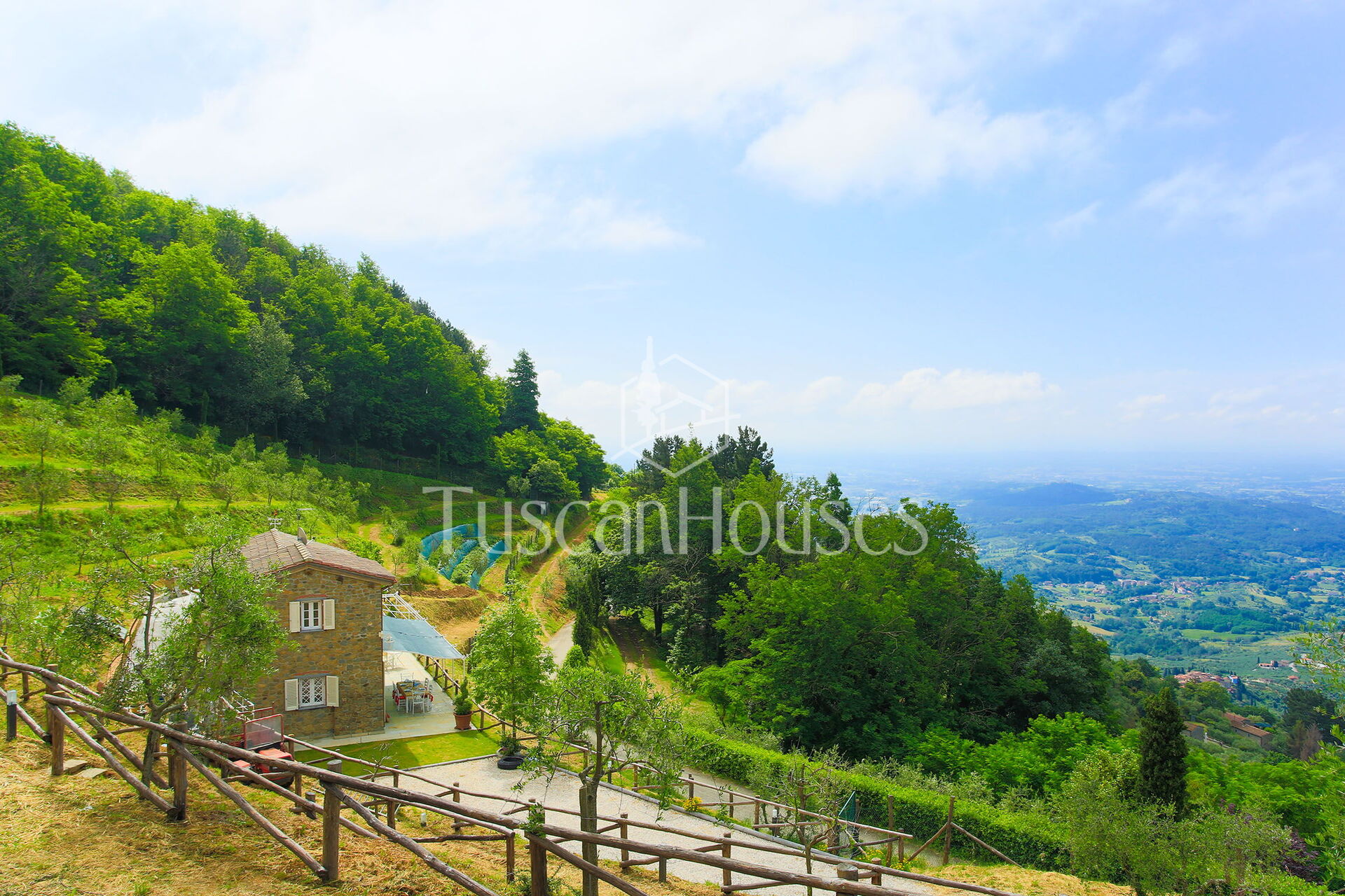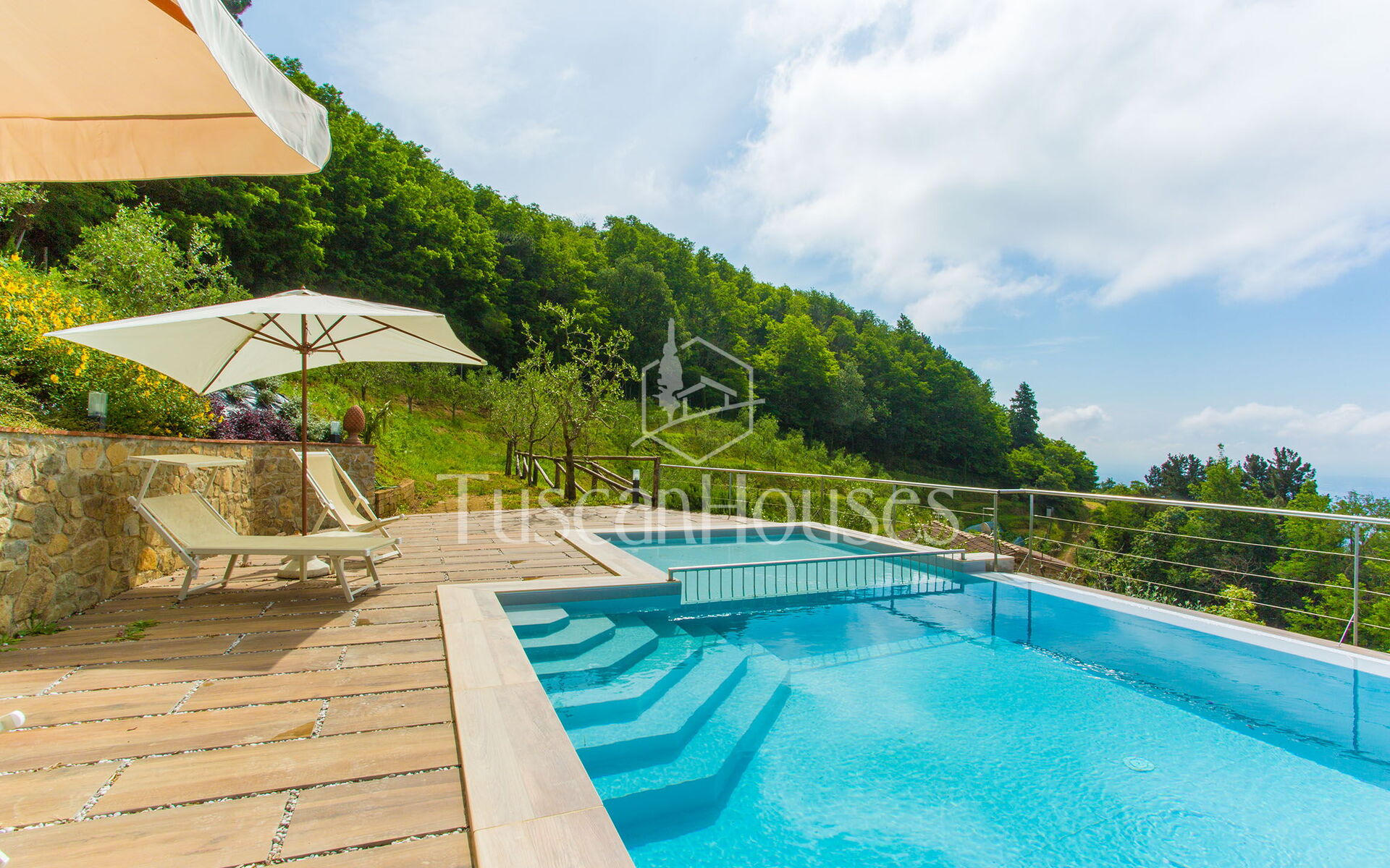 Panorama is a charming stone villa with panoramic swimming pool in the hills of Lucca, ideal for families, offering breathtaking views and authentic Tuscan style.