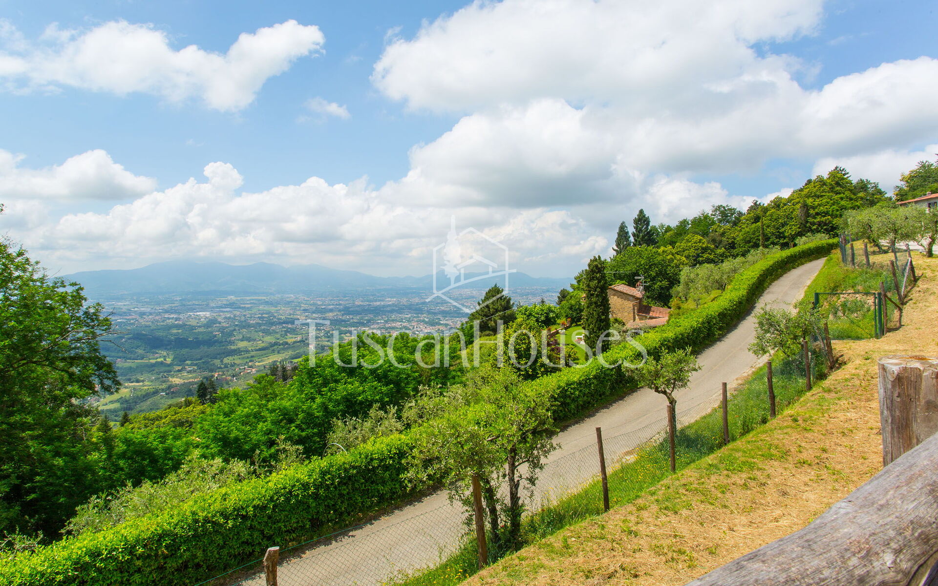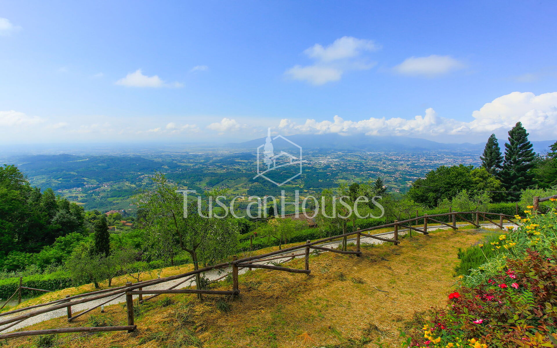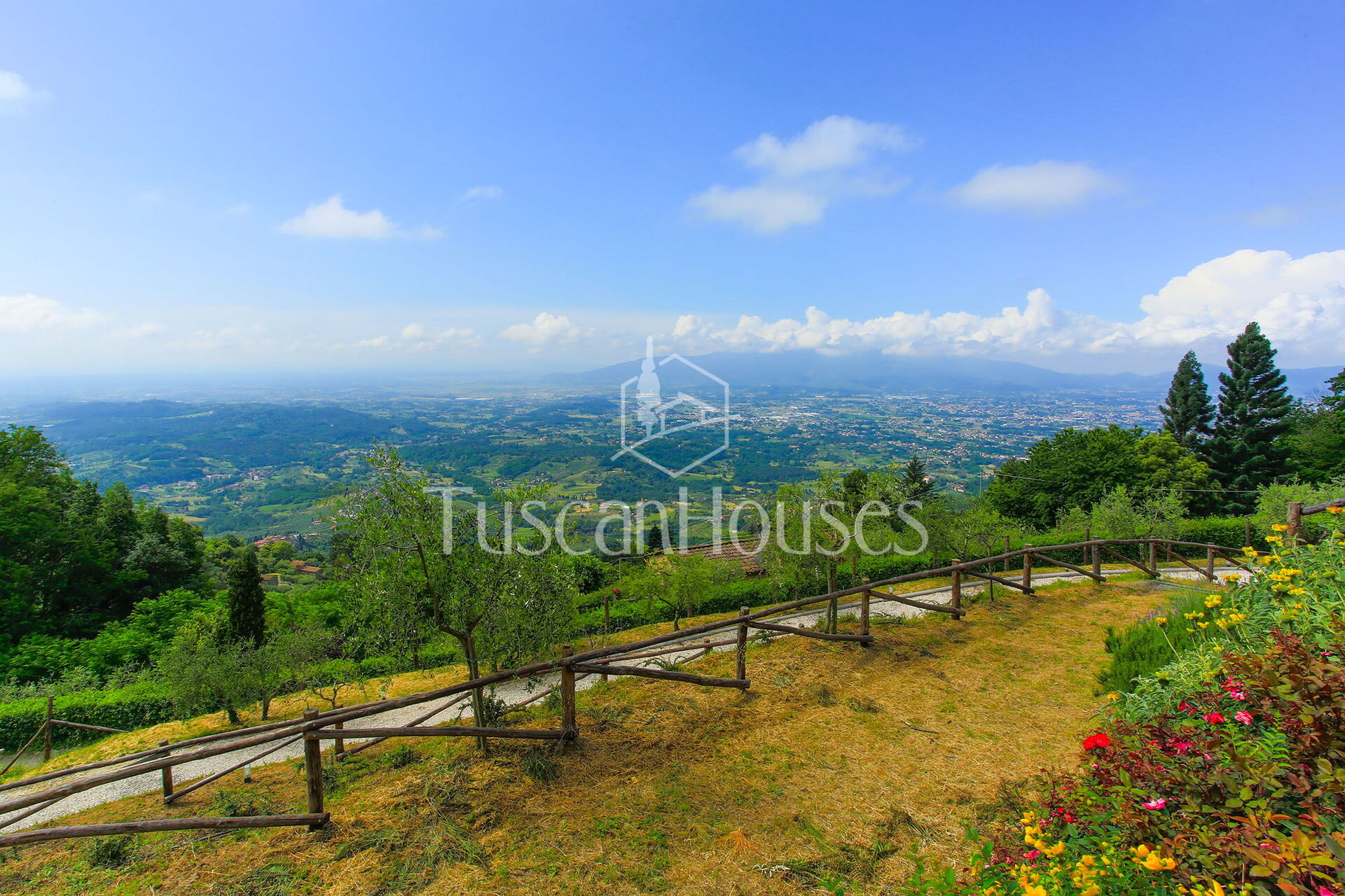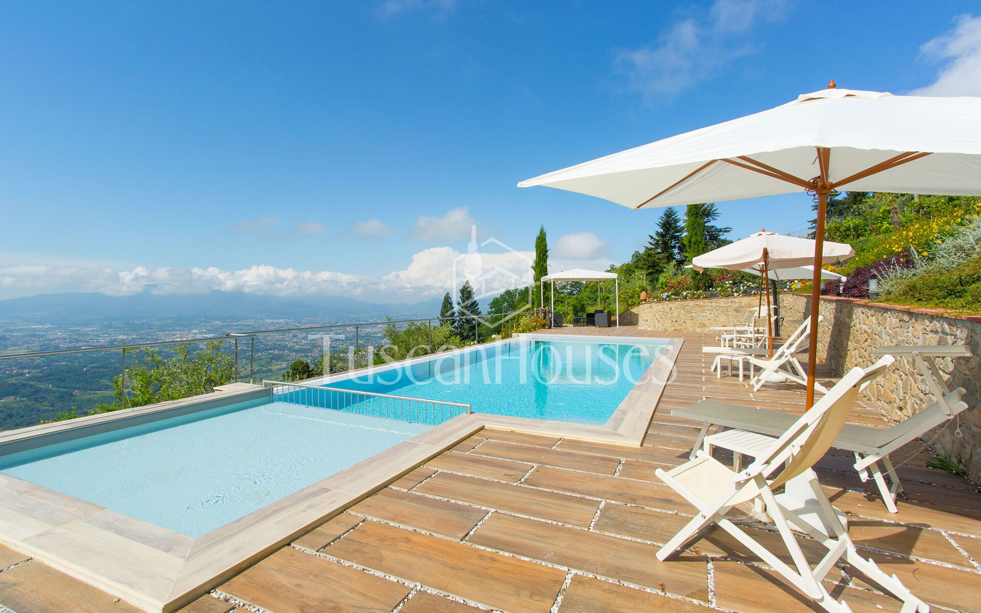 PANORAMA is splendid restored barn called Panorama was in the origin a little “metato” used by the local farmers as storage and then as stable. The house has been renovated and enlarged by the actual owners and has a breath-taking view on the Lucca area and the Valdinievole. The house is built in stone from the outdoors, and inside reflects the typical Tuscan house with the ceilings of small beams and tiles in “terra cotto” and the staircase in stone. Casa Panorama measures about 140 square metres and internally is set up on two floors. Panorama is set on one of the most famous hills of the Lucca area, both for the quality of the air as for the views. The swimming pool is set on a panoramic terrace from which you can enjoy an unforgettable view. Please note that Panorama distances only 500 metres from Altavista and can be an ideal solution for two families.