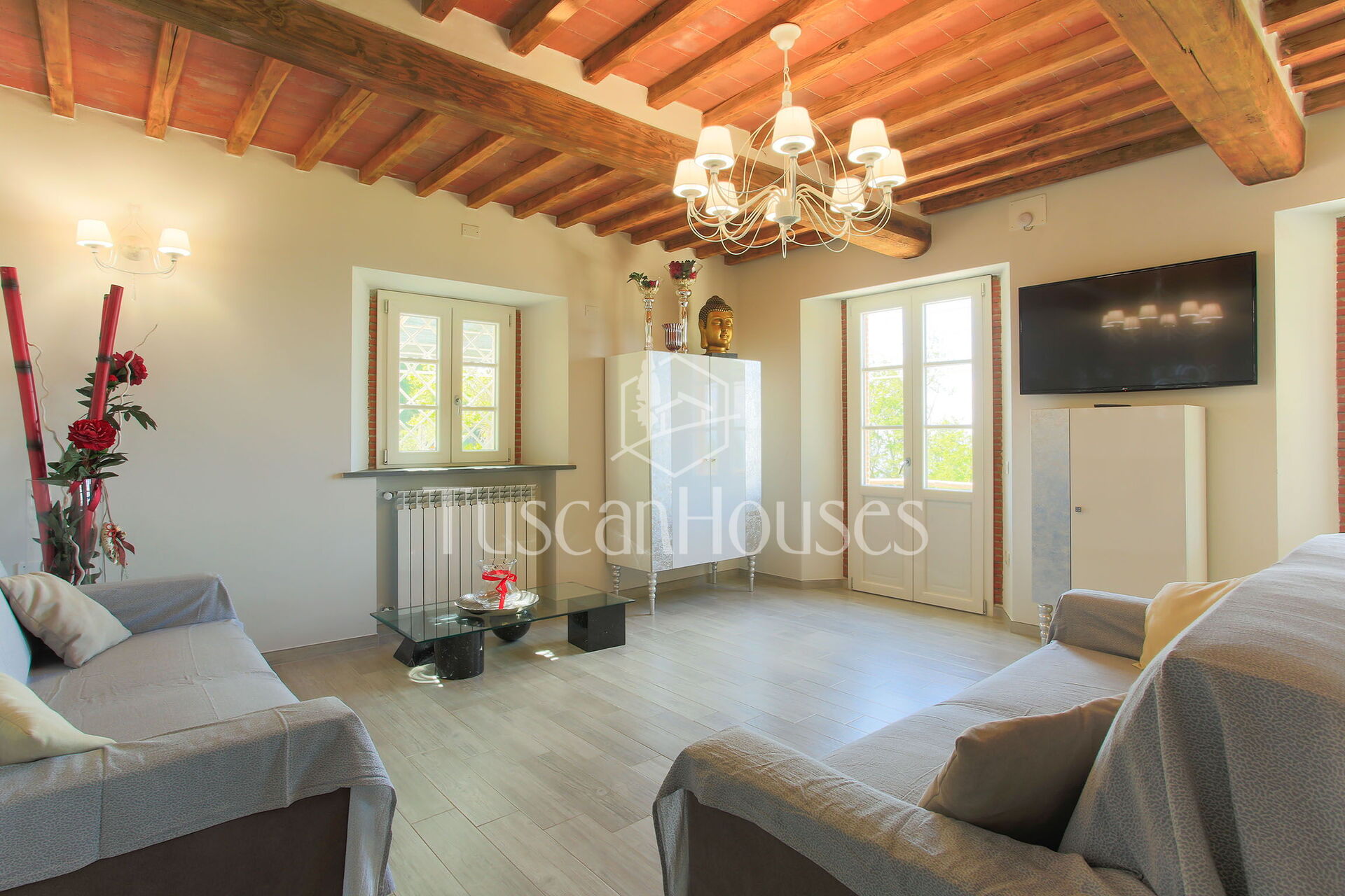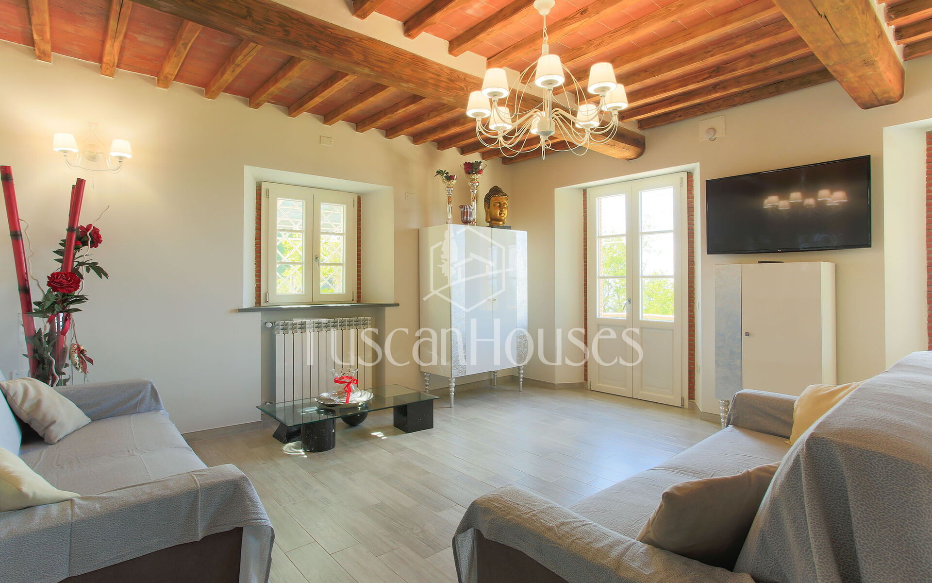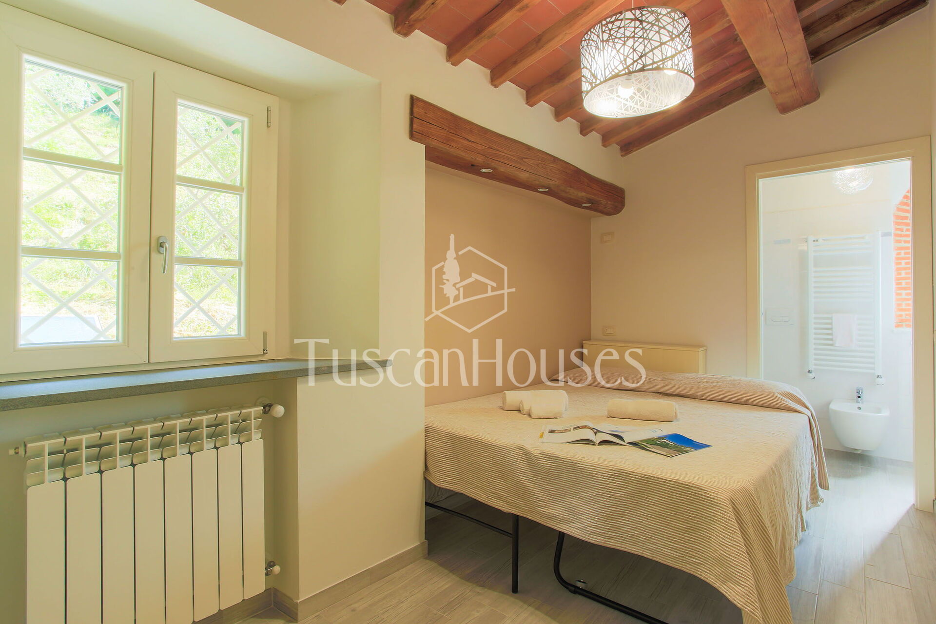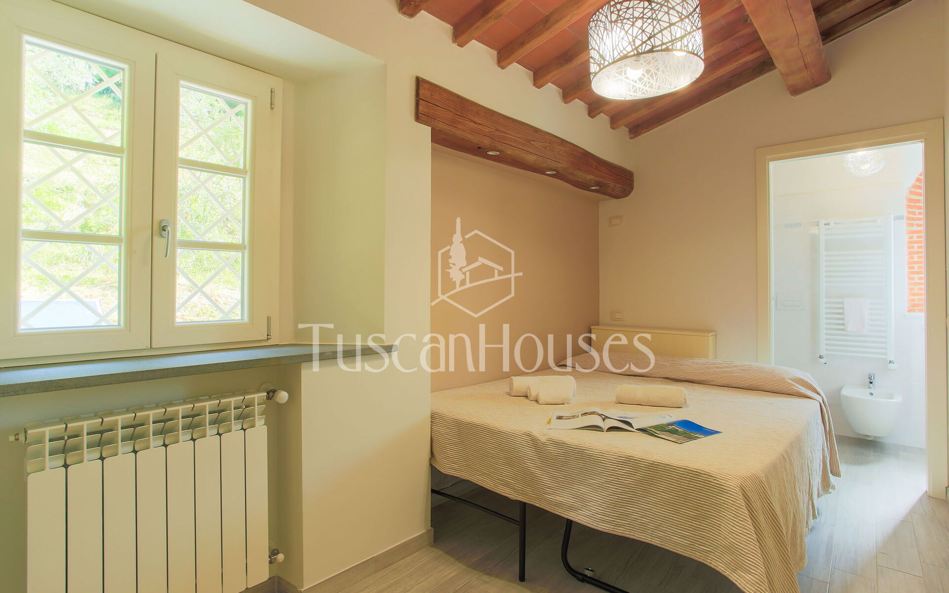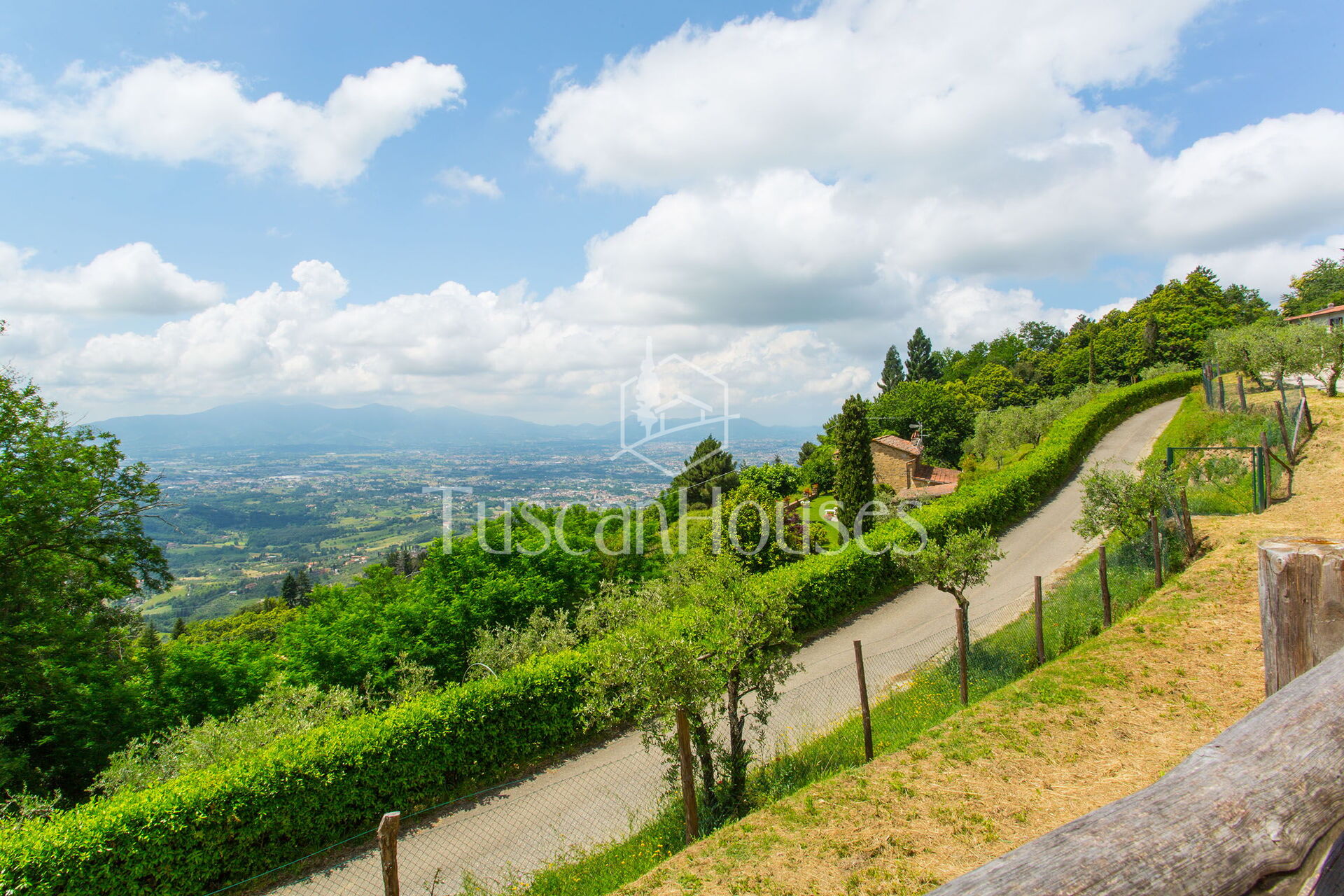 PANORAMA is splendid restored barn called Panorama was in the origin a little “metato” used by the local farmers as storage and then as stable. The house has been renovated and enlarged by the actual owners and has a breath-taking view on the Lucca area and the Valdinievole. The house is built in stone from the outdoors, and inside reflects the typical Tuscan house with the ceilings of small beams and tiles in “terra cotto” and the staircase in stone. Casa Panorama measures about 140 square metres and internally is set up on two floors. Panorama is set on one of the most famous hills of the Lucca area, both for the quality of the air as for the views. The swimming pool is set on a panoramic terrace from which you can enjoy an unforgettable view. Please note that Panorama distances only 500 metres from Altavista and can be an ideal solution for two families.