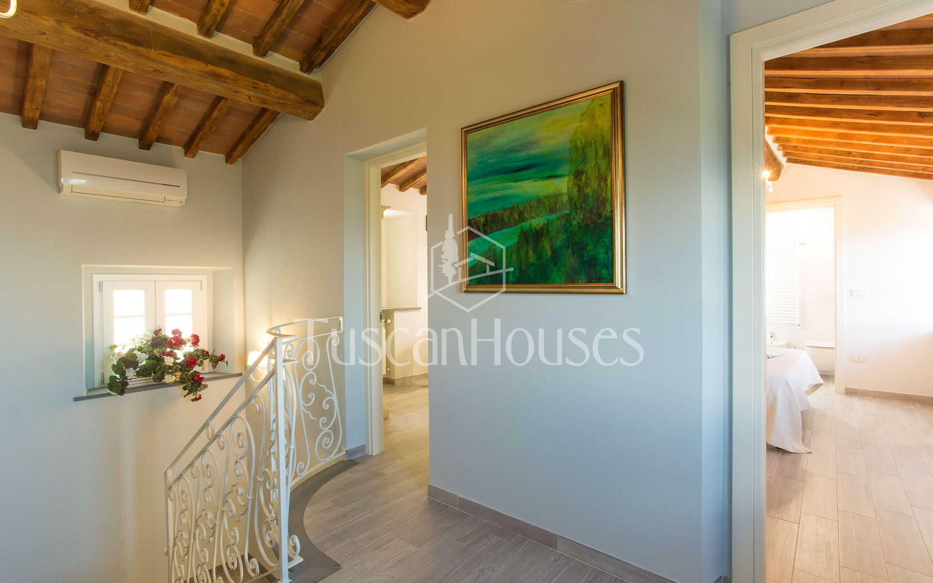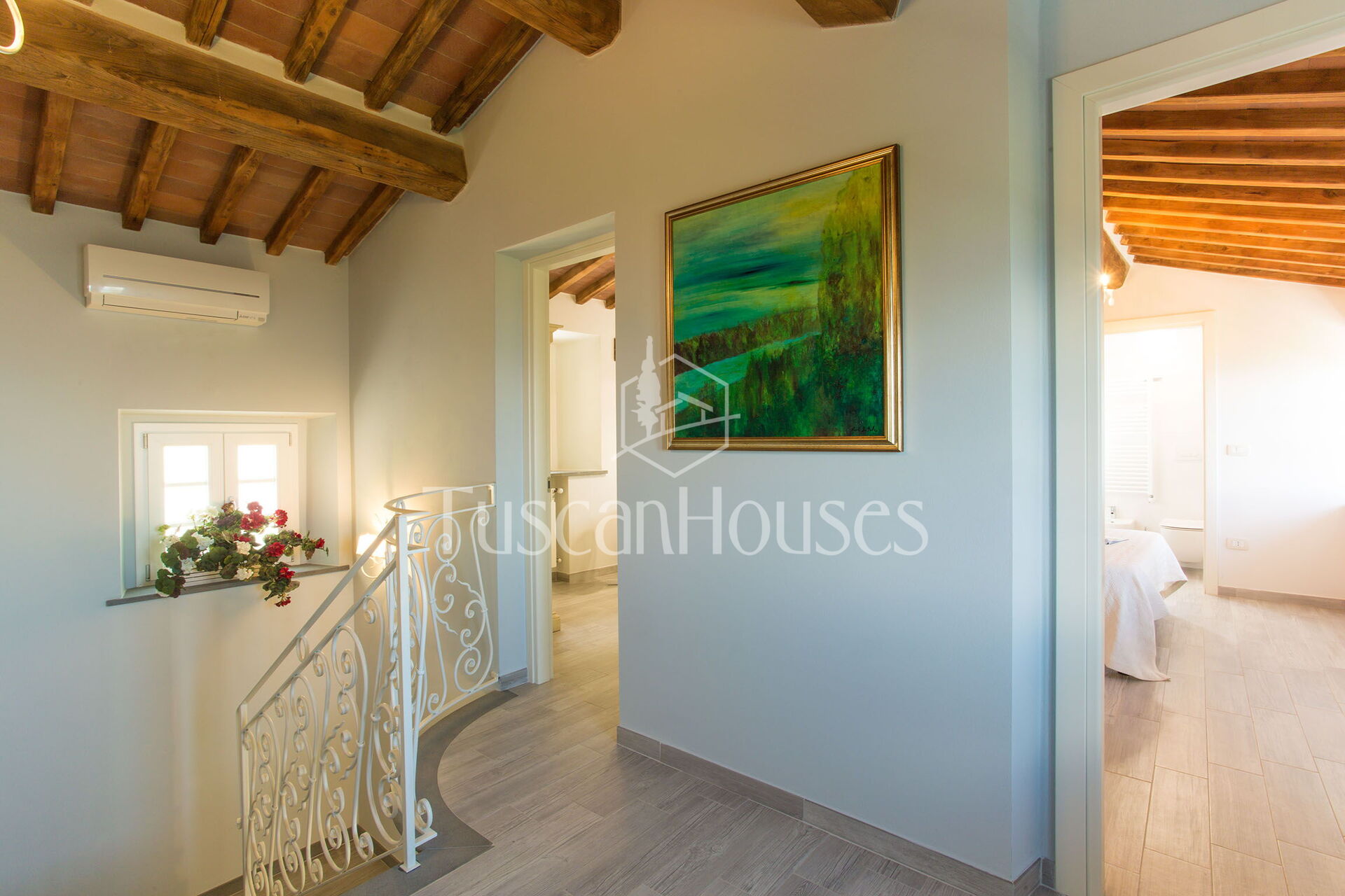 Air Conditioning: Present in the hall upstairs