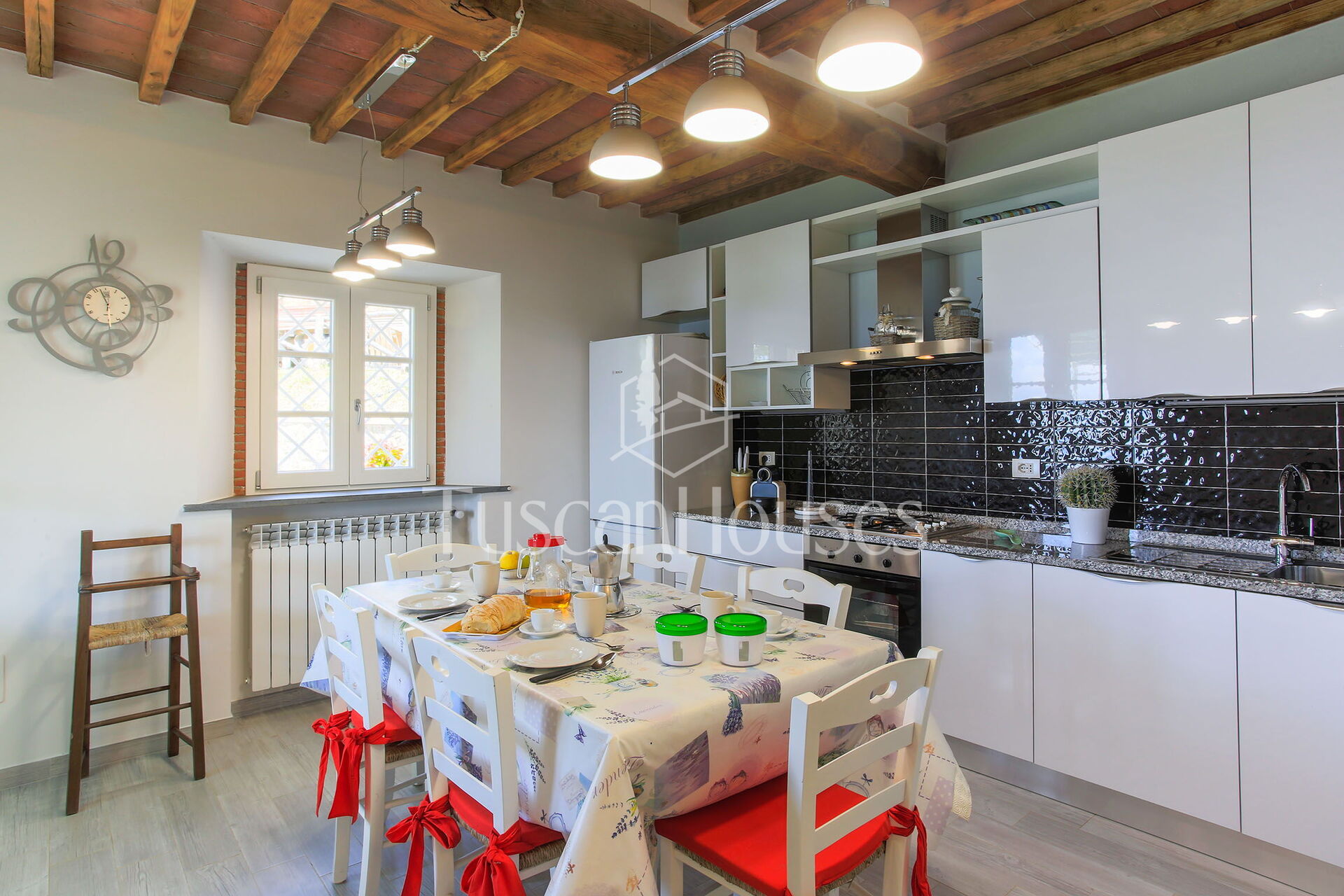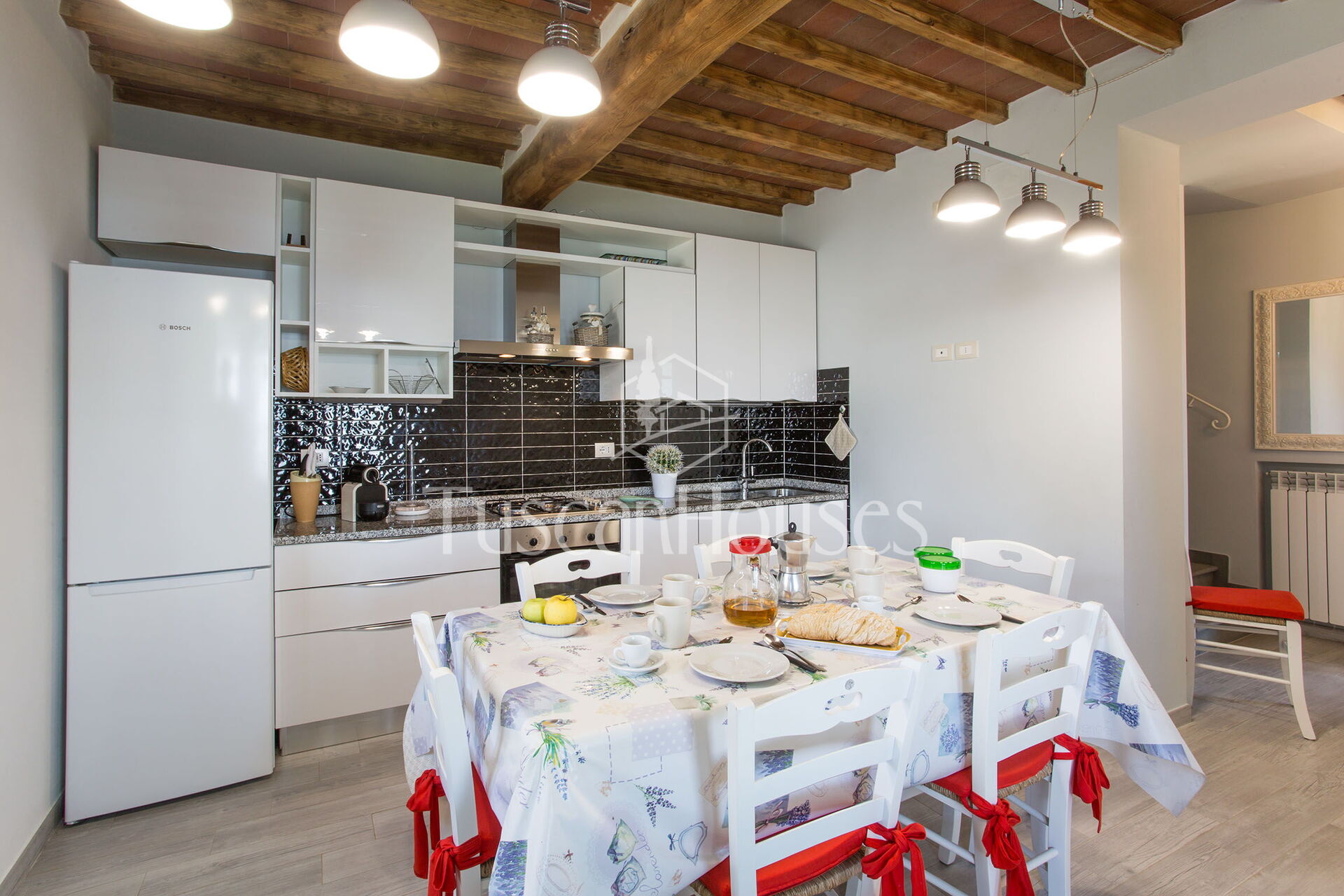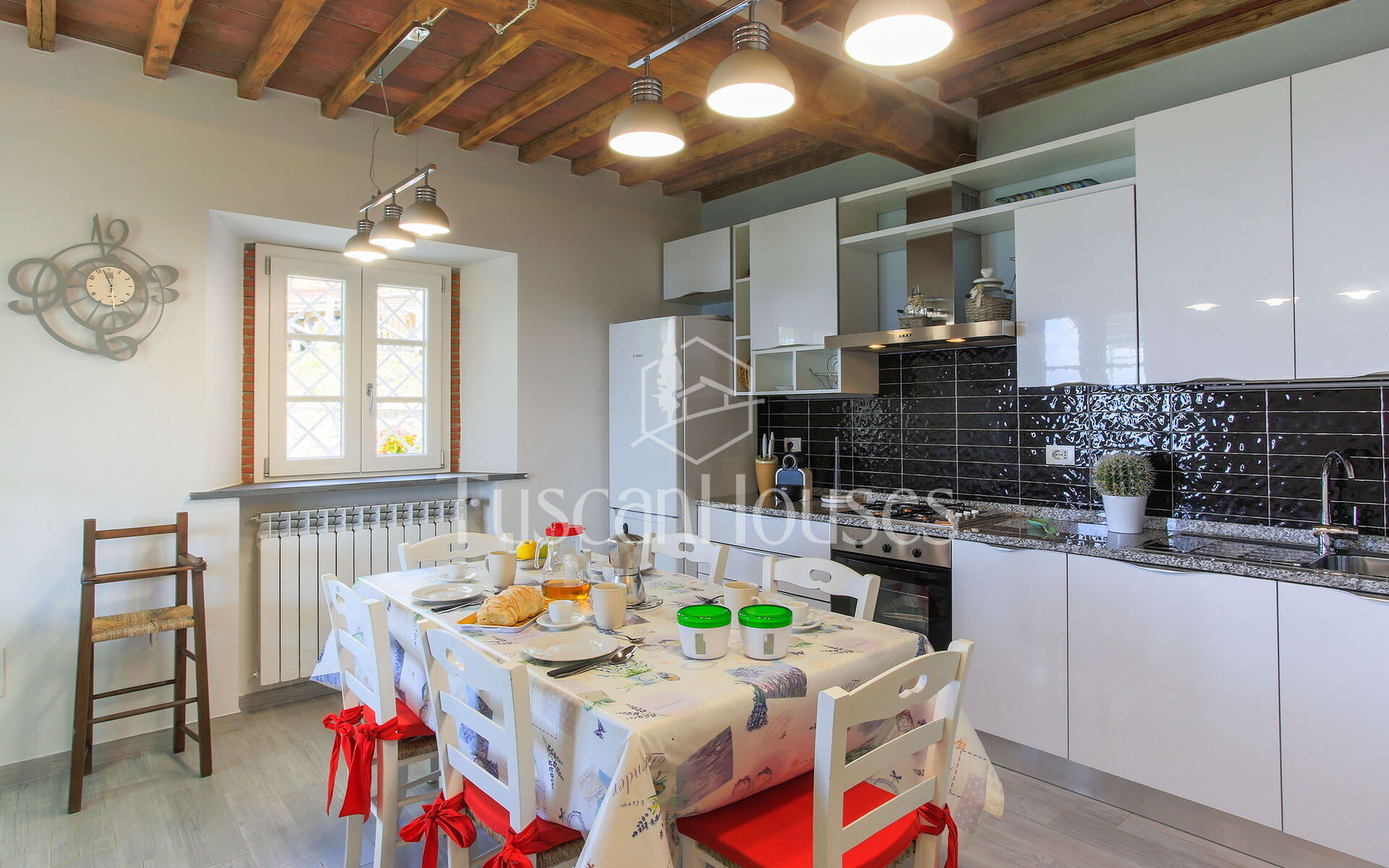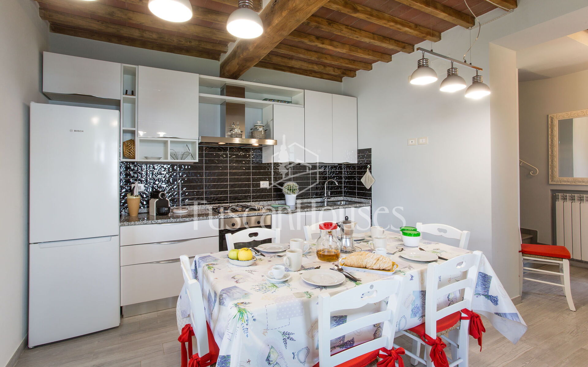 Well Equipped Kitchen, Oven, Freezer, Fridge, Internet, WiFi Internet, Dishwasher, Italian Coffee Machine, American Coffee Machine, Microwave, Stove Top, Highchair, Dining Table, Toaster, Exit to the garden, Exit to the veranda