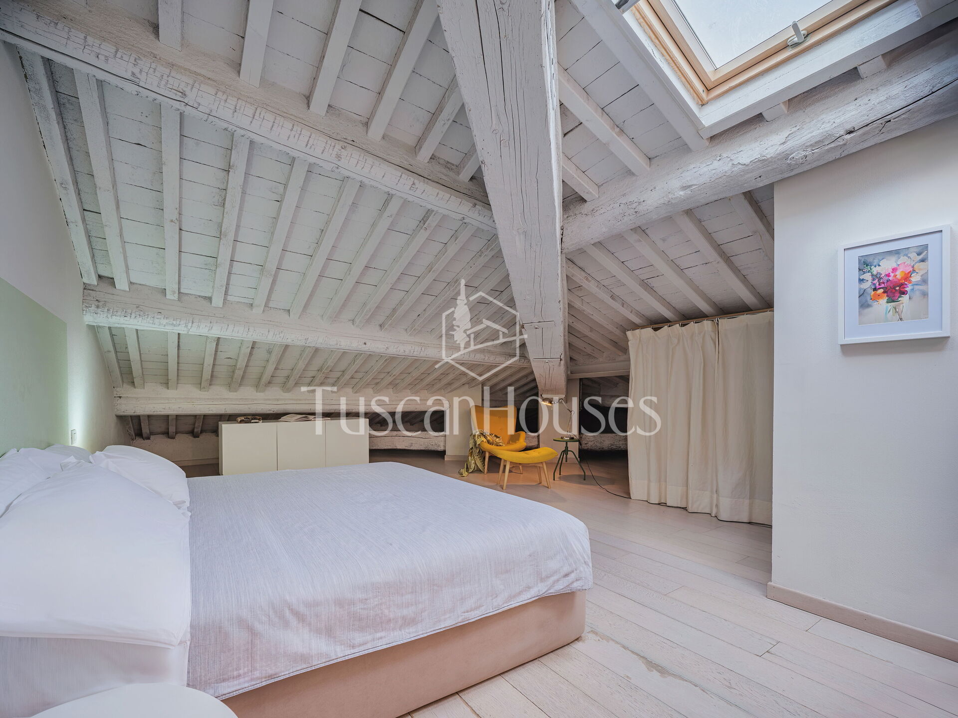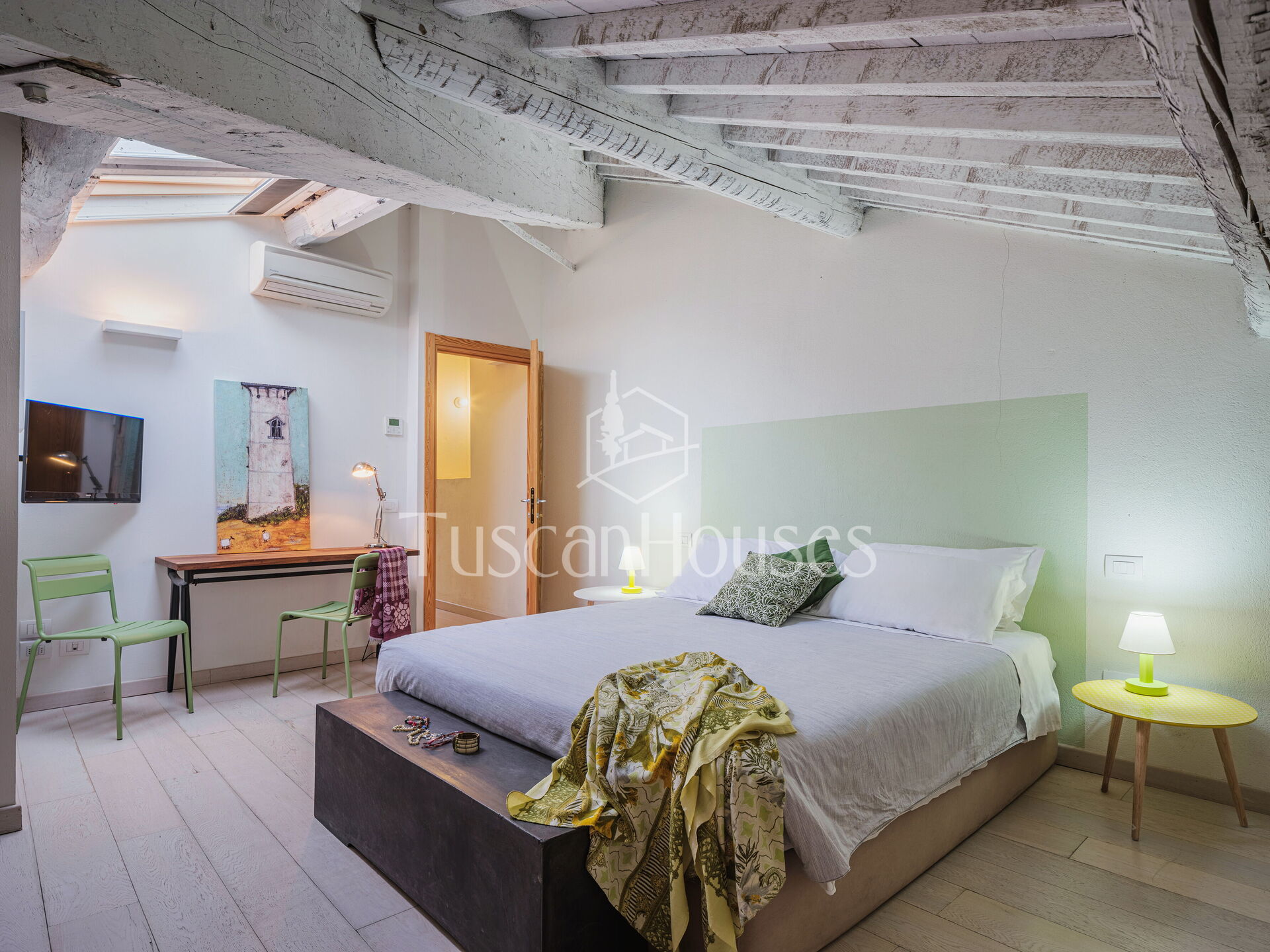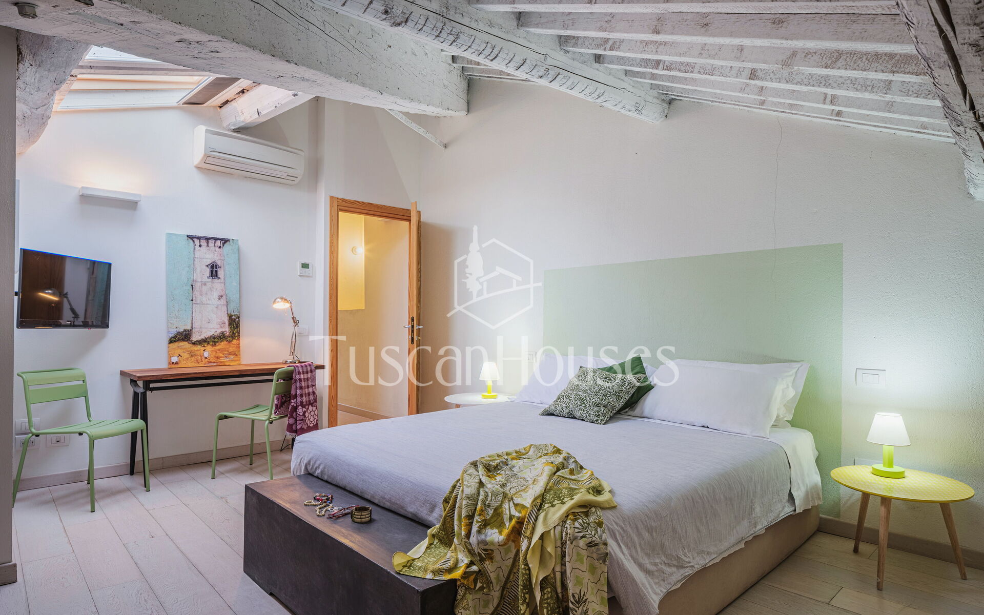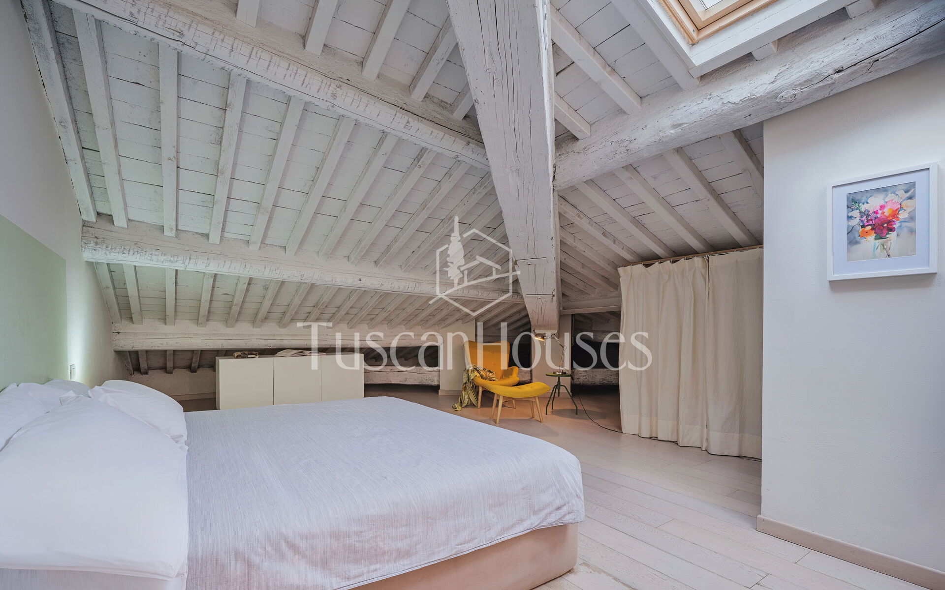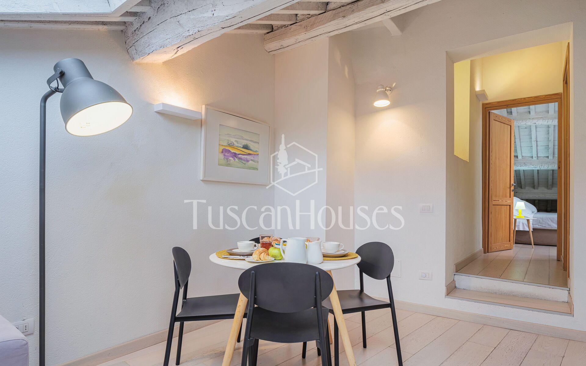 Ambra is a cozy attic apartment located on the third and top floor of the Residenza degli Artisti, a building recently renovated and furnished with taste under the supervision of a renowned Italian designer. Guests will immediately appreciate the bright and refined atmosphere, enhanced by the charming white wooden beam ceilings.