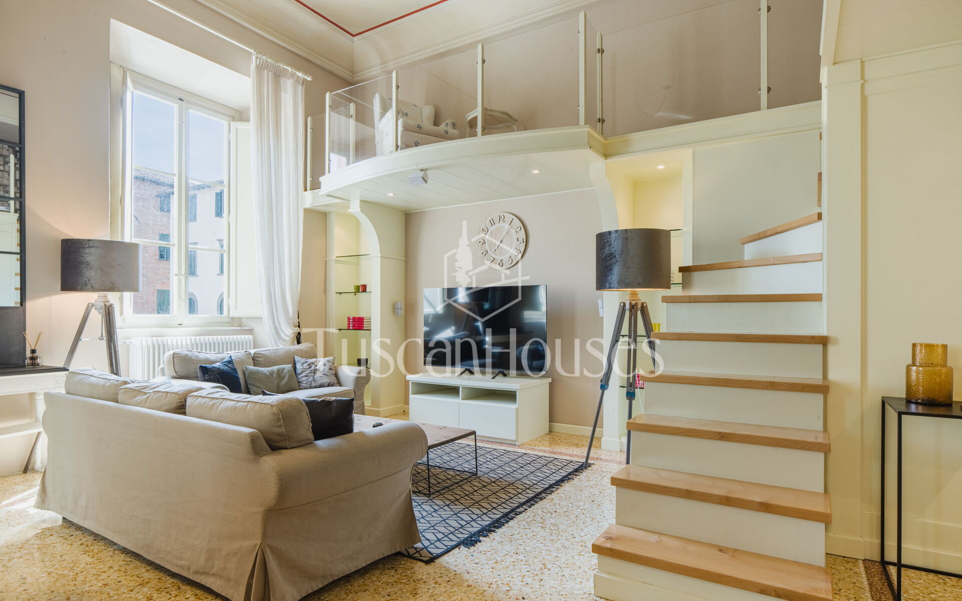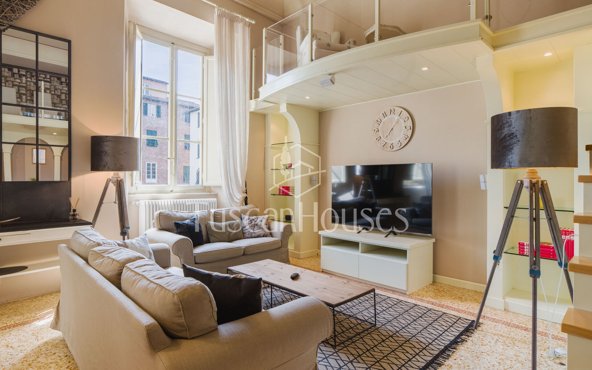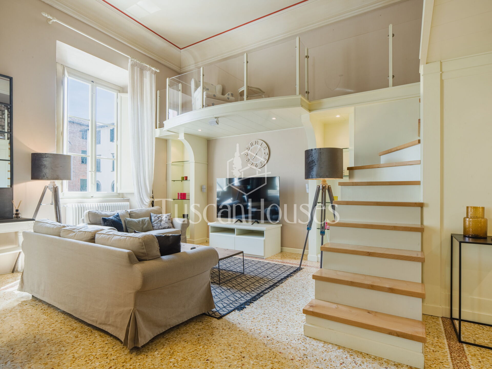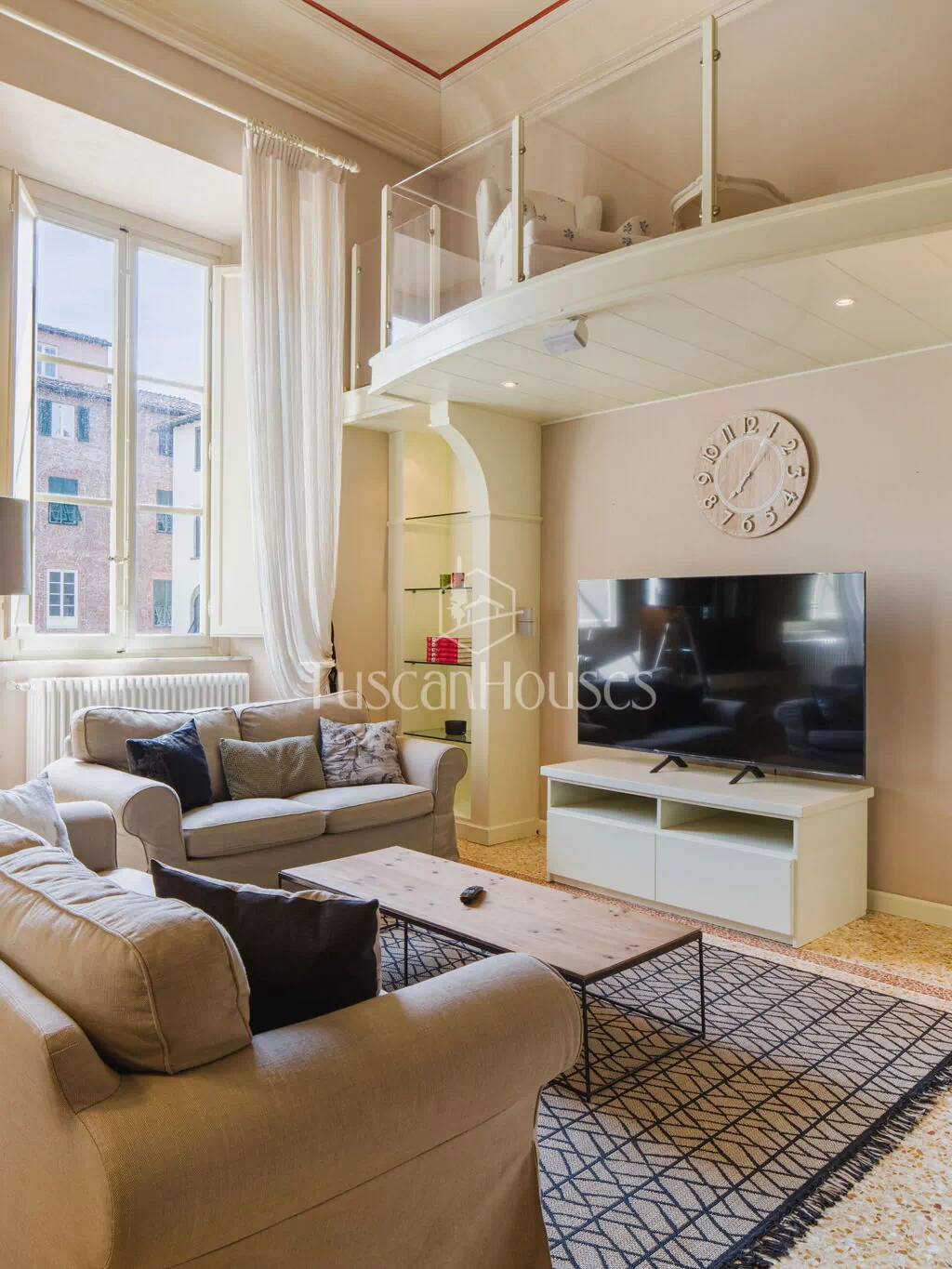Elegant apartment in the historic heart of Lucca with Tessieri marble floors, 3 bedrooms, modern comforts, lift and views over Piazza del Carmine.