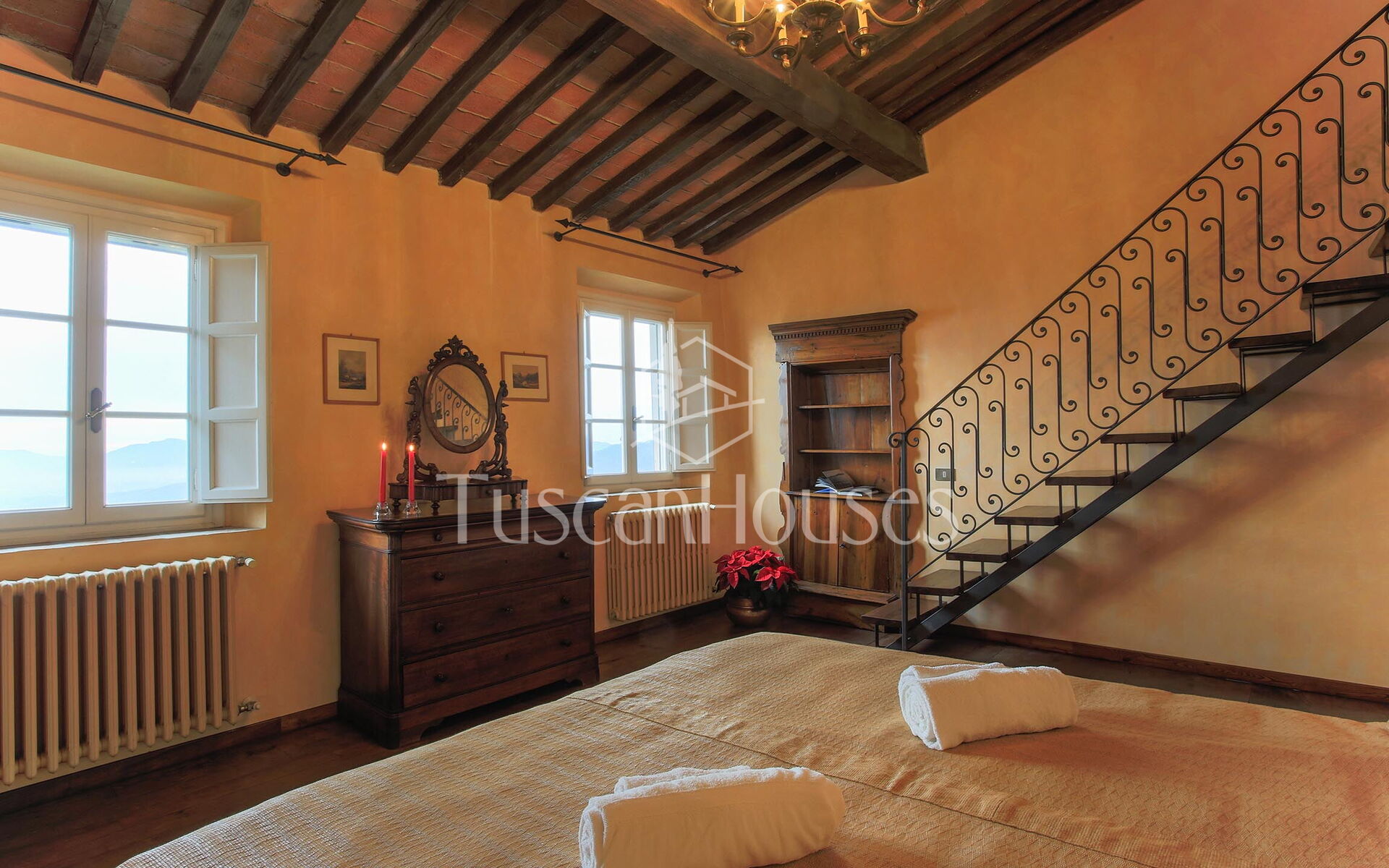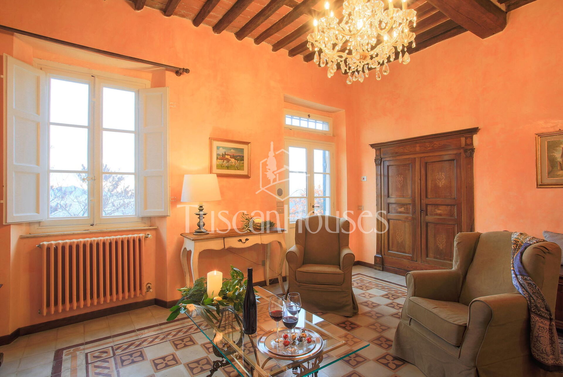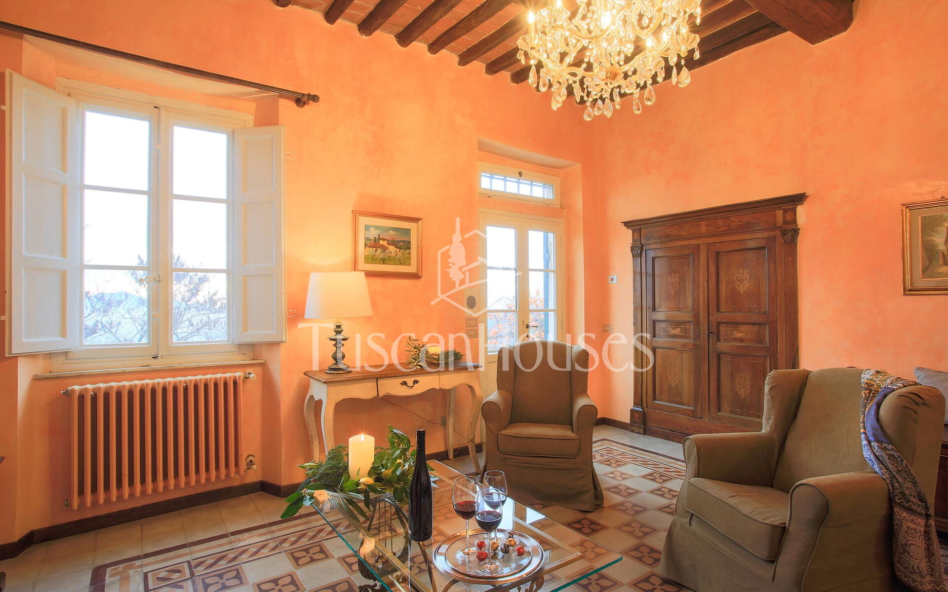 Historic 17th-century villa overlooking Lucca, surrounded by vineyards and olive groves. An authentic Tuscan retreat with a guest annex and private convent visits.