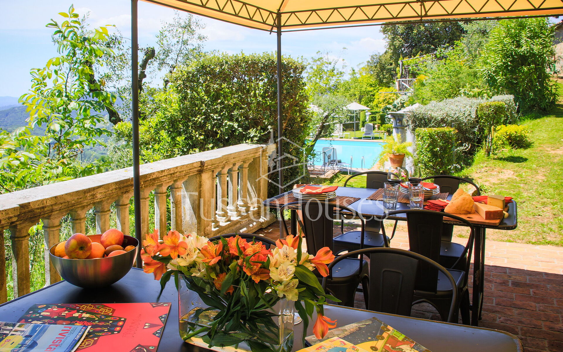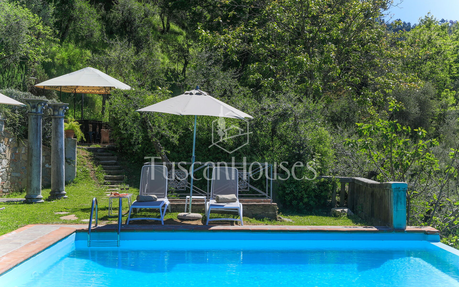 Una villa con il fascino del tempo che fu modernamente ristrutturata, un giardino incantevole e molto curato contornato da una ricca vegetazione e piante da frutto di ogni tipo e una grandiosa piscina con vista spettacolare ci hanno accompagnato per sette giorni coccolandoci a dovere. Grazie Tuscanhouses