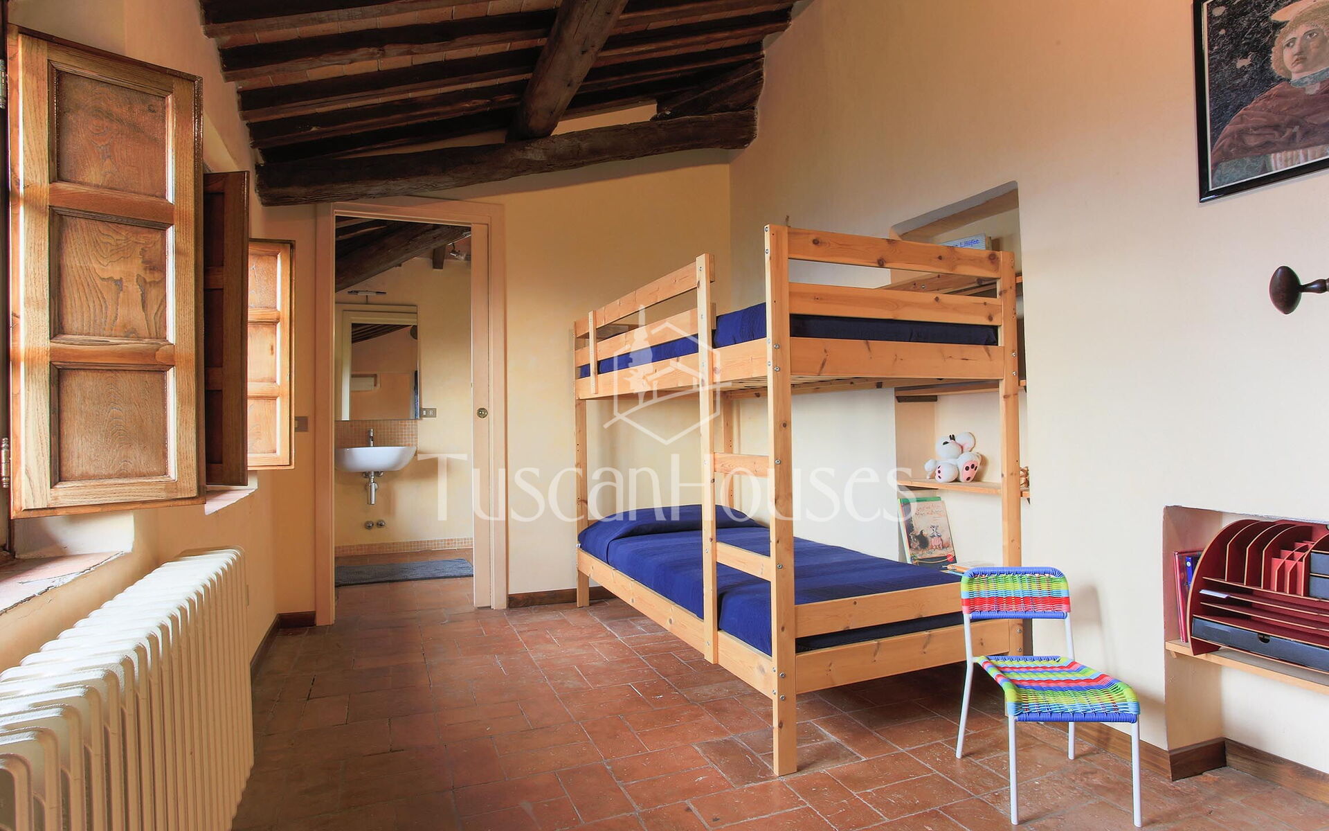 Double bedroom conditioned, with an ensuite bathroom with a shower and a small study equipped with a bunk bed (The bunk bed can be made available upon request)