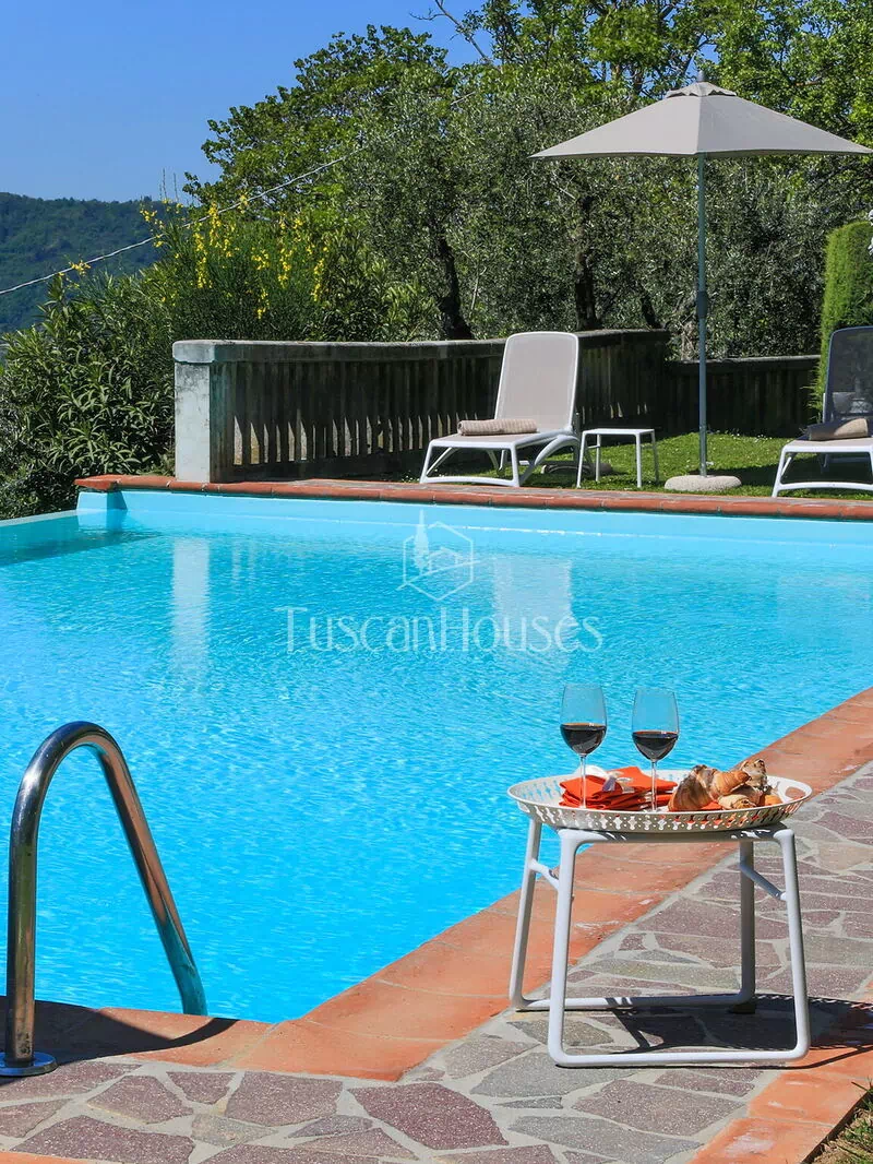 The fenced pool, located in a panoramic position about 30 meters from the villa, measures 6 x 12 meters and has a variable depth ranging from 1.50 m to 3.00 m. Just a few steps from the pool, a an iron gazebo provides a shaded area with a table and chairs. Guests also have access to sun loungers, umbrellas, and an outdoor shower. A ping pong table and a foosball are present for the kids and grown up entertainment!