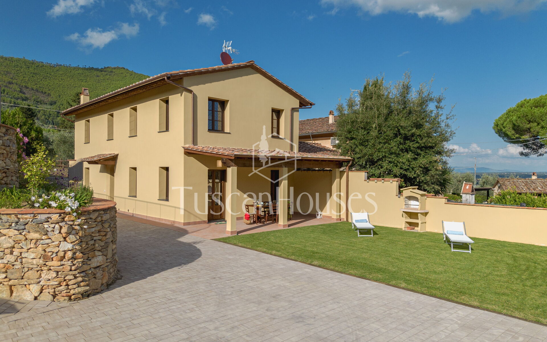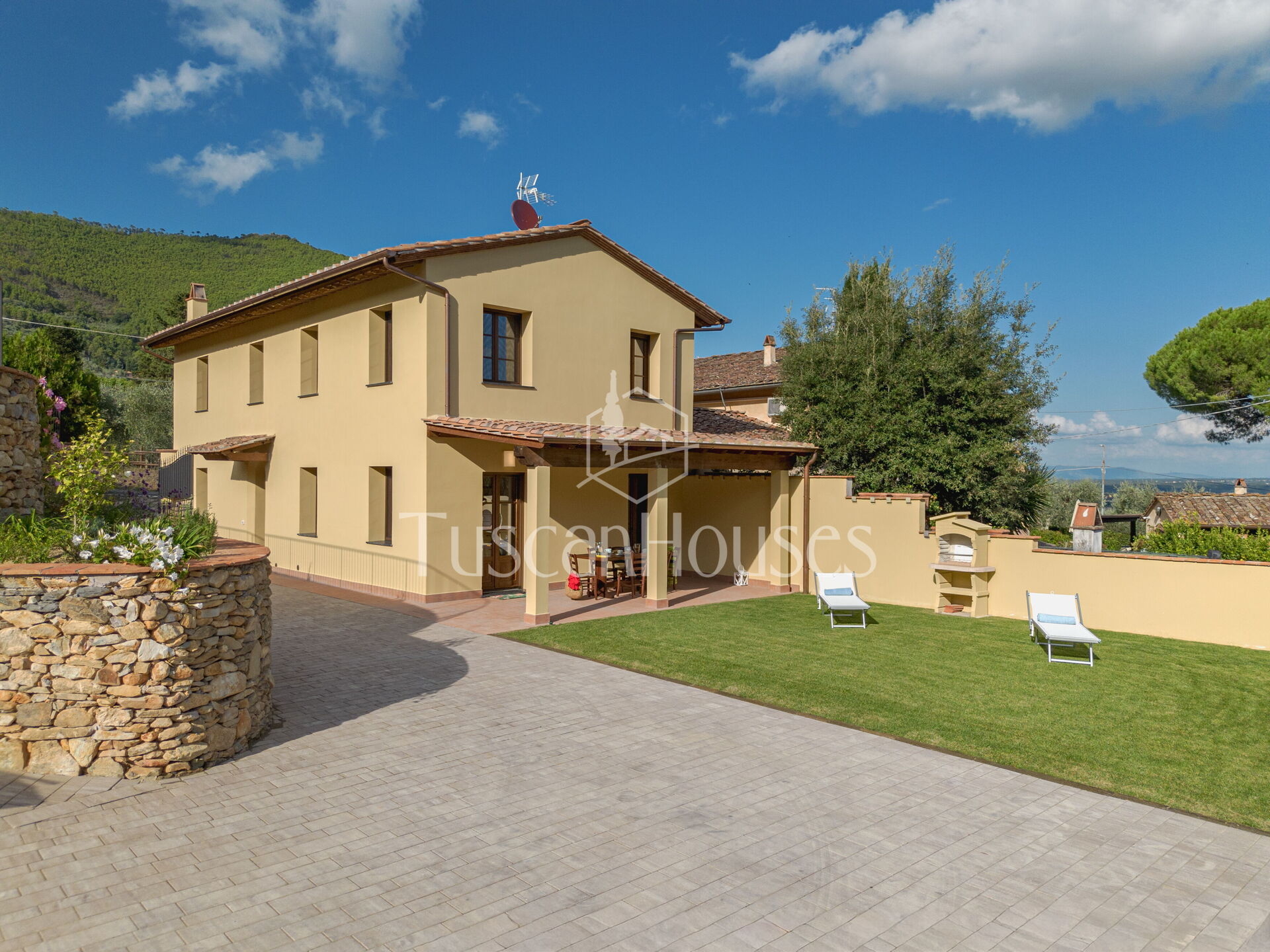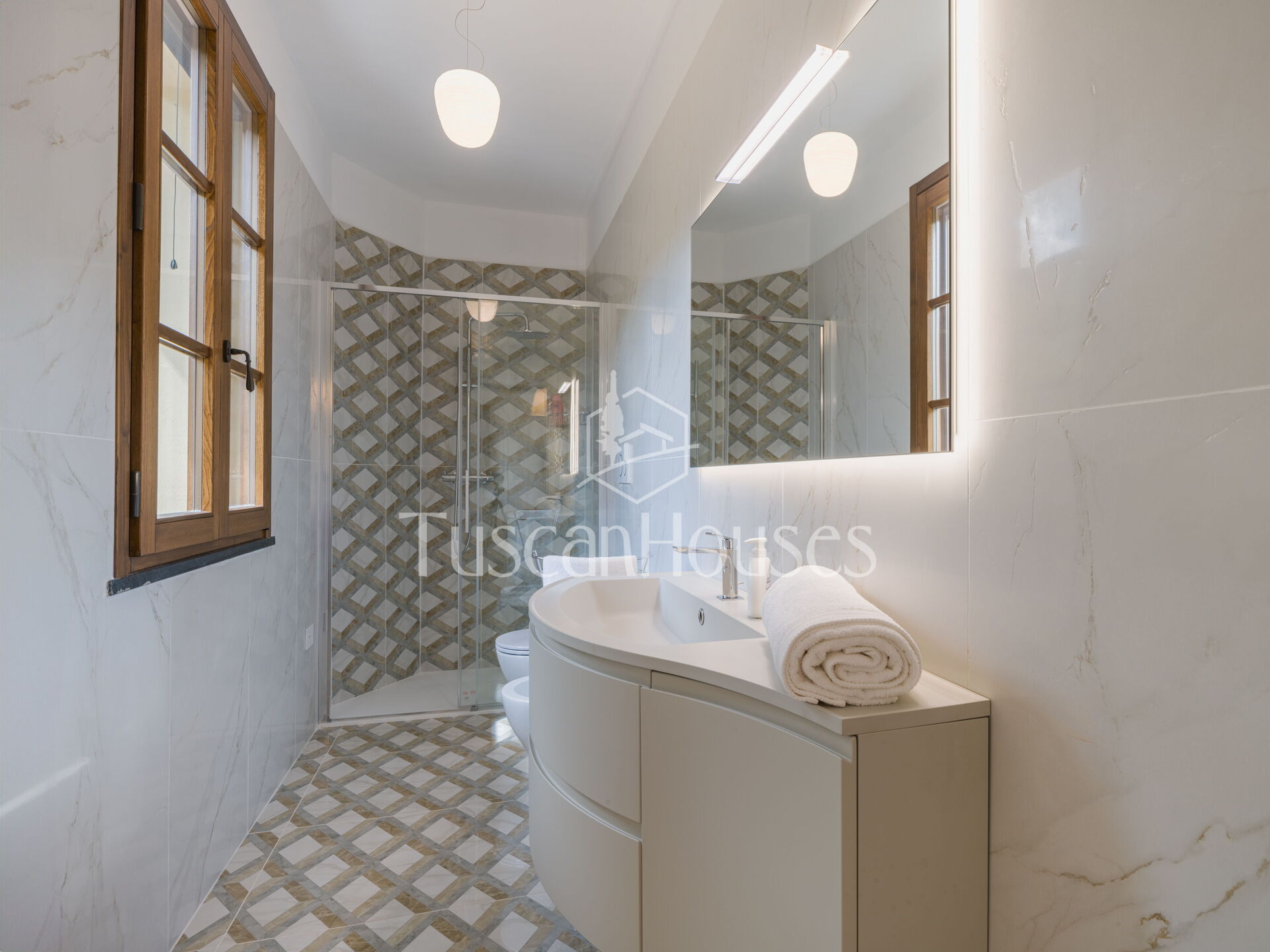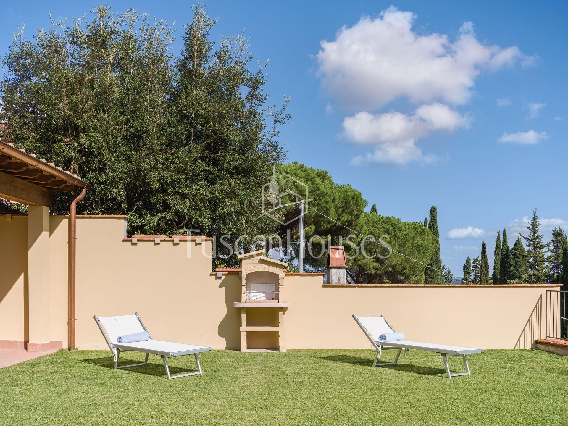 Casa DEI GIGLI di Dante is a property completely renovated in 2025, set among the picturesque hills of Vicopisano, in the province of Pisa, and surrounded by hundreds of olive trees. Located just a short distance from the historic village of Vicopisano — renowned for its tower designed by Brunelleschi and its medieval walls — it offers a peaceful retreat with a beautiful garden, meticulously maintained and arranged over typical Tuscan terraced levels that clearly define the various outdoor areas.