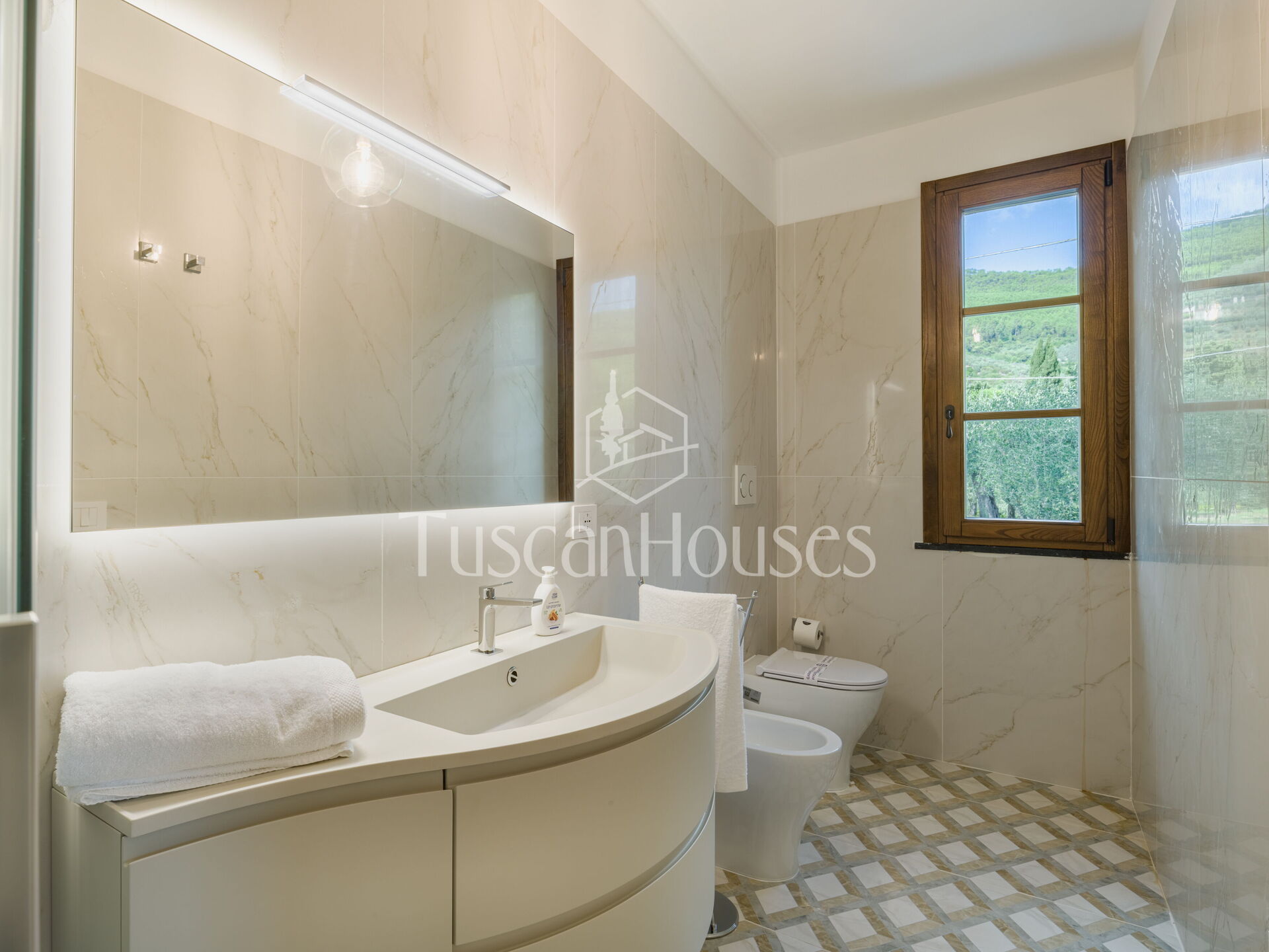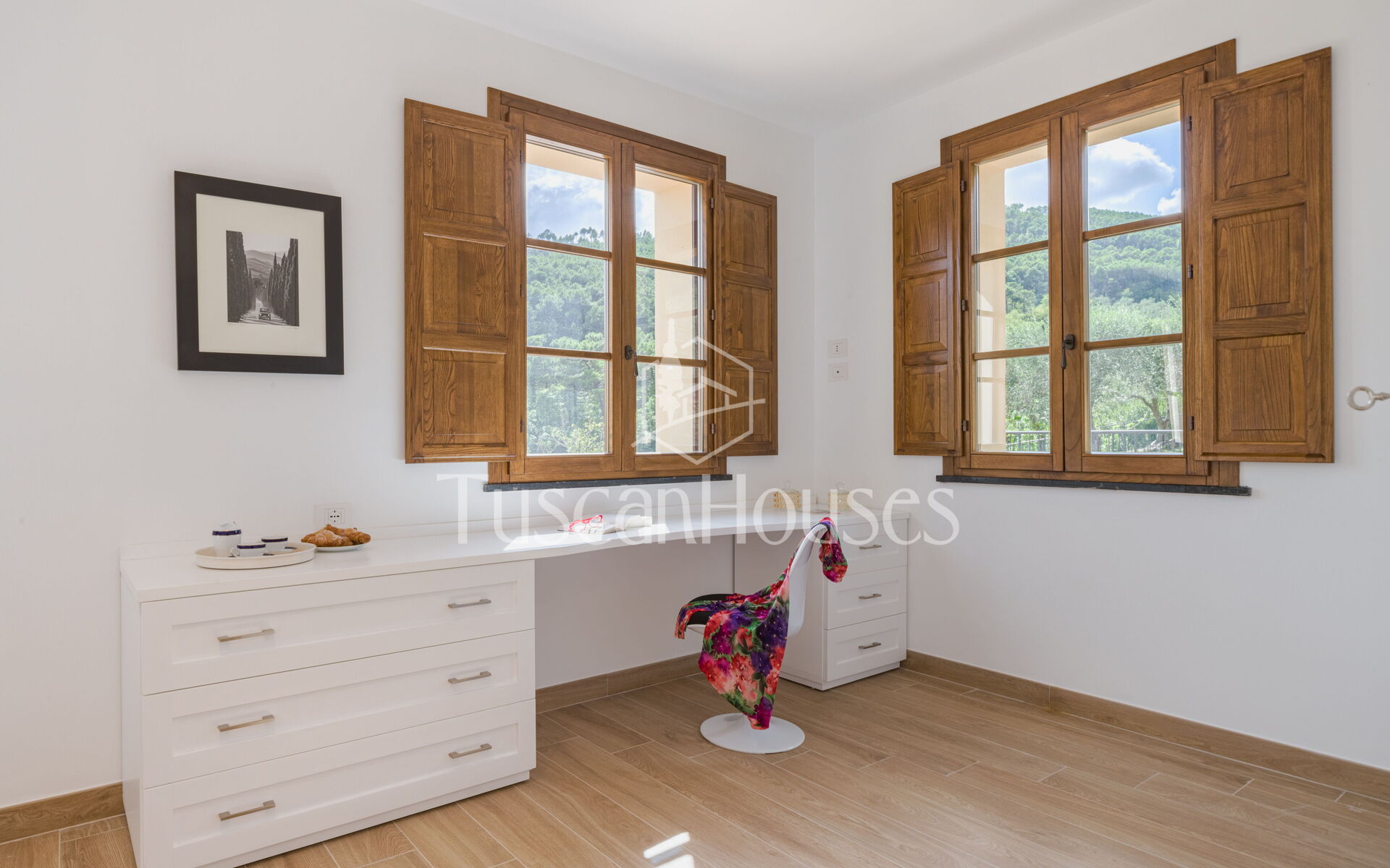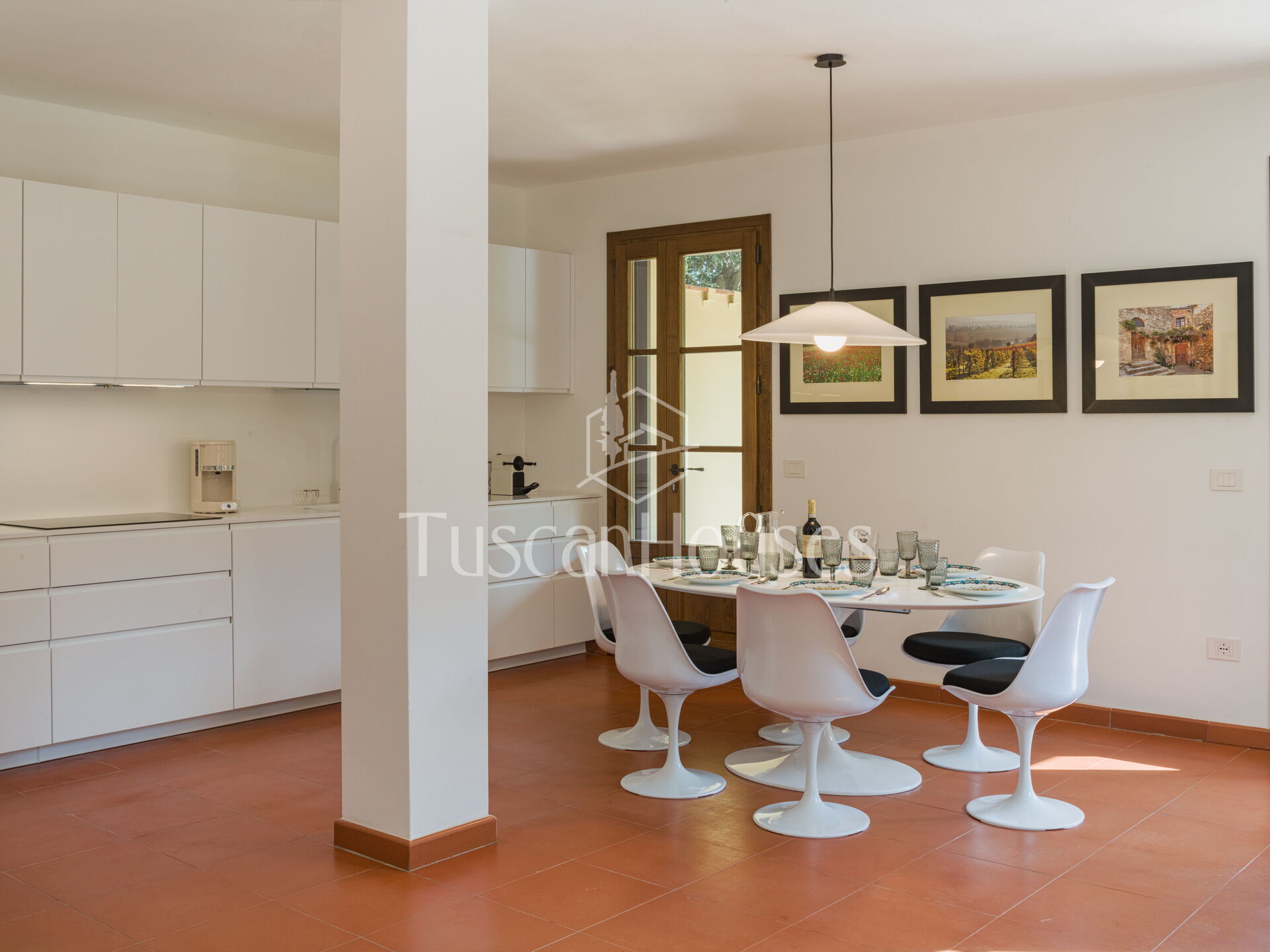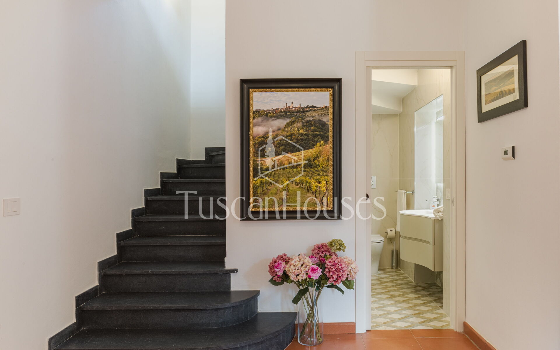 Casa DEI GIGLI di Dante is a property completely renovated in 2025, set among the picturesque hills of Vicopisano, in the province of Pisa, and surrounded by hundreds of olive trees. Located just a short distance from the historic village of Vicopisano — renowned for its tower designed by Brunelleschi and its medieval walls — it offers a peaceful retreat with a beautiful garden, meticulously maintained and arranged over typical Tuscan terraced levels that clearly define the various outdoor areas.