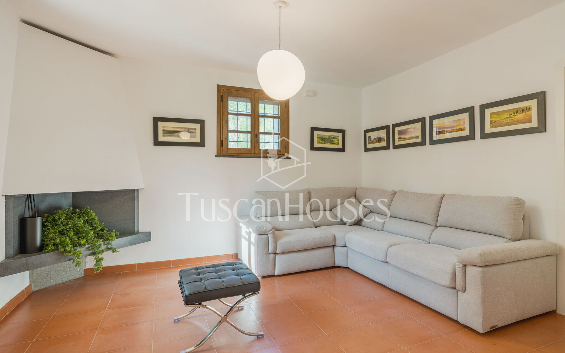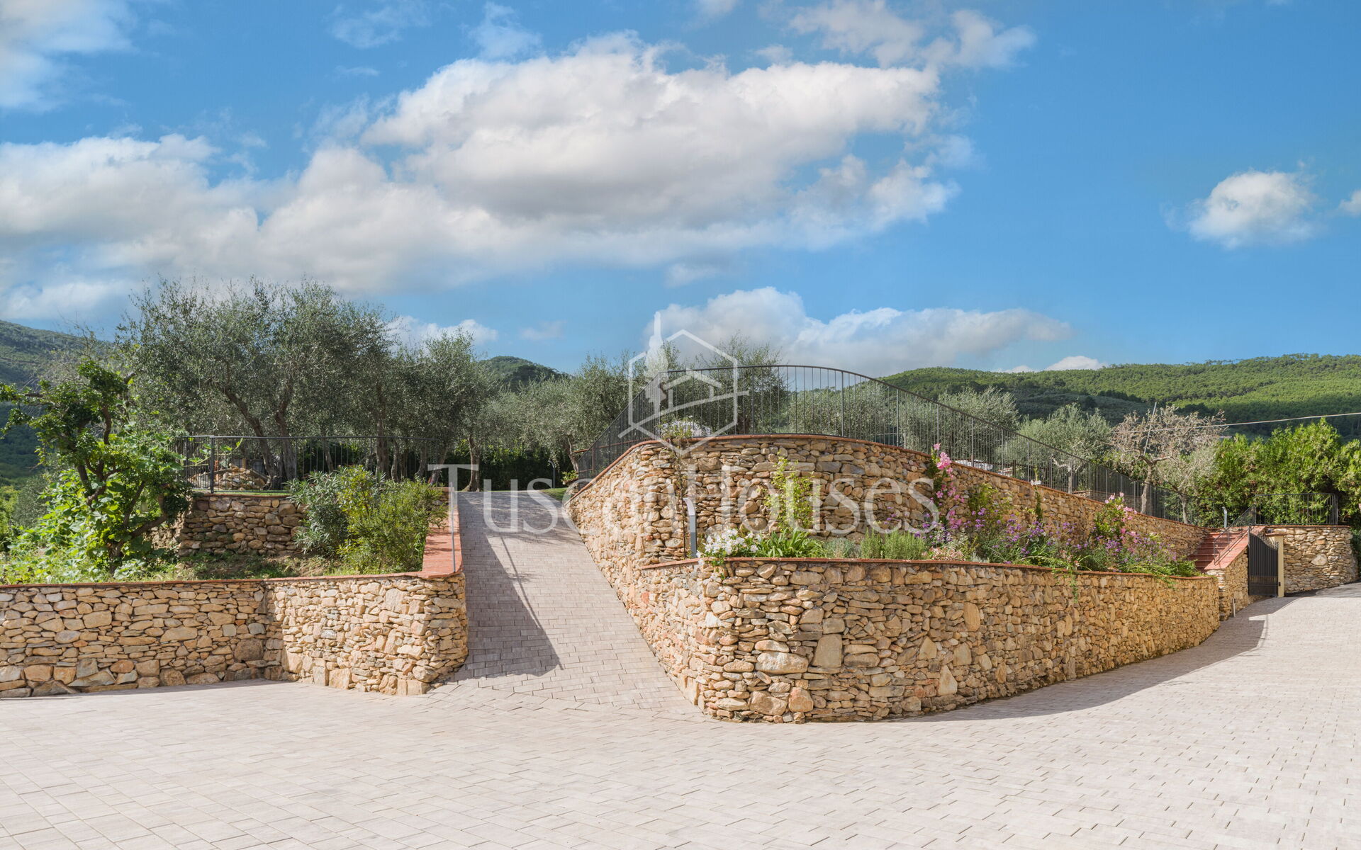 The house is embraced by a spacious terraced garden spanning one hectare, offering panoramic views of the surrounding hills. Adjacent to the living room, you will find a covered terrace, complete with a table and chairs, perfect for enjoying delightful al fresco dinners.